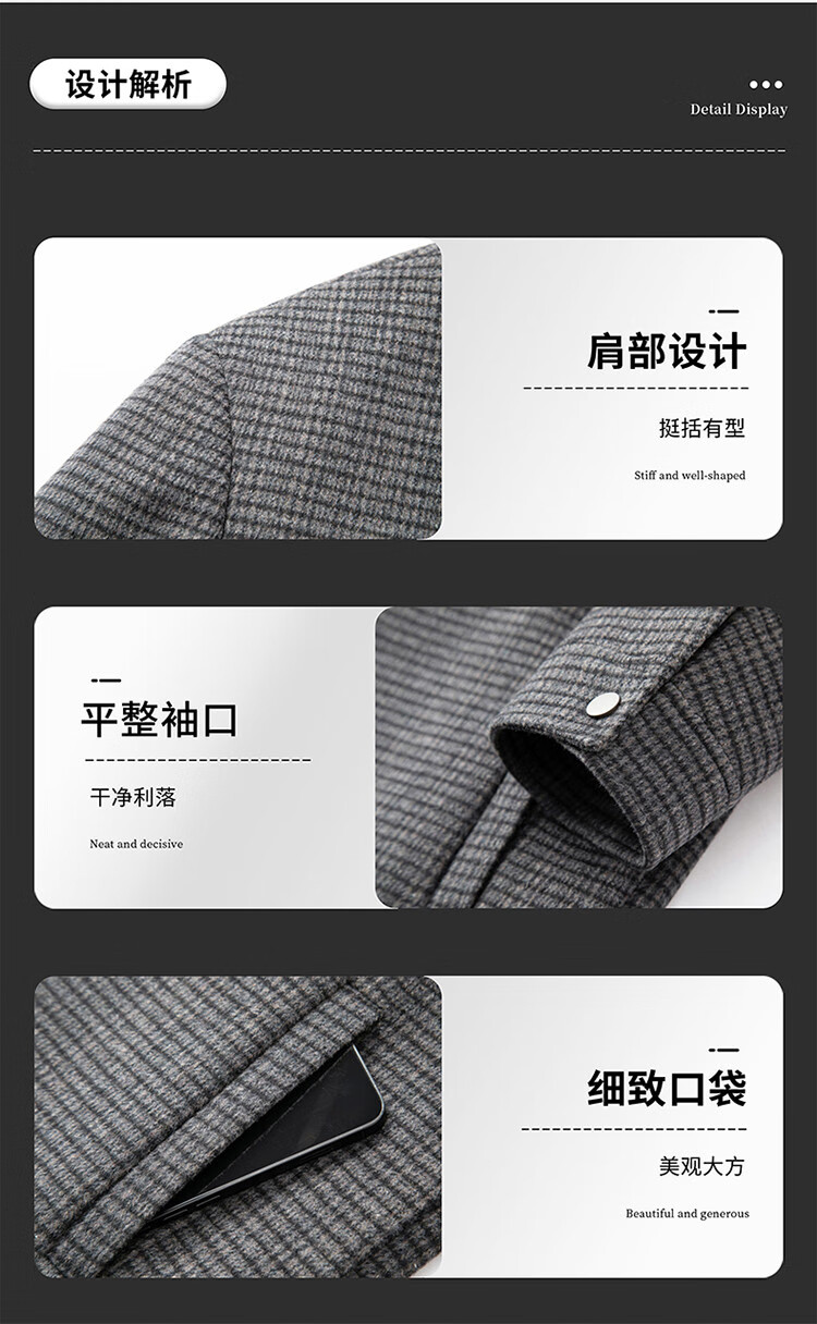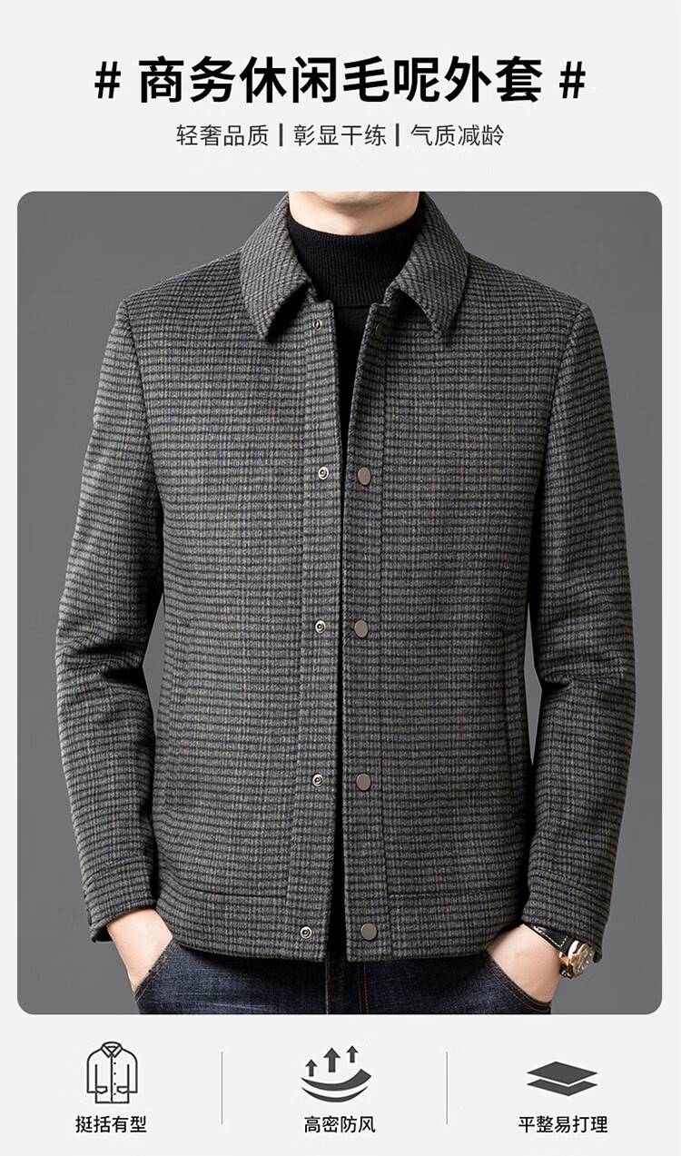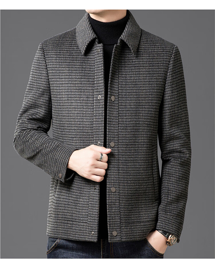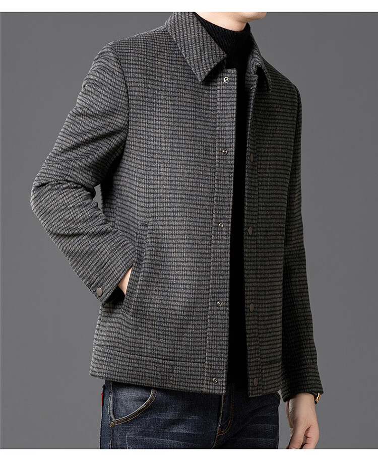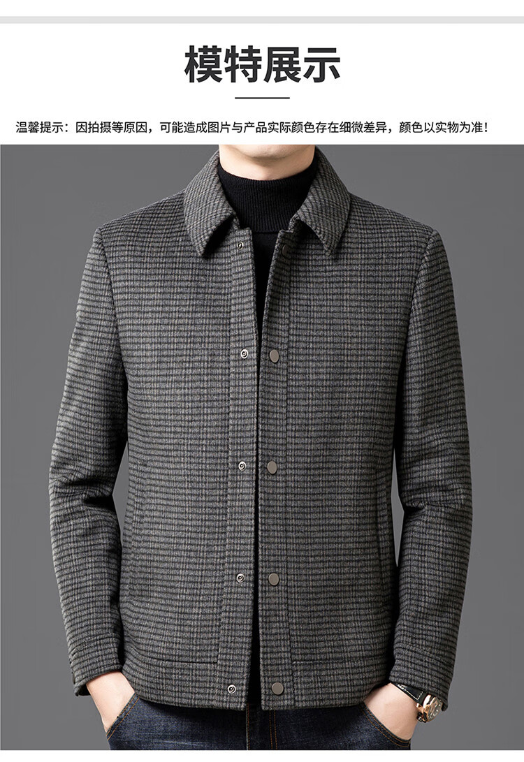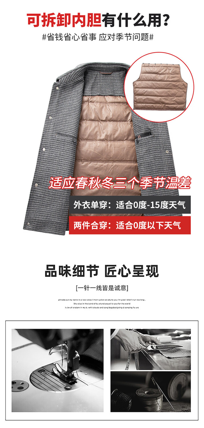 Hengyuanxiang new winter woolen woolen coat men's removable down liner lapel plaid thickened warm coat