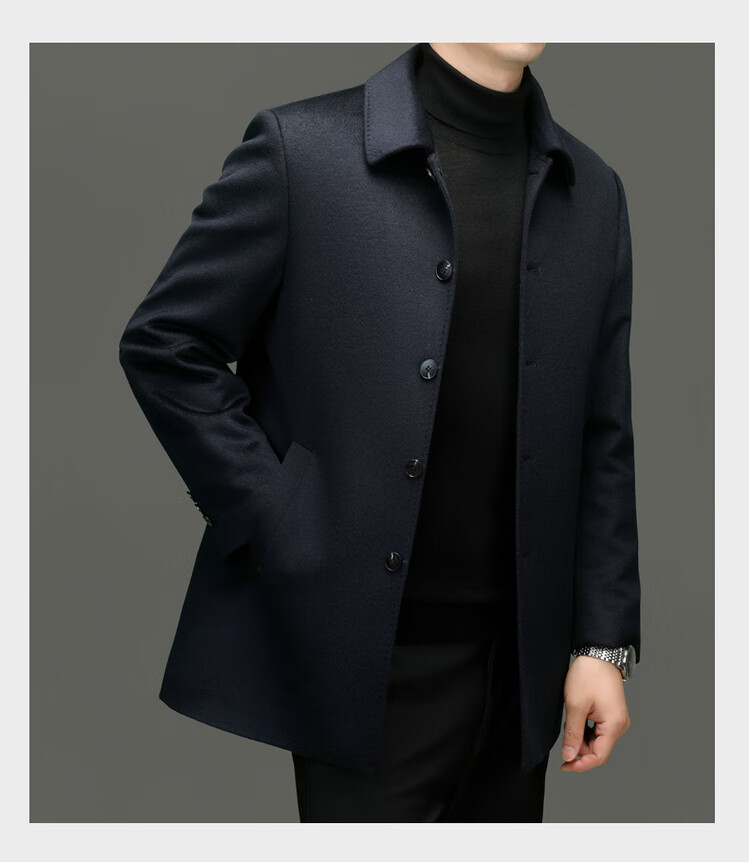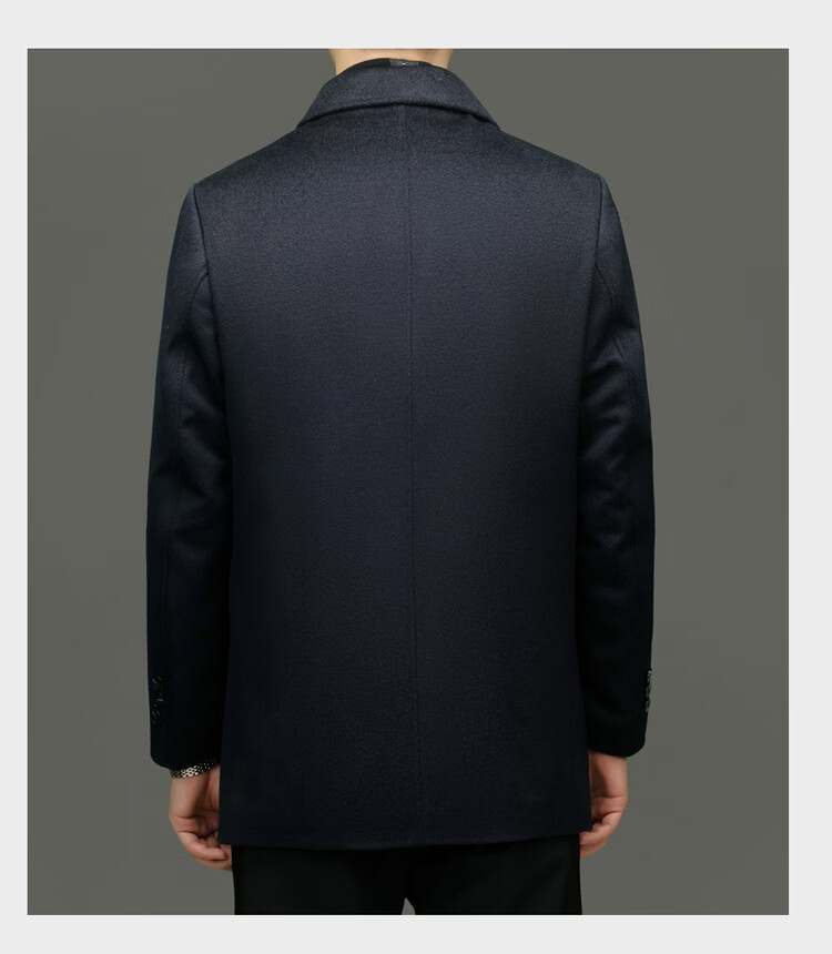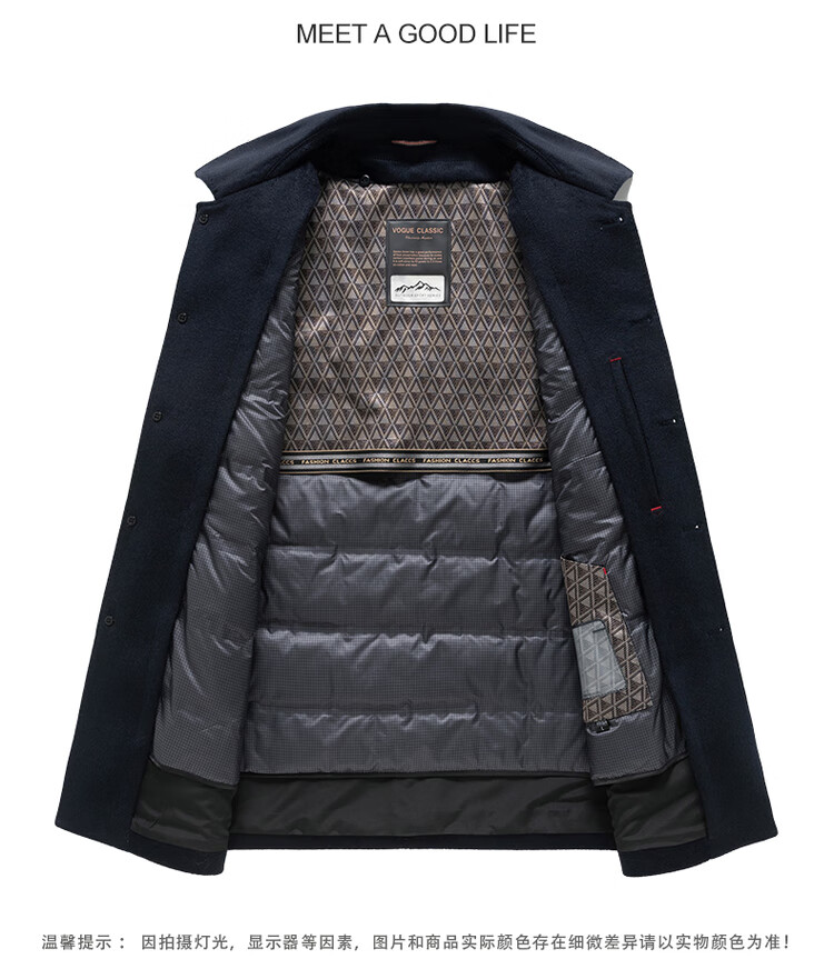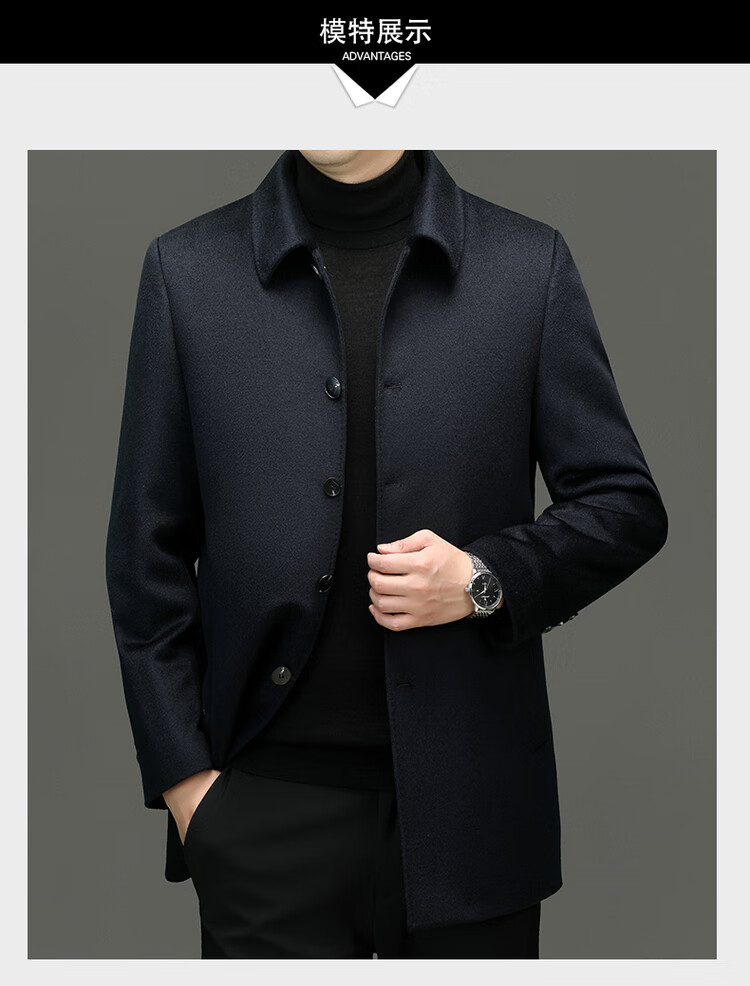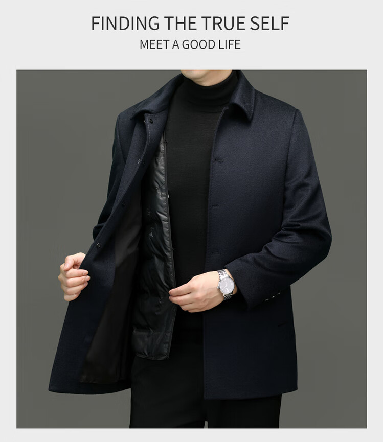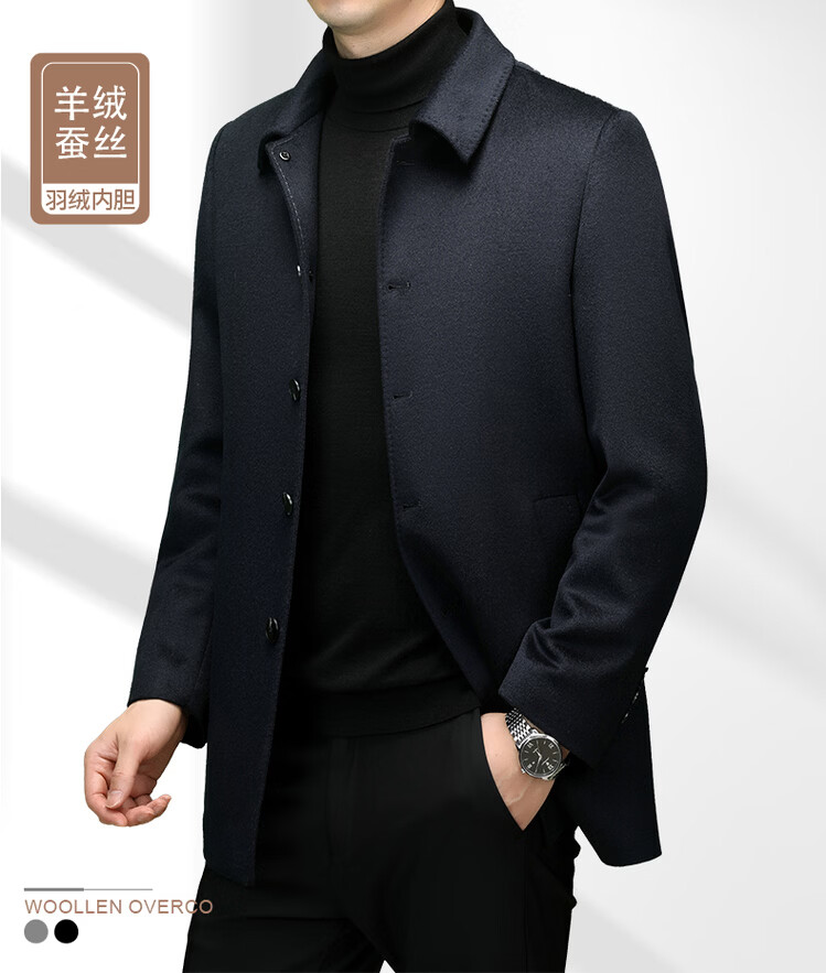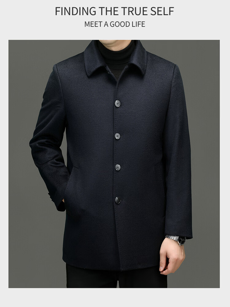 Hengyuanxiang cashmere wool woolen coat men's medium-length mulberry silk down lining commuter woolen coat