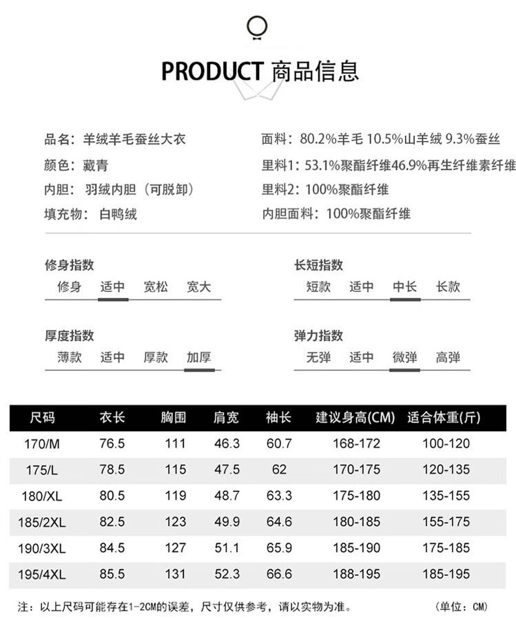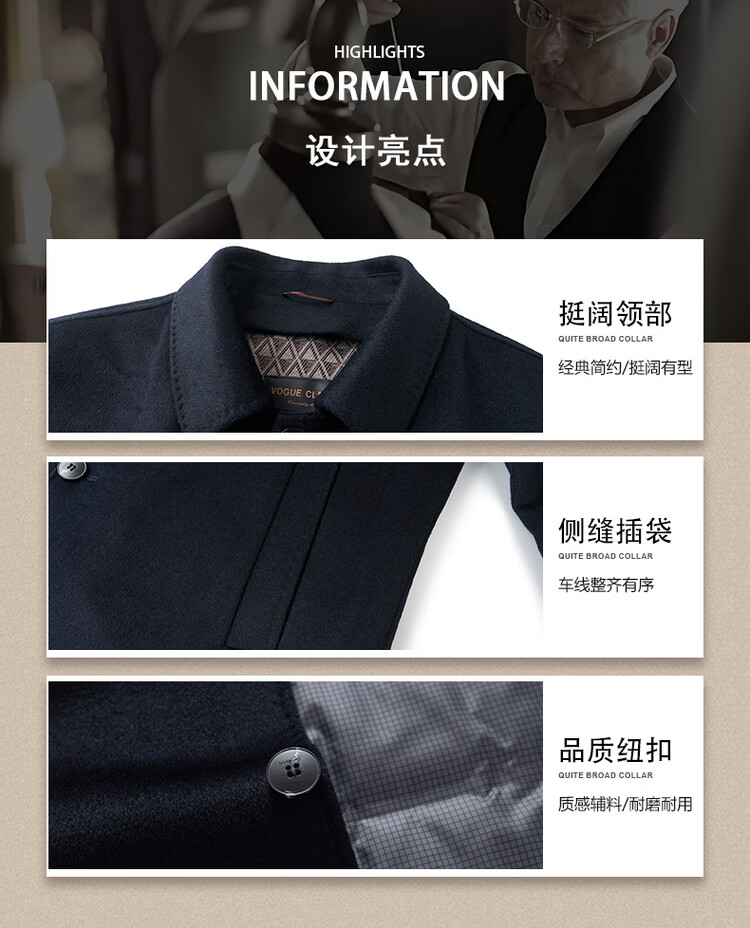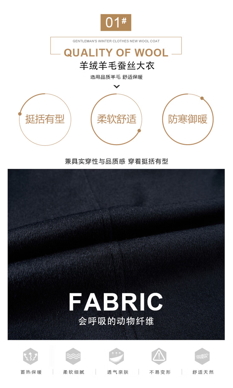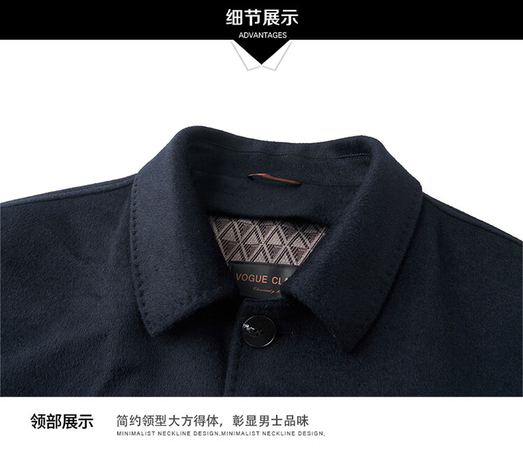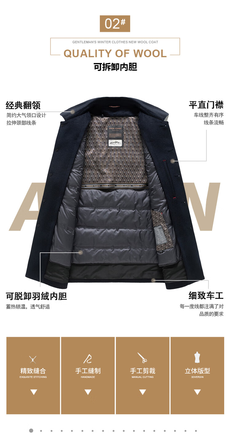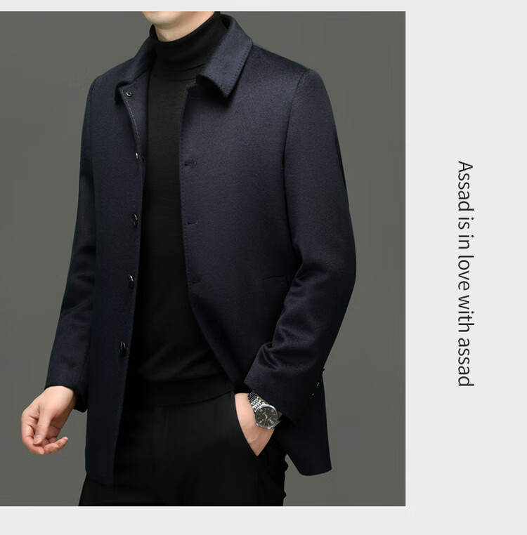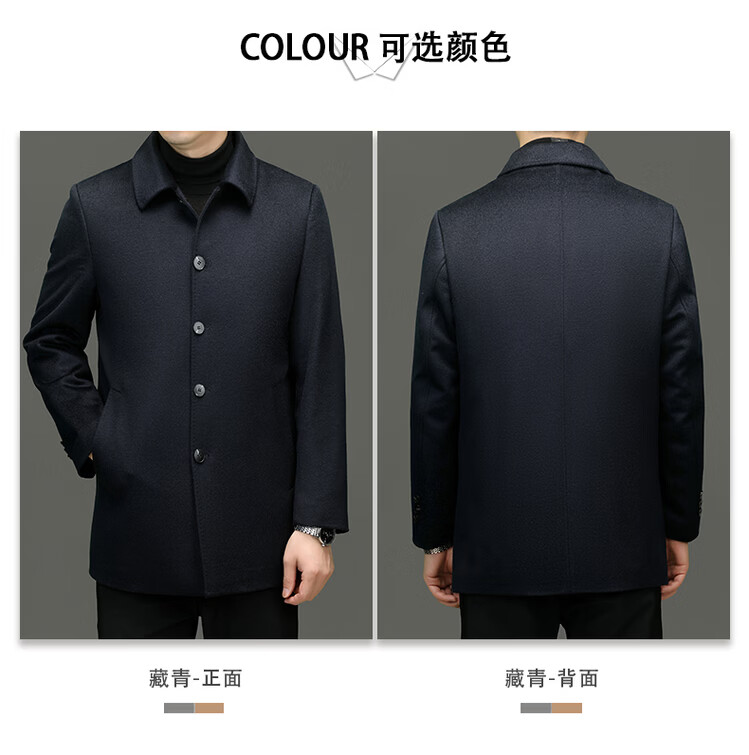 Hengyuanxiang cashmere wool woolen coat men's medium-length mulberry silk down lining commuter woolen coat
