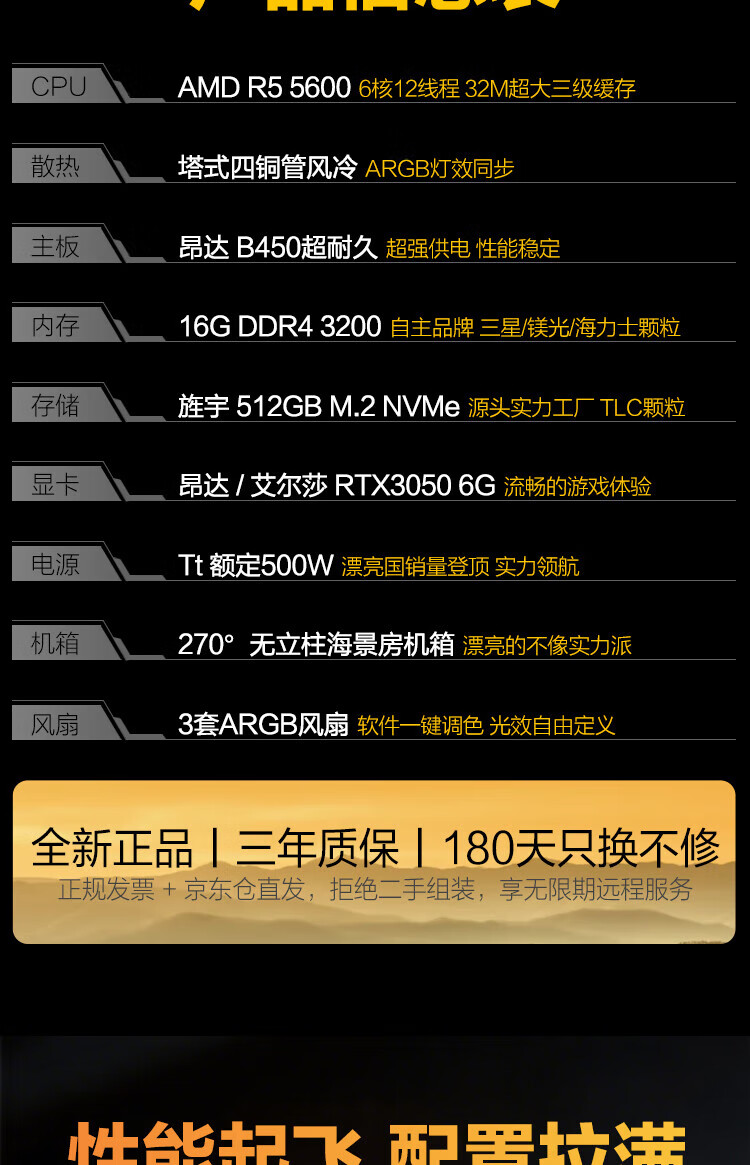 Changxiao e-sports gaming desktop computer host designer complete set (R5 5600 16G+512G RTX3050 6G independent graphics) 20% national subsidy