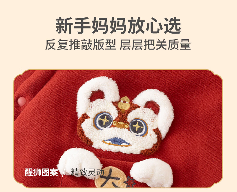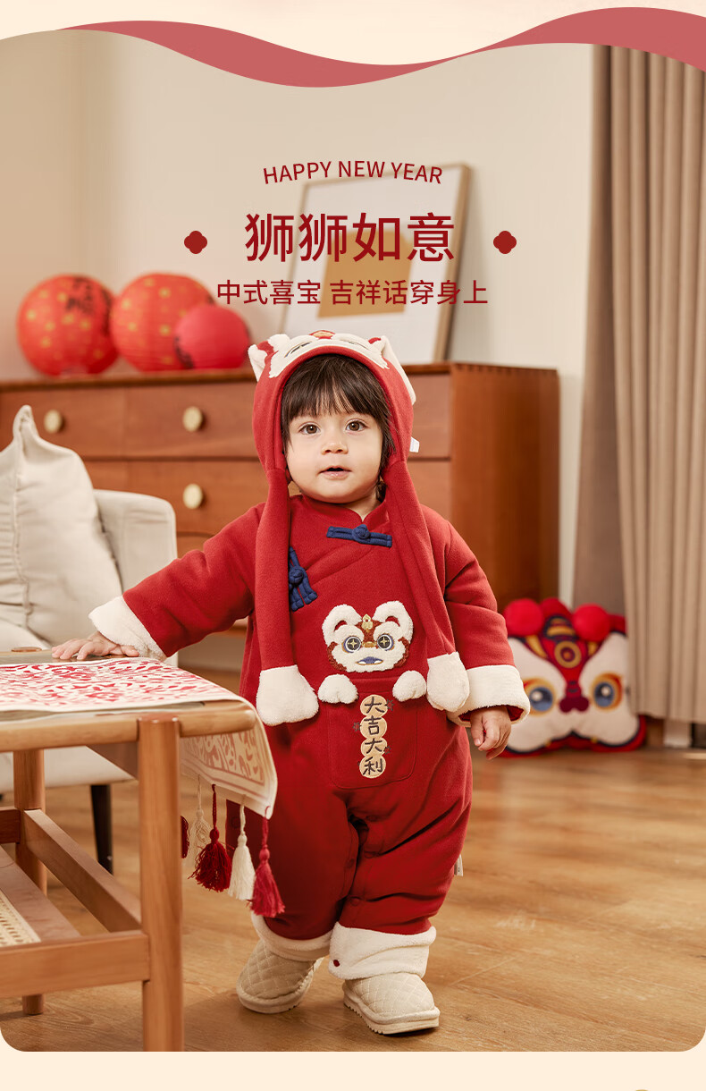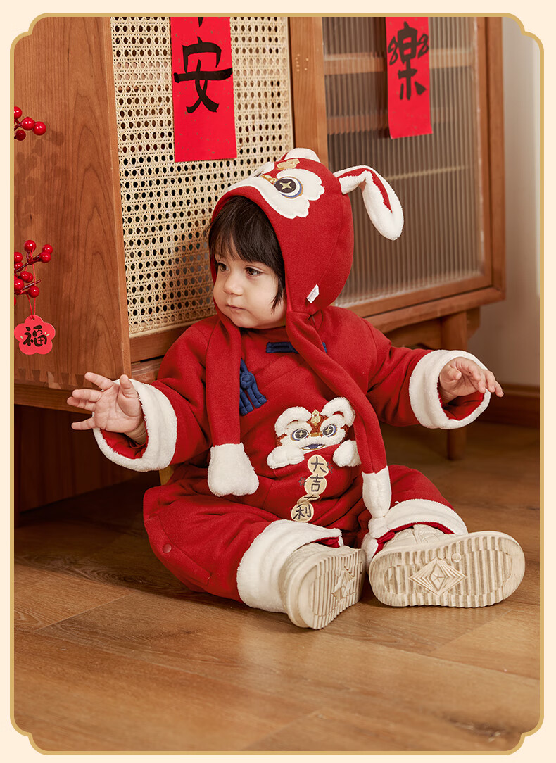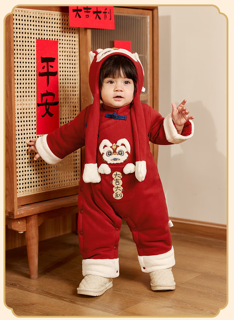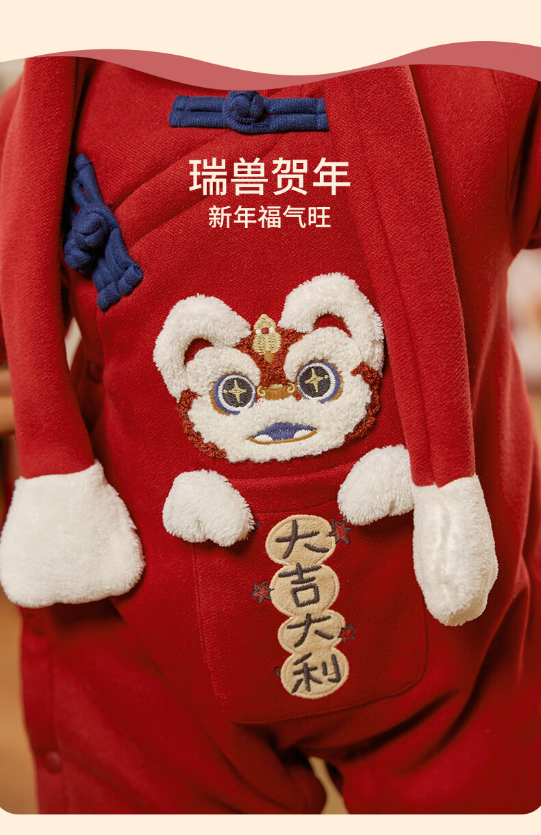 Koala nose nose baby New Year's greeting clothes Chinese style baby New Year clothes full moon one year old clothes Lion Lion Ruyi Awakening Lion New Chinese Style