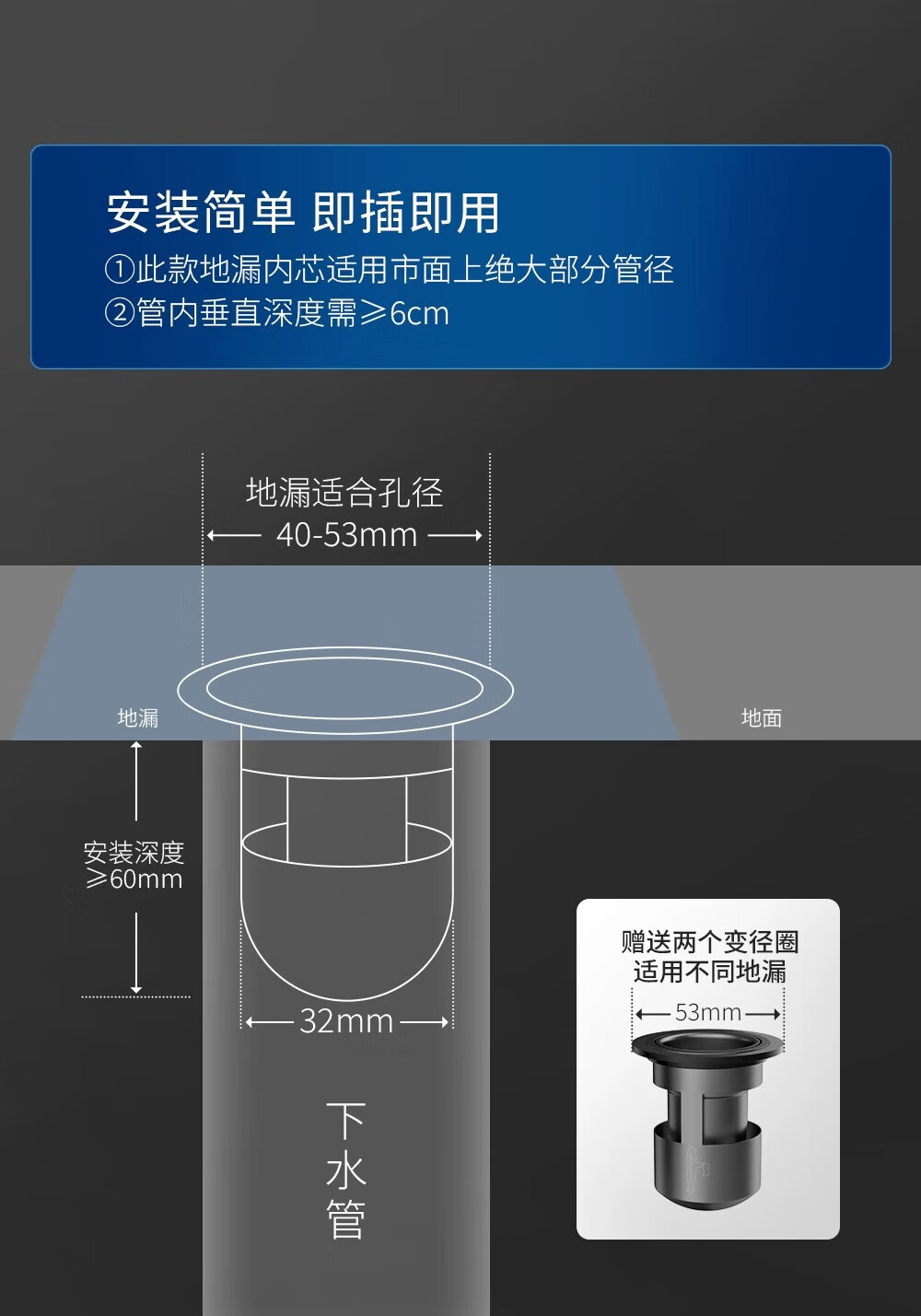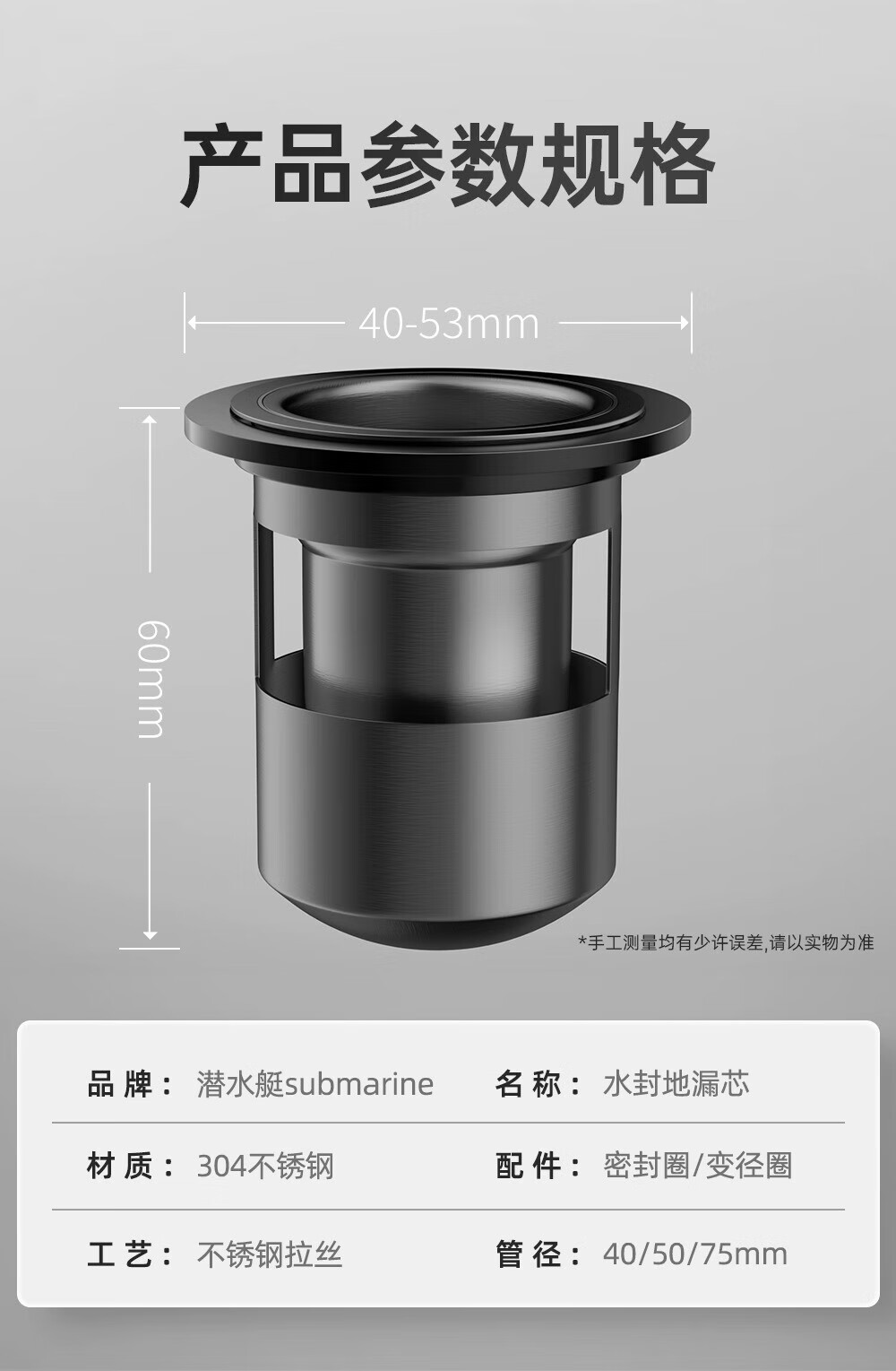 Submarine FCQ-3205H 304 stainless steel floor drain core deodorizing core sewer deodorizing cover deodorizing artifact