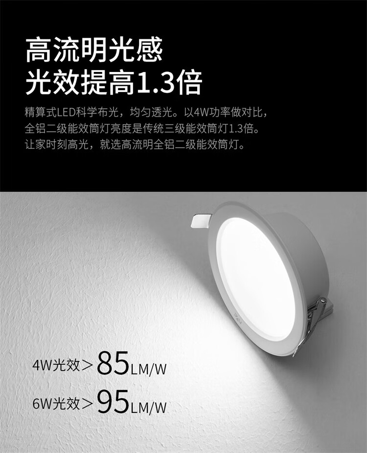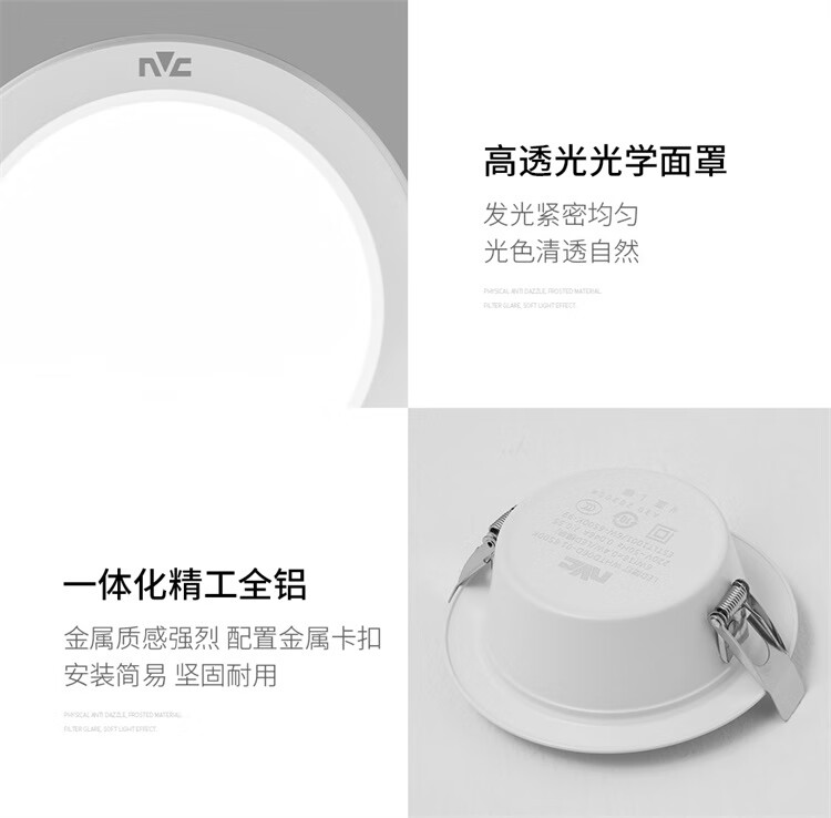 NVC LED downlight, living room, bedroom, aisle, embedded ceiling light, commercial light, all aluminum 6 watts, painted white, white opening 75mm