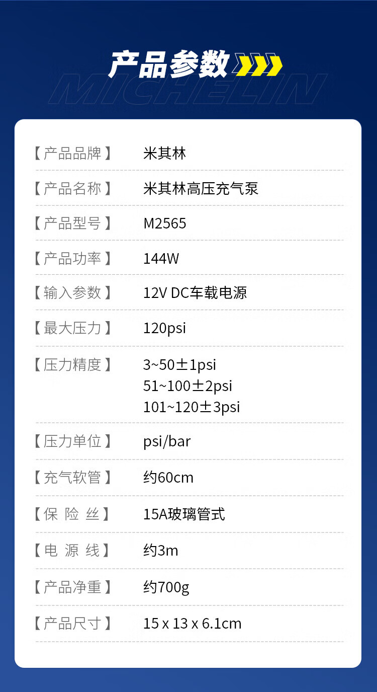 MICHELIN car air pump high power air pump car tire wired air pump tire pressure detection pump M2565