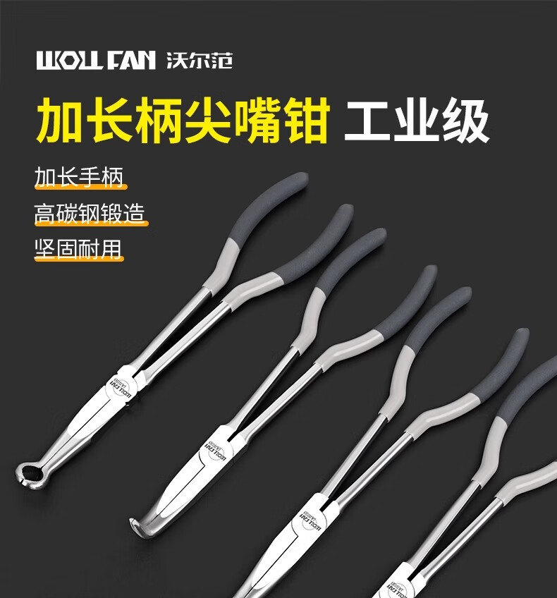 Wolfan extended needle nose pliers, curved nose pliers, 11-inch 16-inch industrial-grade extra-long needle-nose clamping O-type pliers