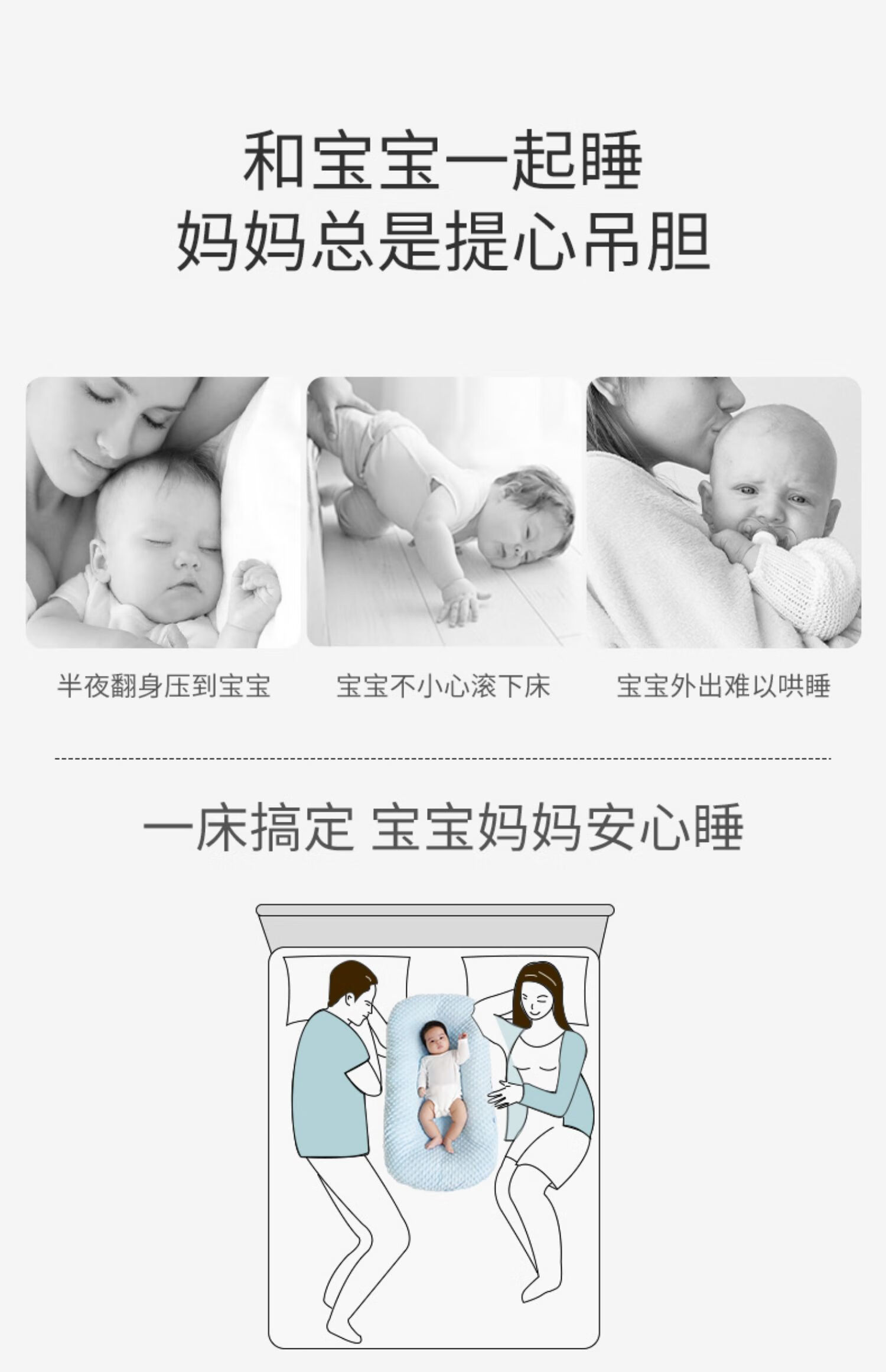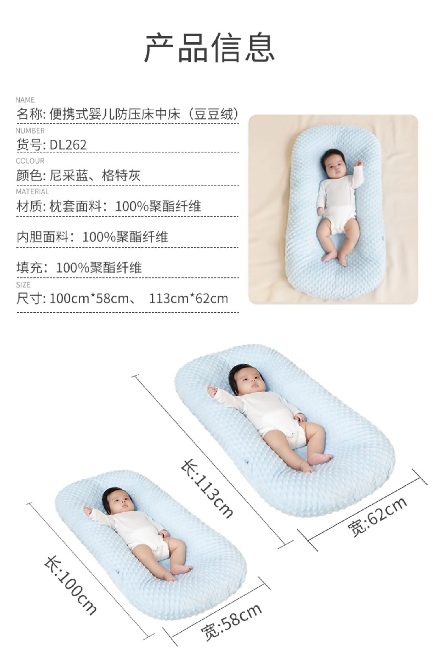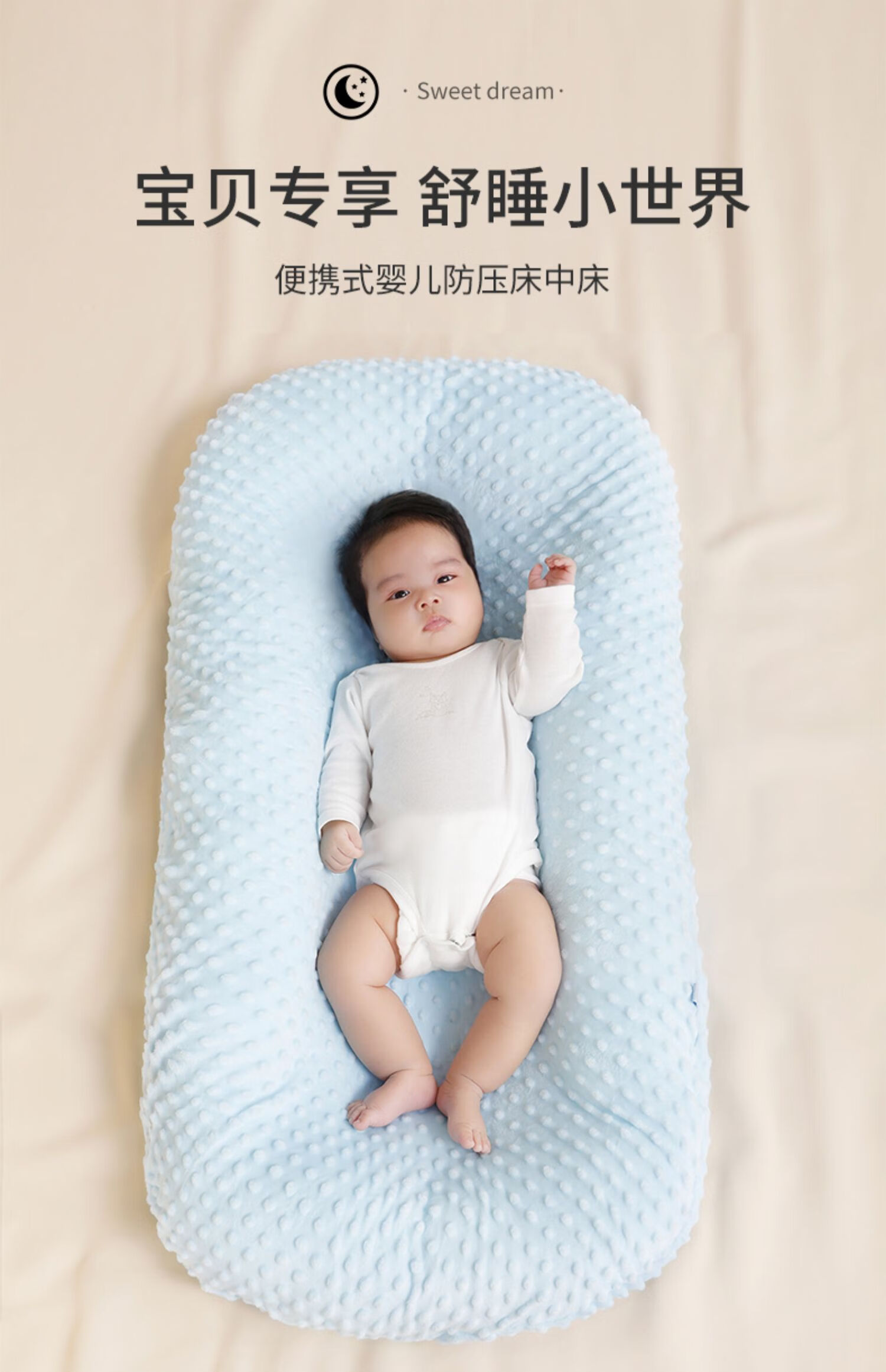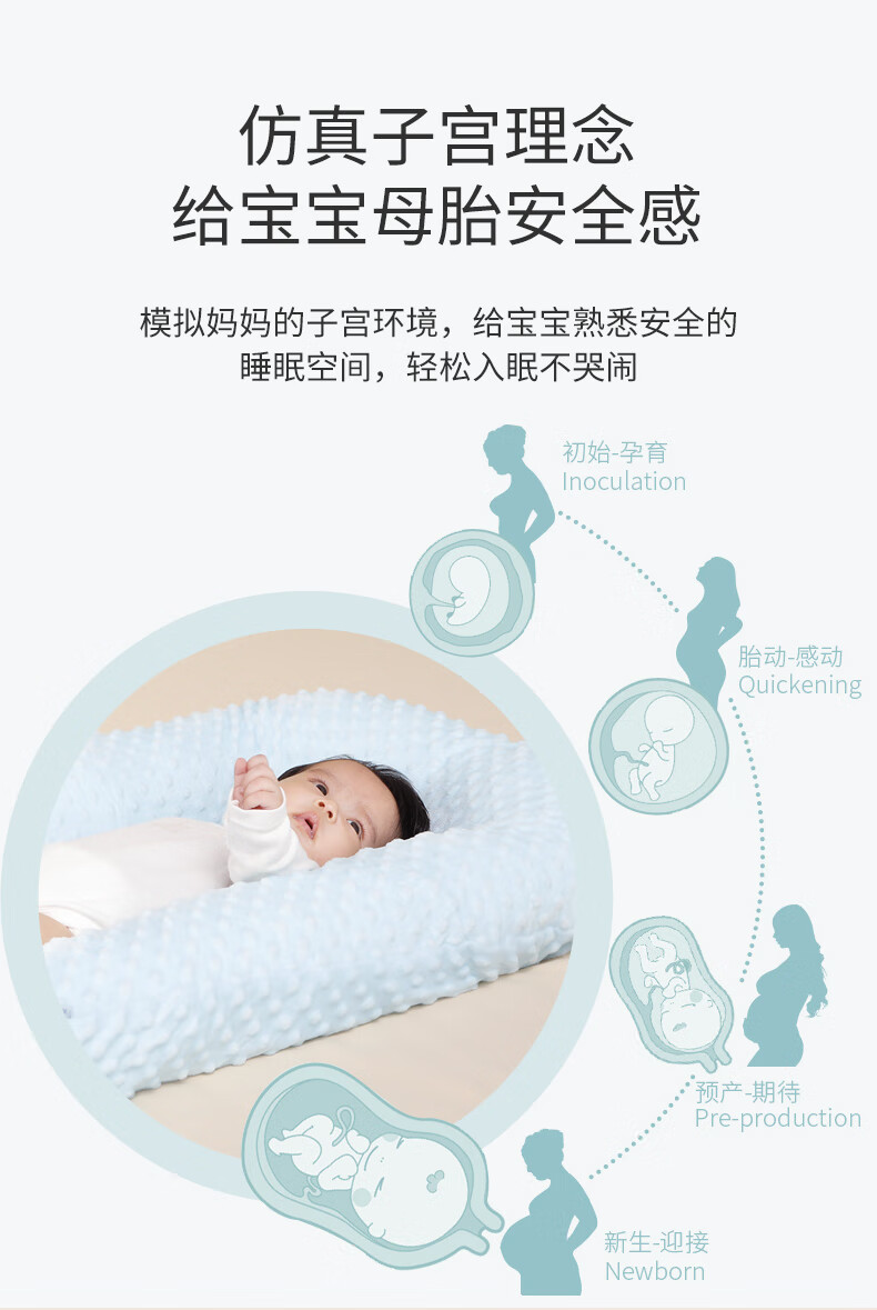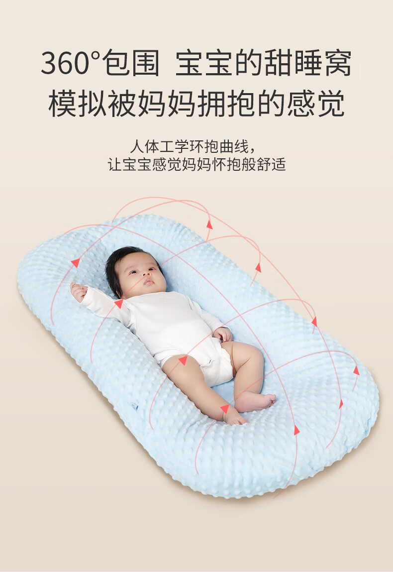 Tile Bed-in-Bed Pillow Newborn Portable Baby Crib Sleeping Magic Device Movable Bionic Crib Bed Anti-pressure Sleeping Bed Gert Gray-Bean Blanket (0-2 years old)