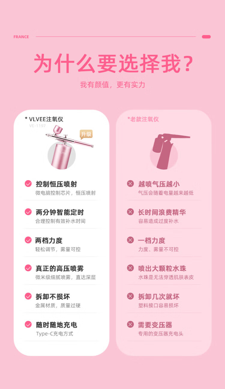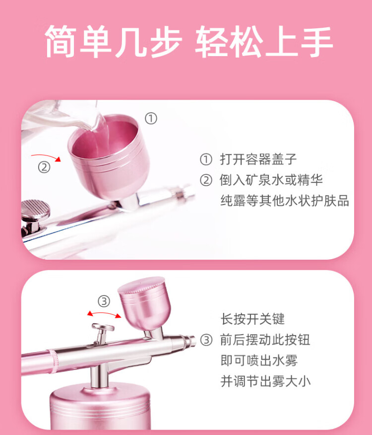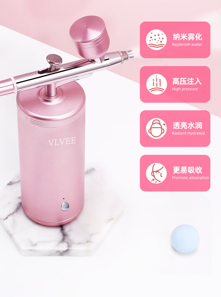 VLVEE High Pressure Oxygen Injection Instrument Home Portable Handheld Nano Spray Hydrating Instrument Scalp Applicator Ladies Birthday Gift for Wife Practical Champagne Gold Sprayable Toner Essence + Intelligent Timing