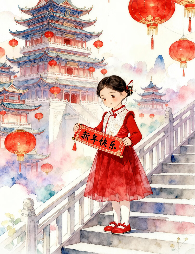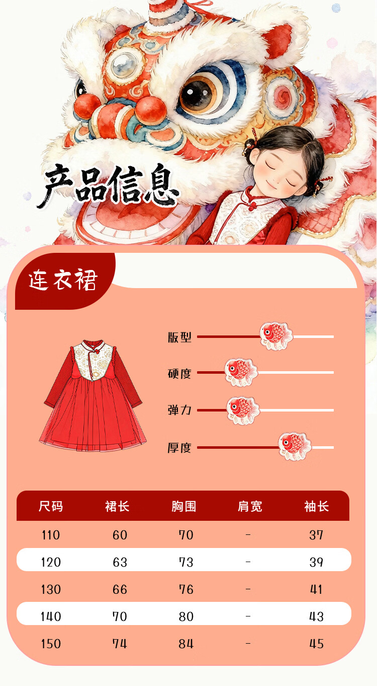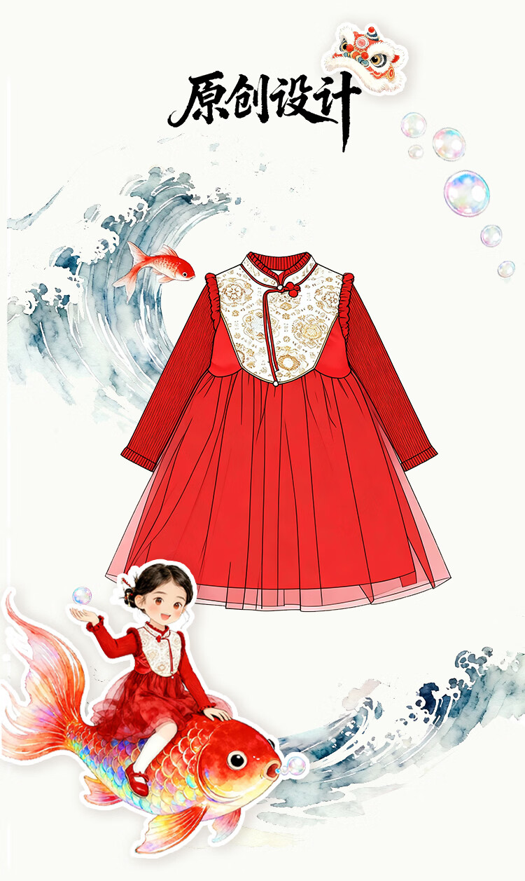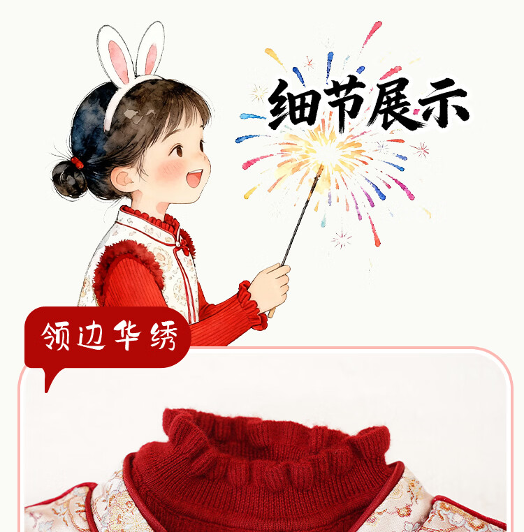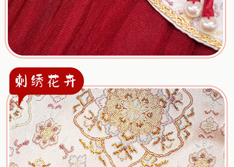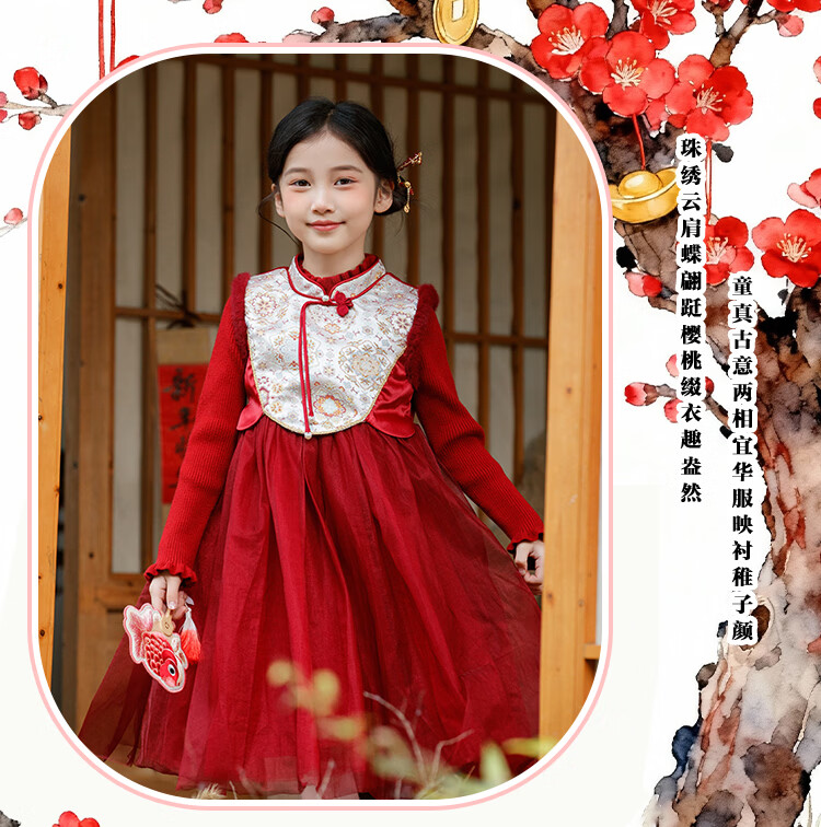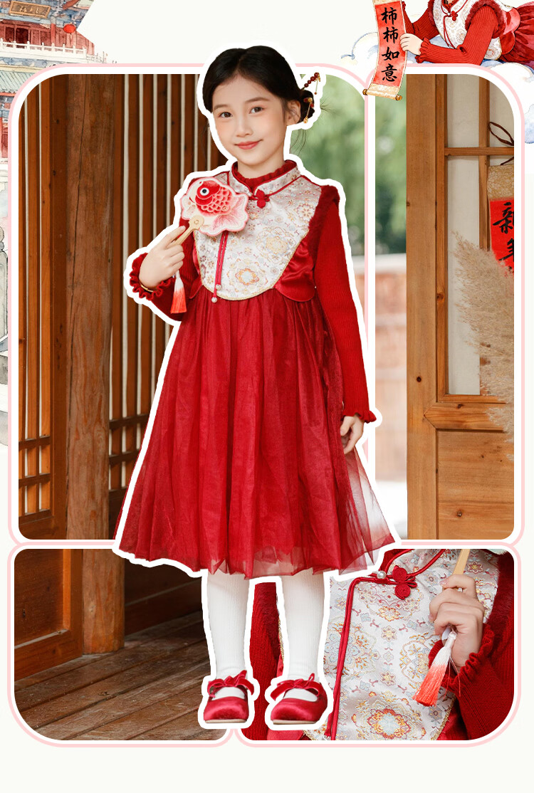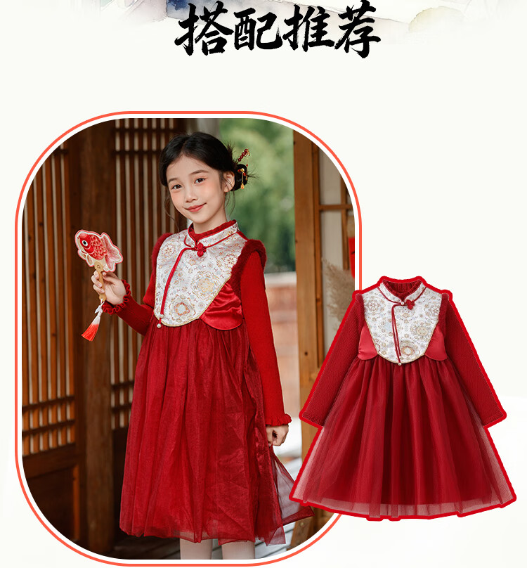 Huatian Cai New Chinese Hanfu Girls New Year's Clothes Autumn and Winter Children's New Year's Clothes Thickened Dresses Princess Dress New Year's Clothes