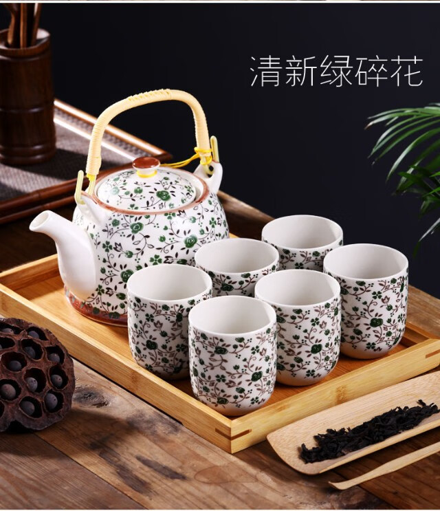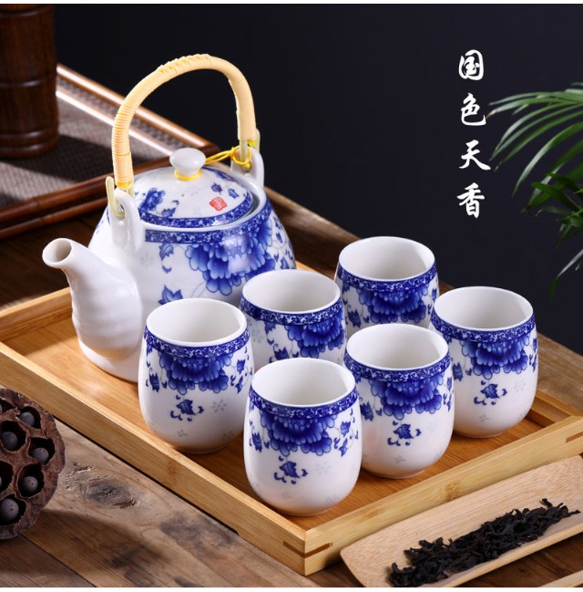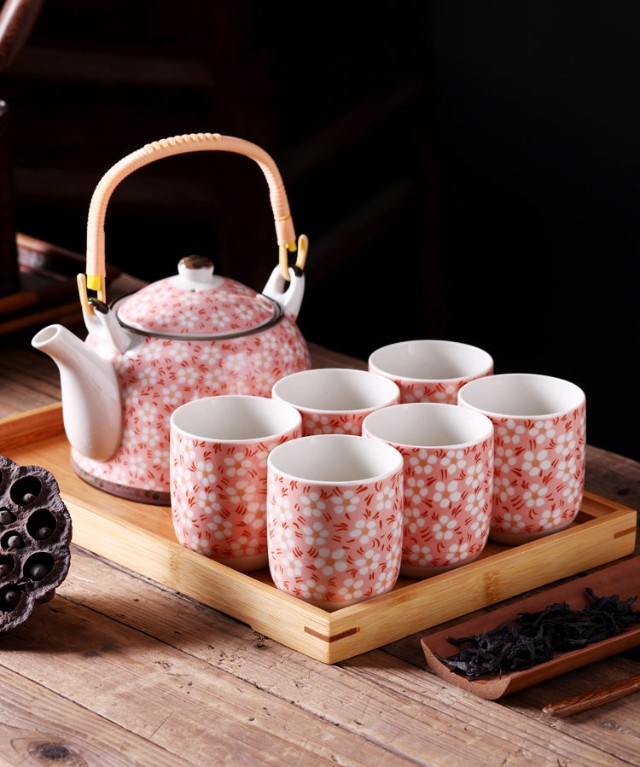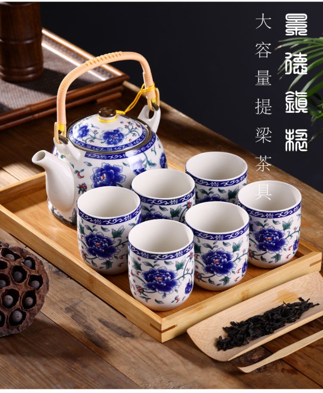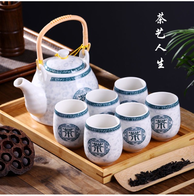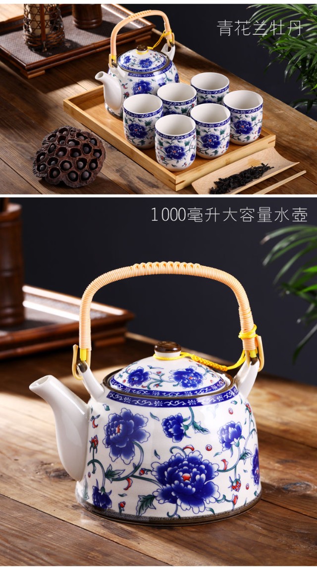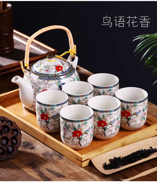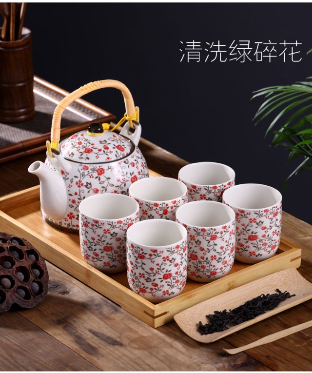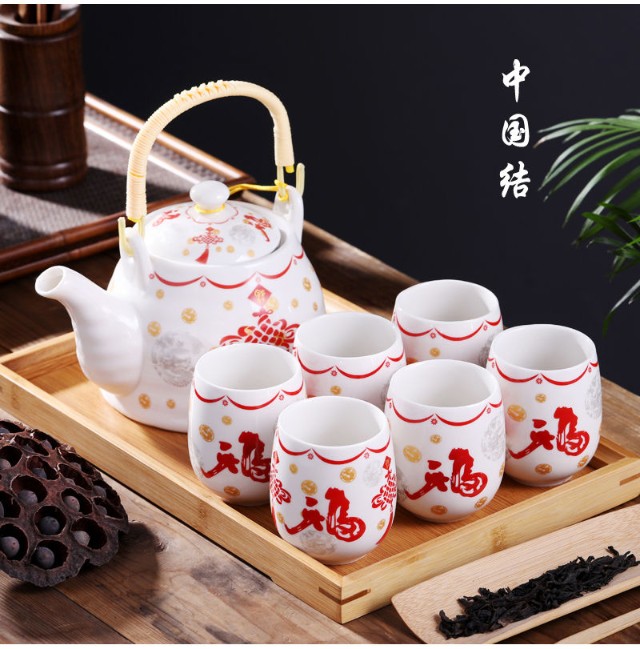 Guai Japanese style teapot tea set Jingdezhen ceramic complete set teapot teacup 6 pieces for home use Chinese classical Chinese knot (not including tray) 7 pieces