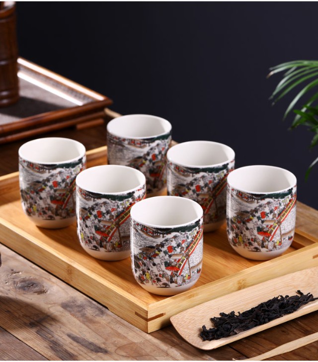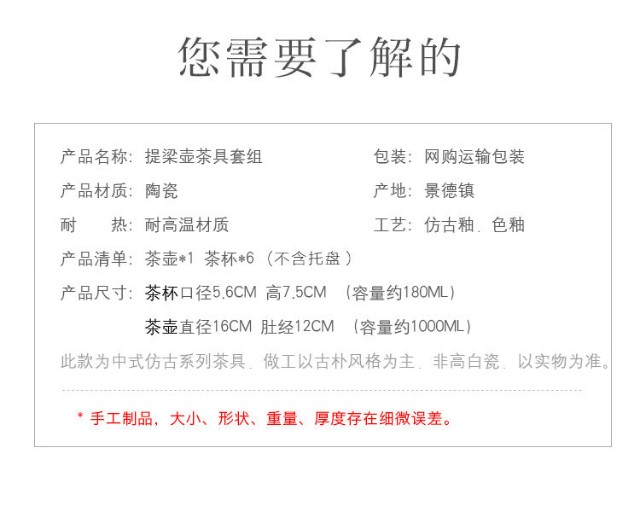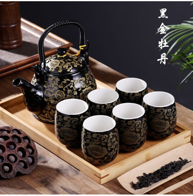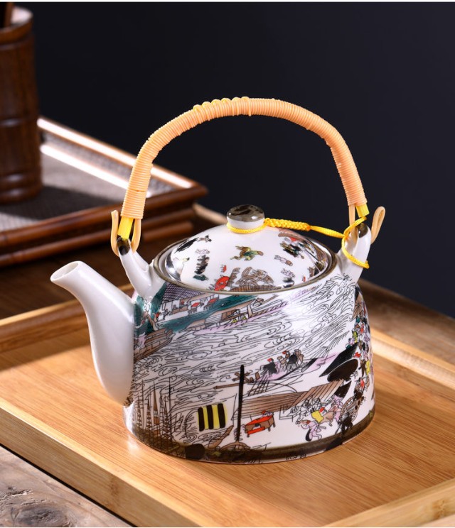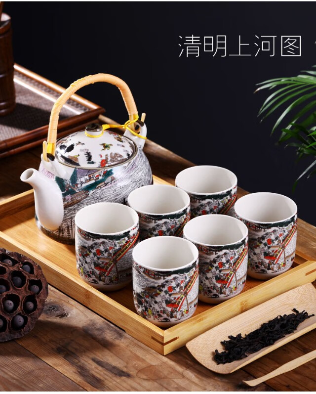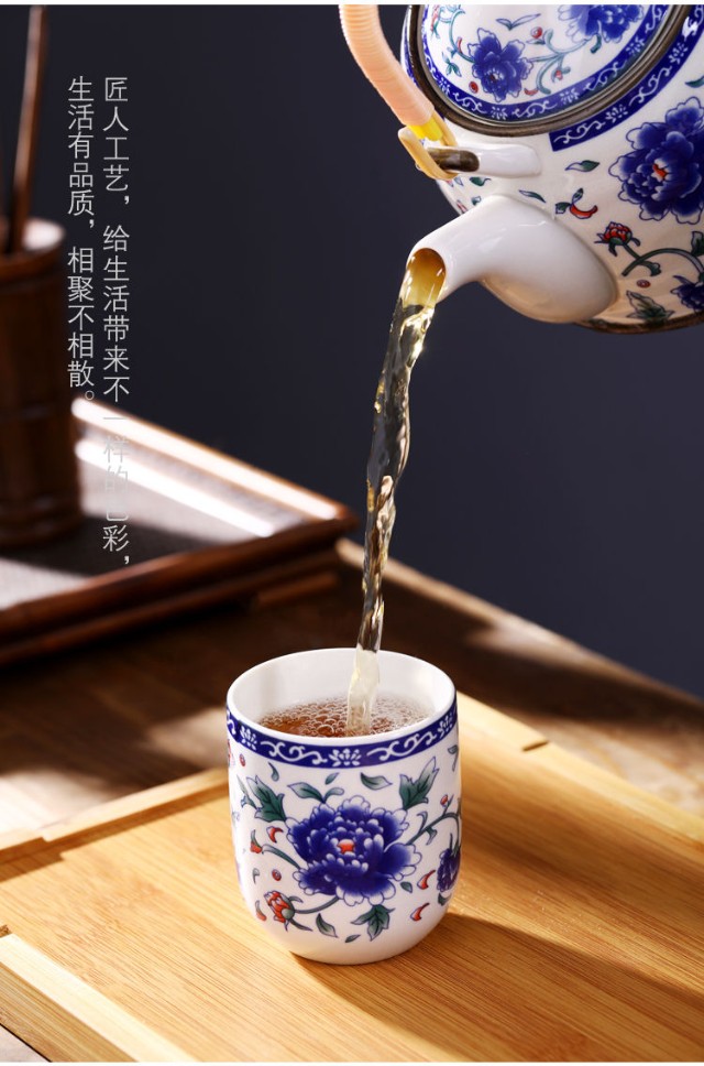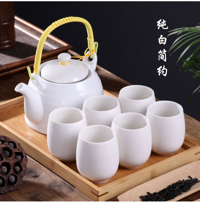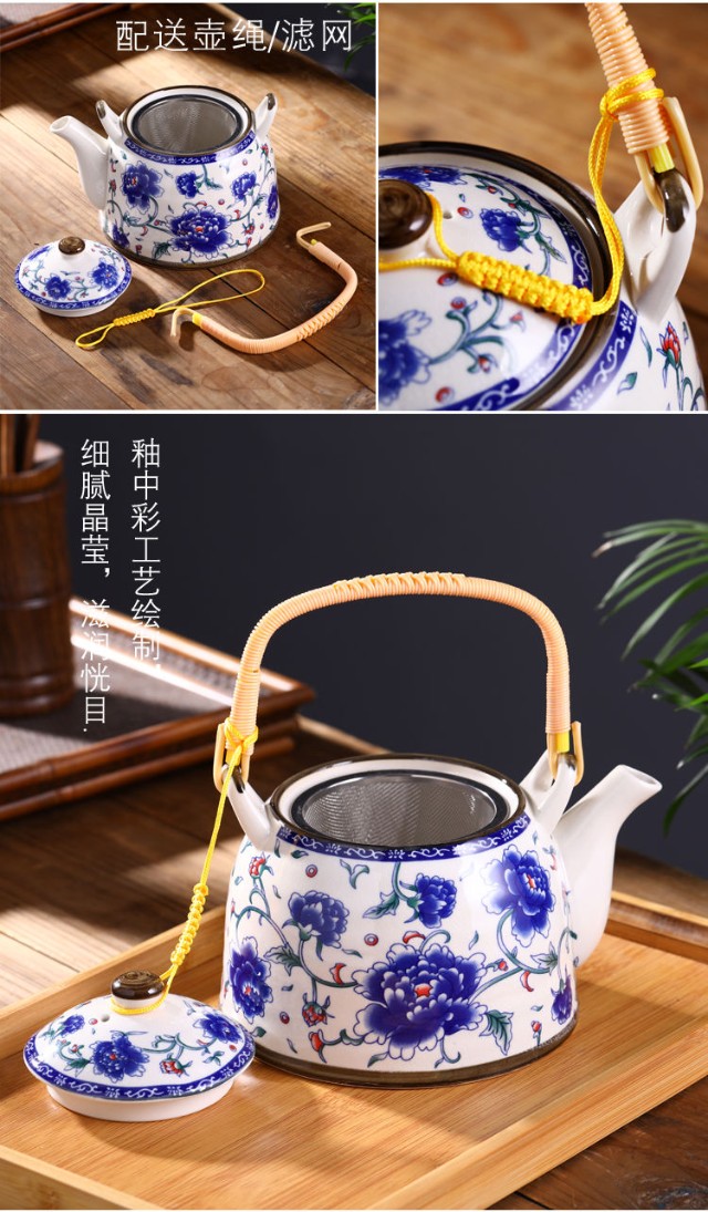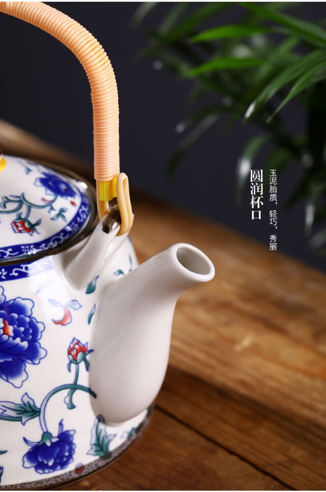 Guai Japanese style teapot tea set Jingdezhen ceramic complete set teapot teacup 6 pieces for home use Chinese classical Chinese knot (not including tray) 7 pieces