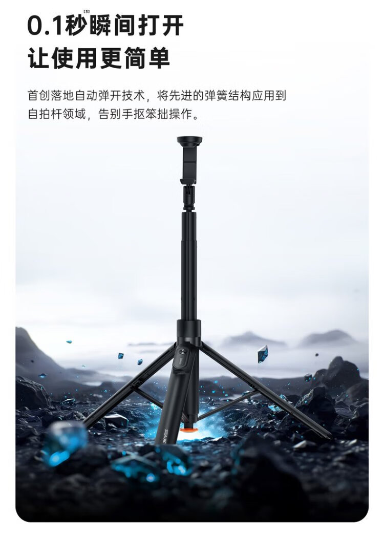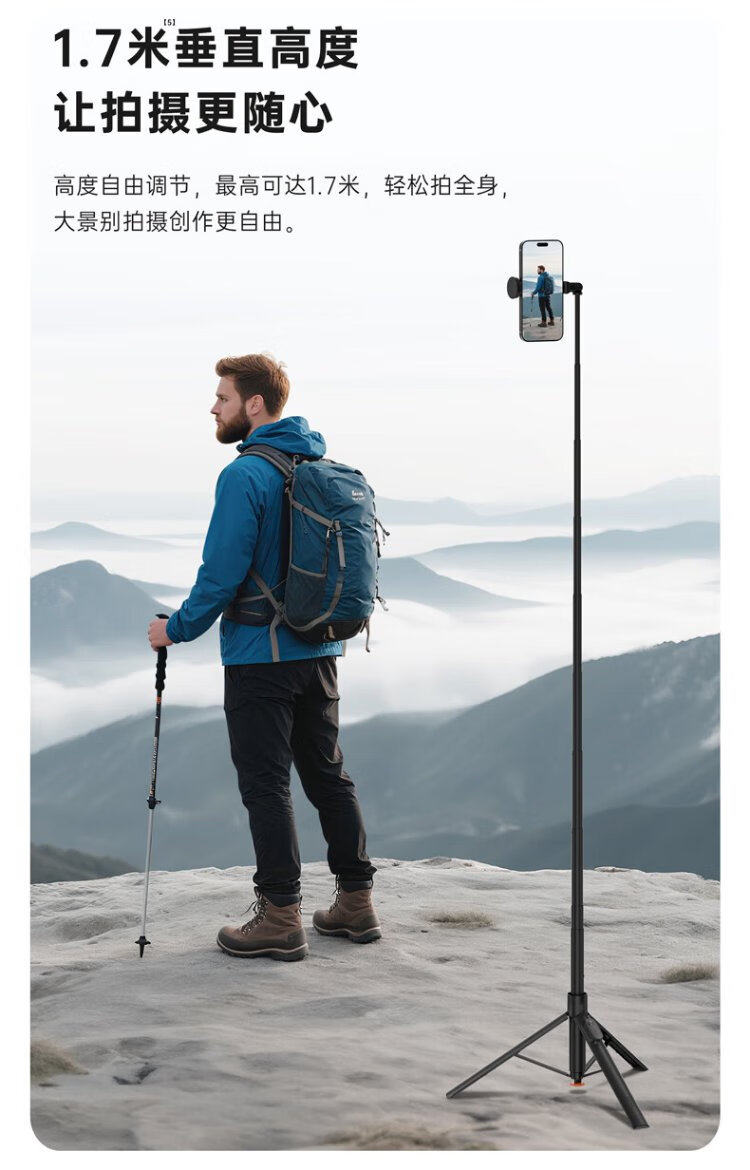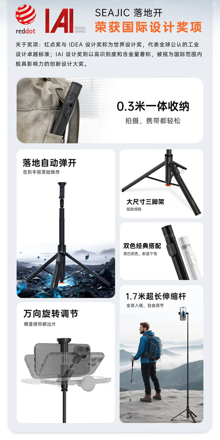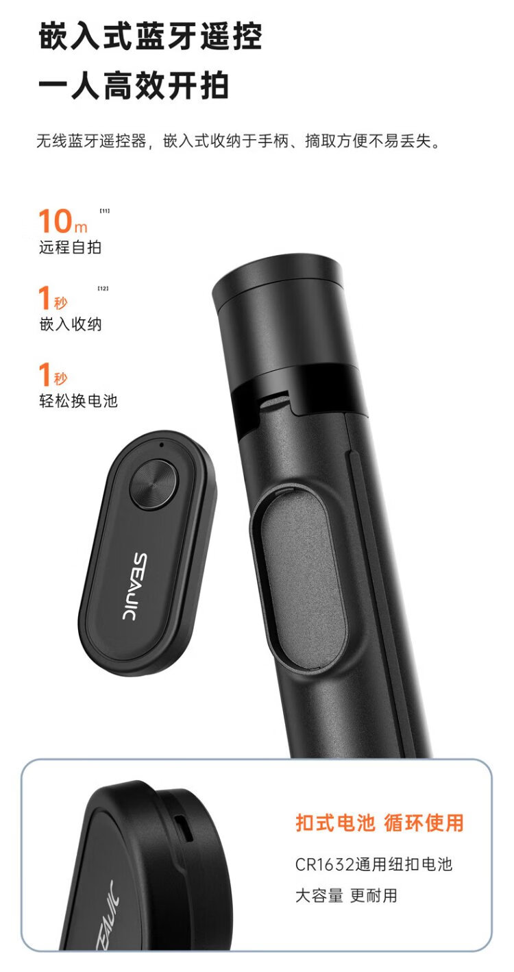 SEAJIC floor-standing selfie stick tripod mobile phone holder telescopic travel portable anti-shake selfie tool 360-degree rotation fully automatic multi-function shooting live broadcast black 1.7 meters