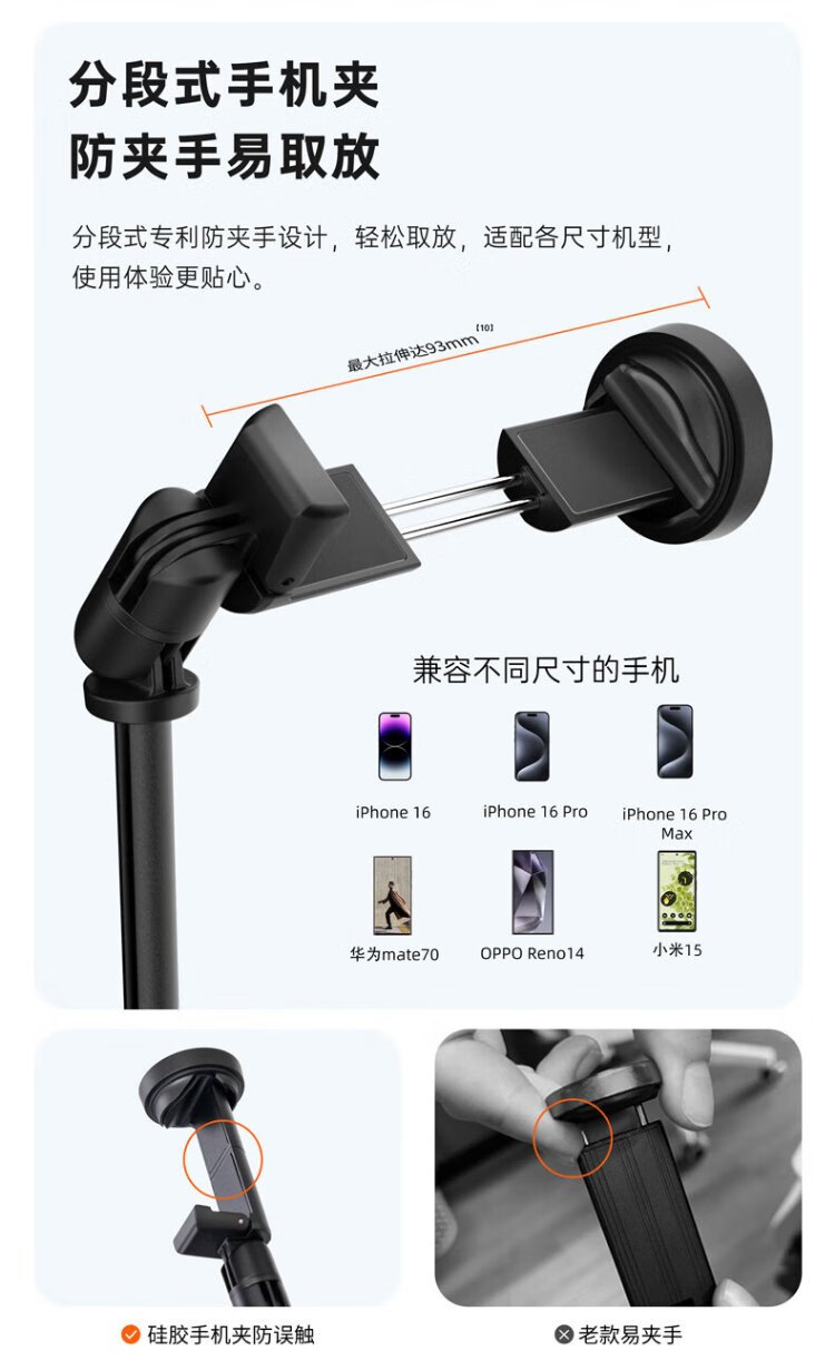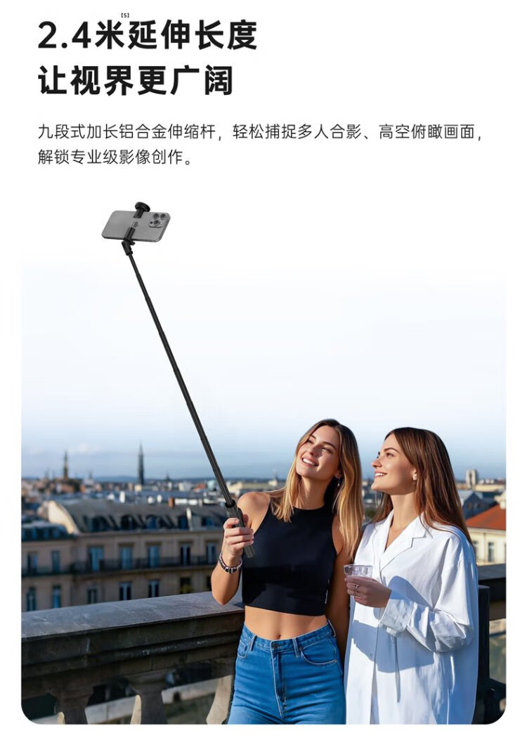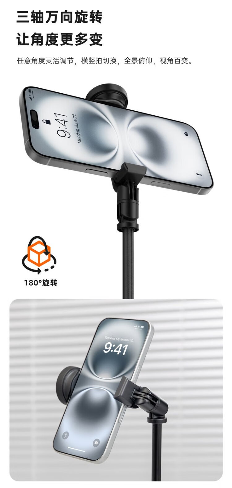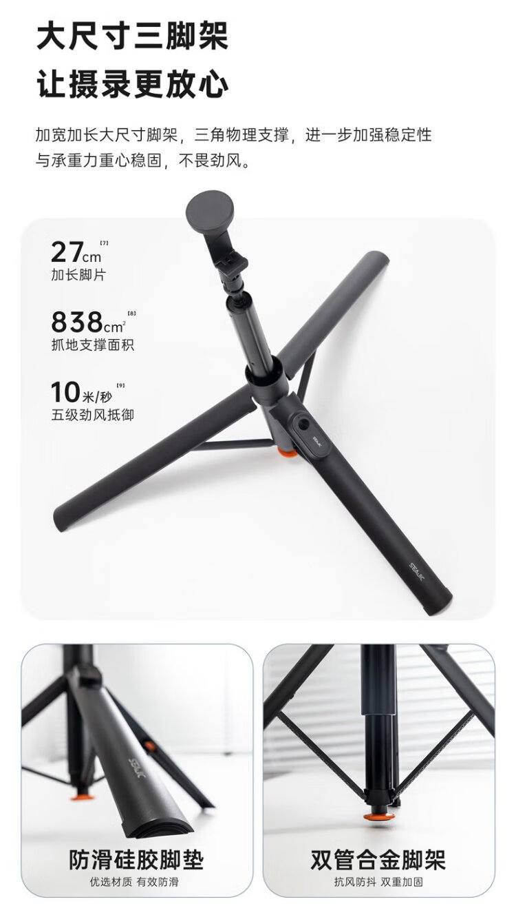 SEAJIC floor-standing selfie stick tripod mobile phone holder telescopic travel portable anti-shake selfie tool 360-degree rotation fully automatic multi-function shooting live broadcast black 1.7 meters