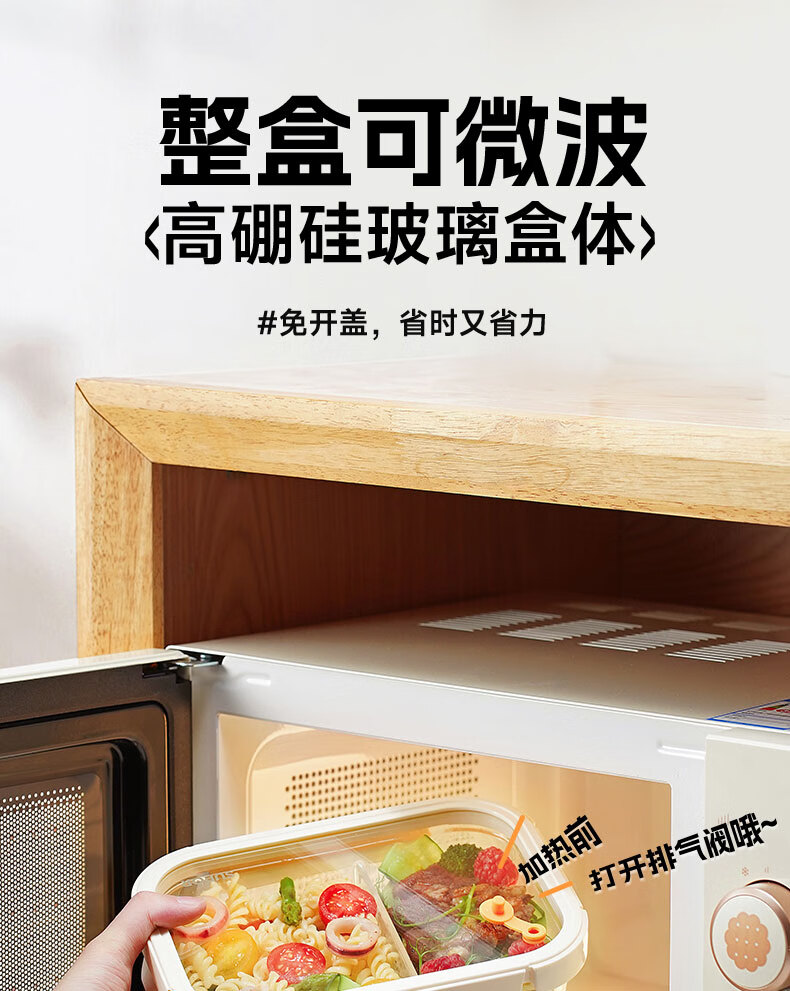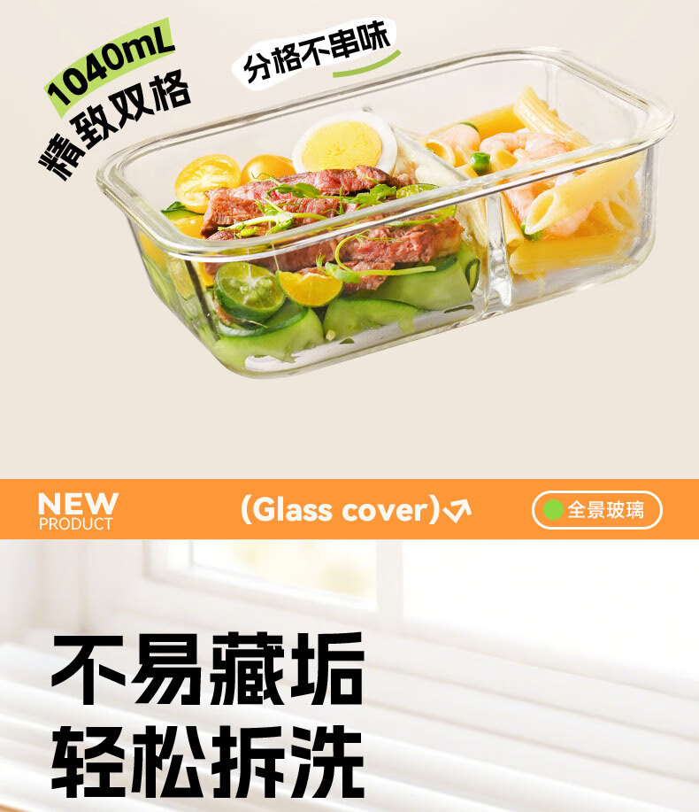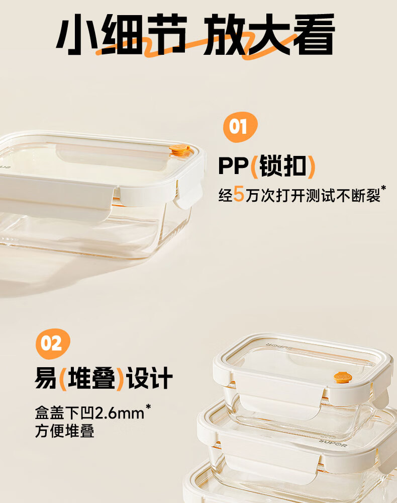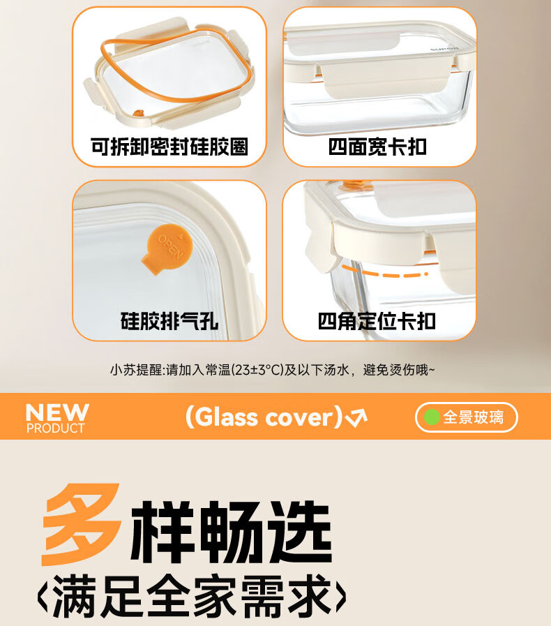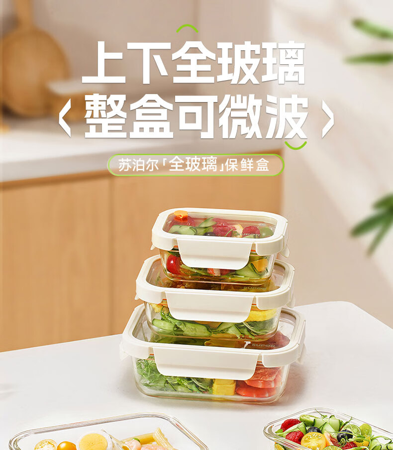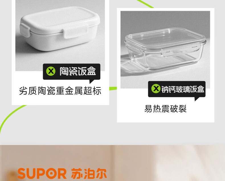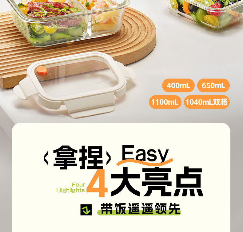 SUPOR crisper glass lunch box office worker microwave heated lunch box special student lunch box 1100ml cheese white