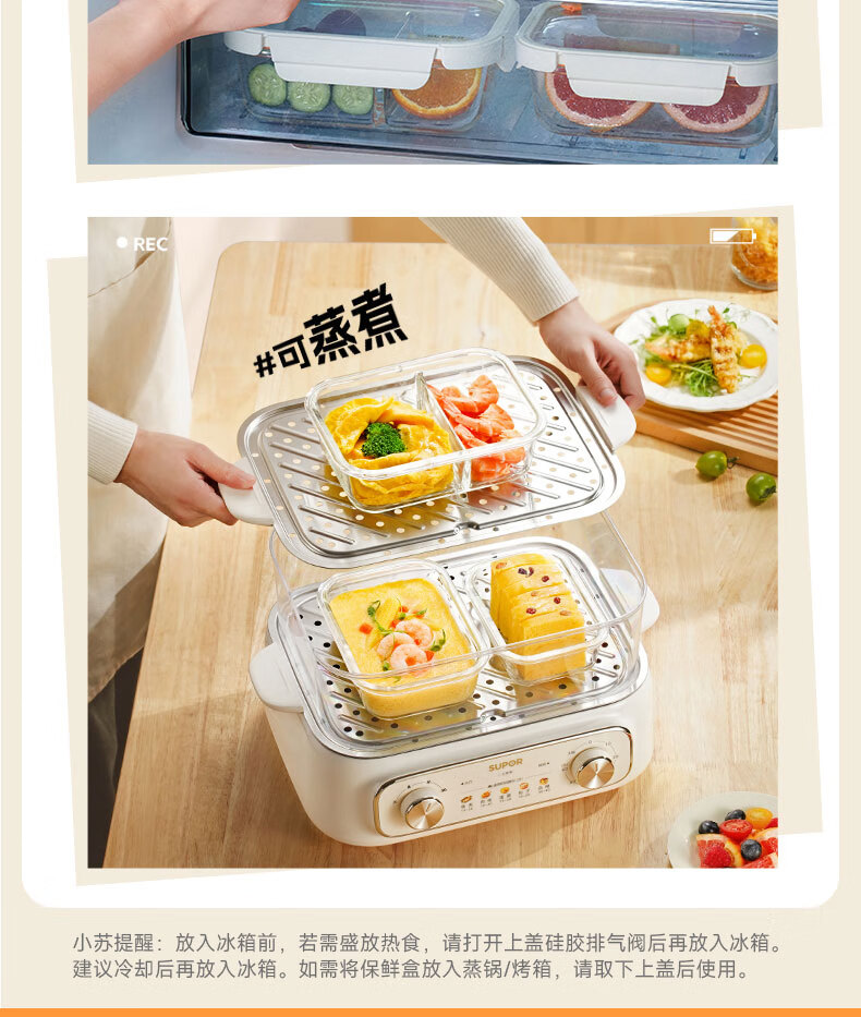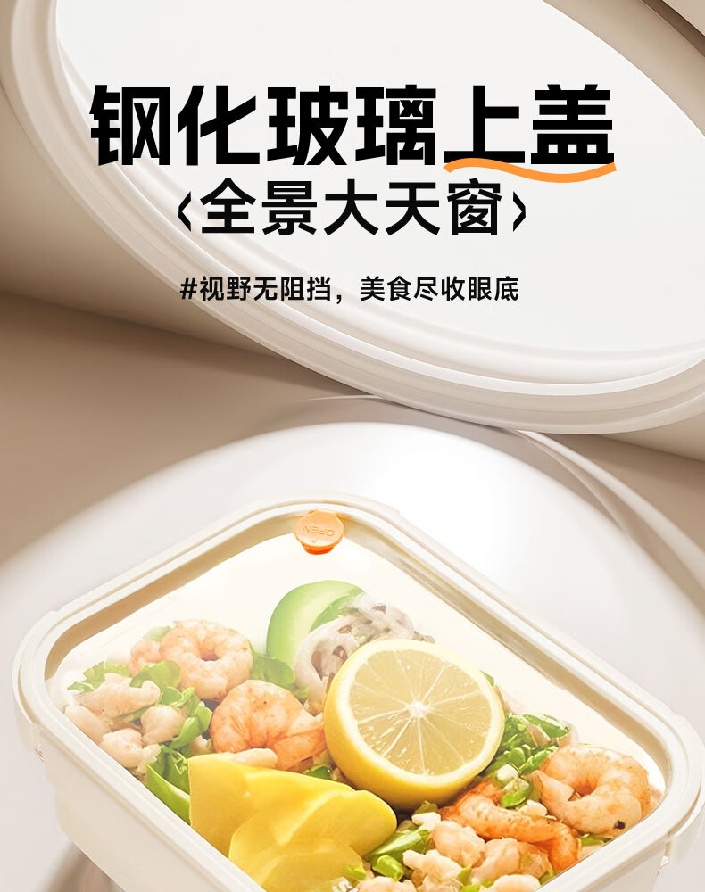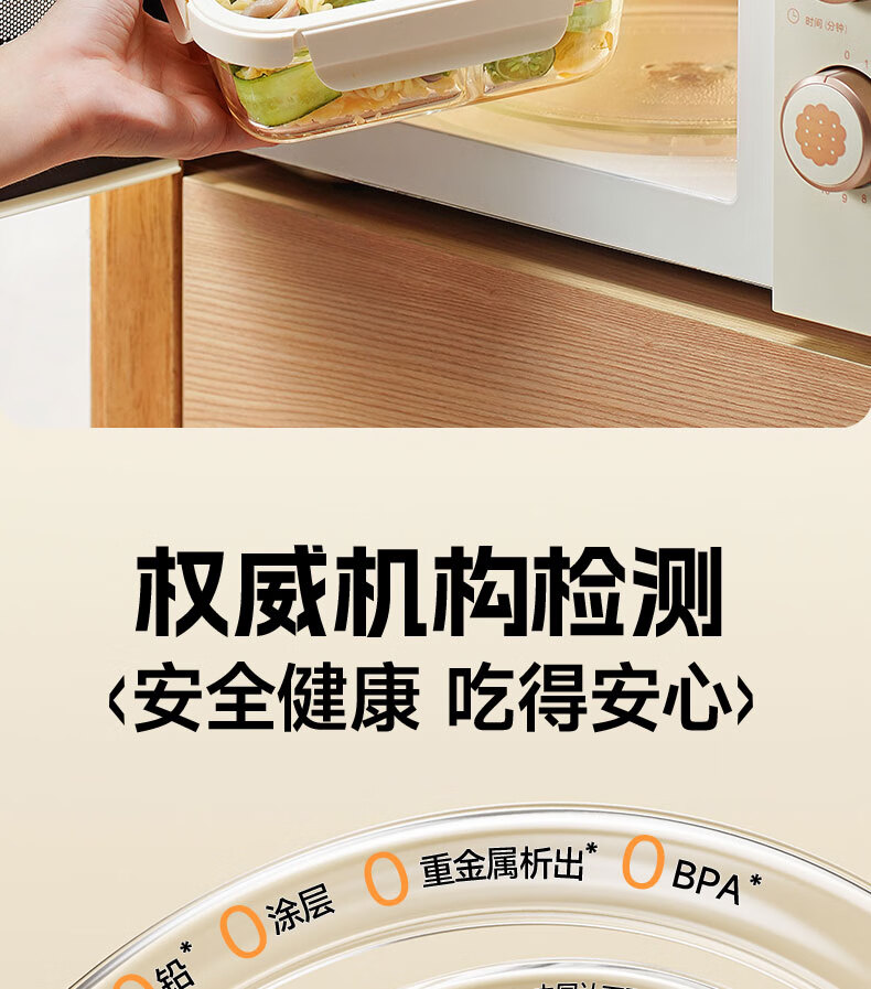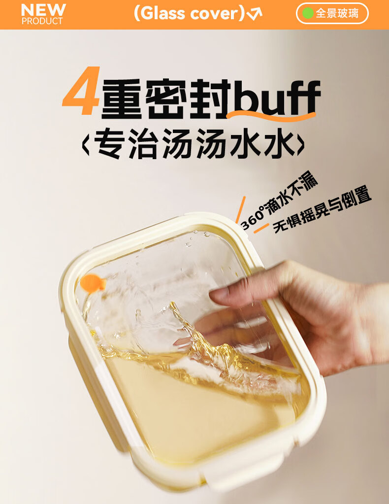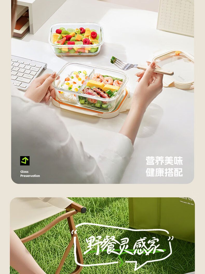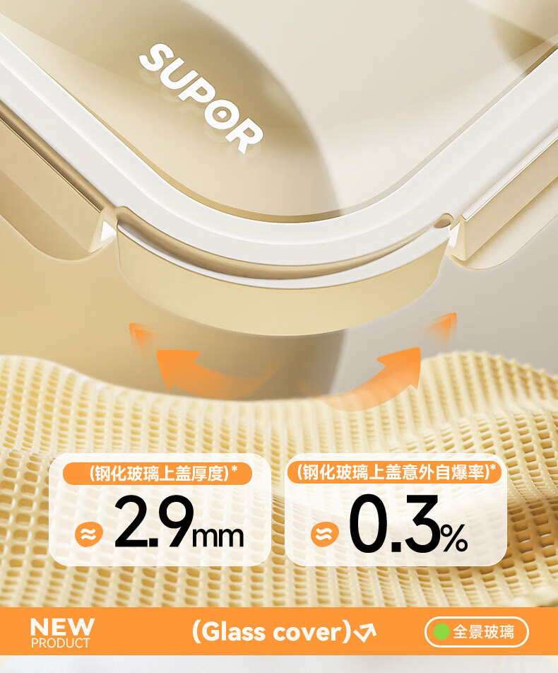 SUPOR crisper glass lunch box office worker microwave heated lunch box special student lunch box 1100ml cheese white