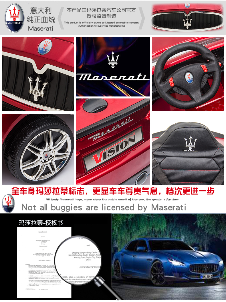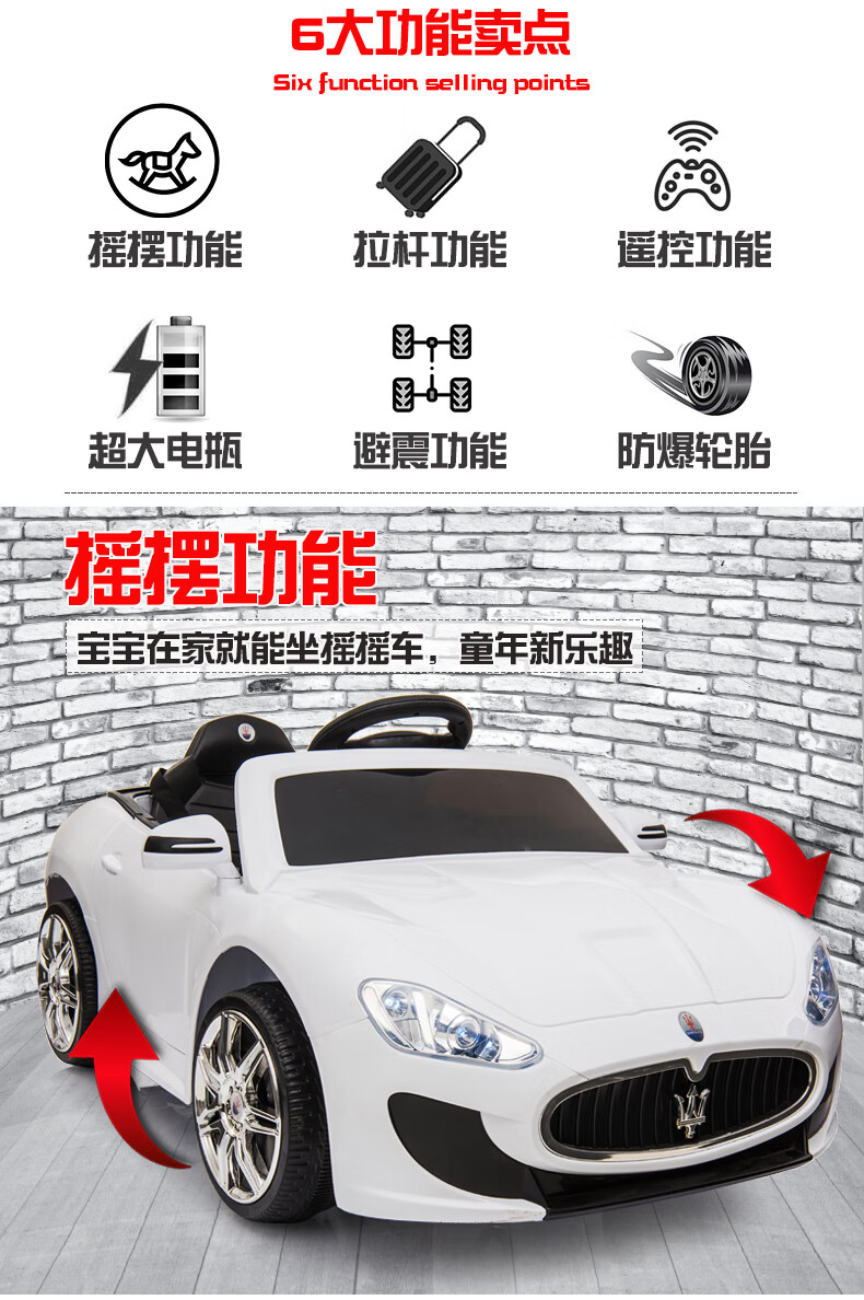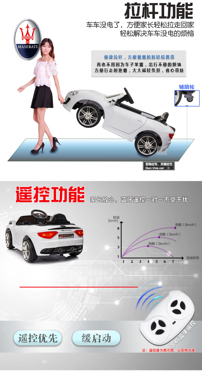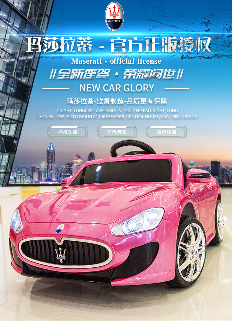 Love child Maserati children's electric car four-wheel with remote control car can sit in a child's stroller baby toy car can sit in a person Maserati four-wheel drive paint powder full function - leather seat + large lithium battery