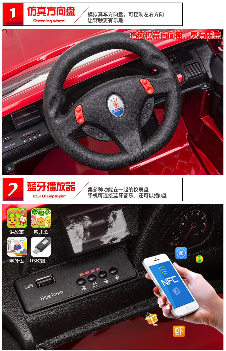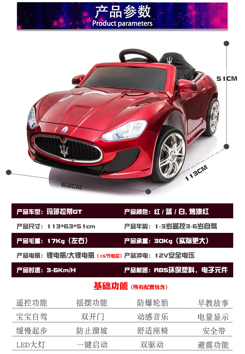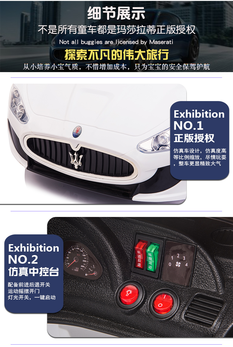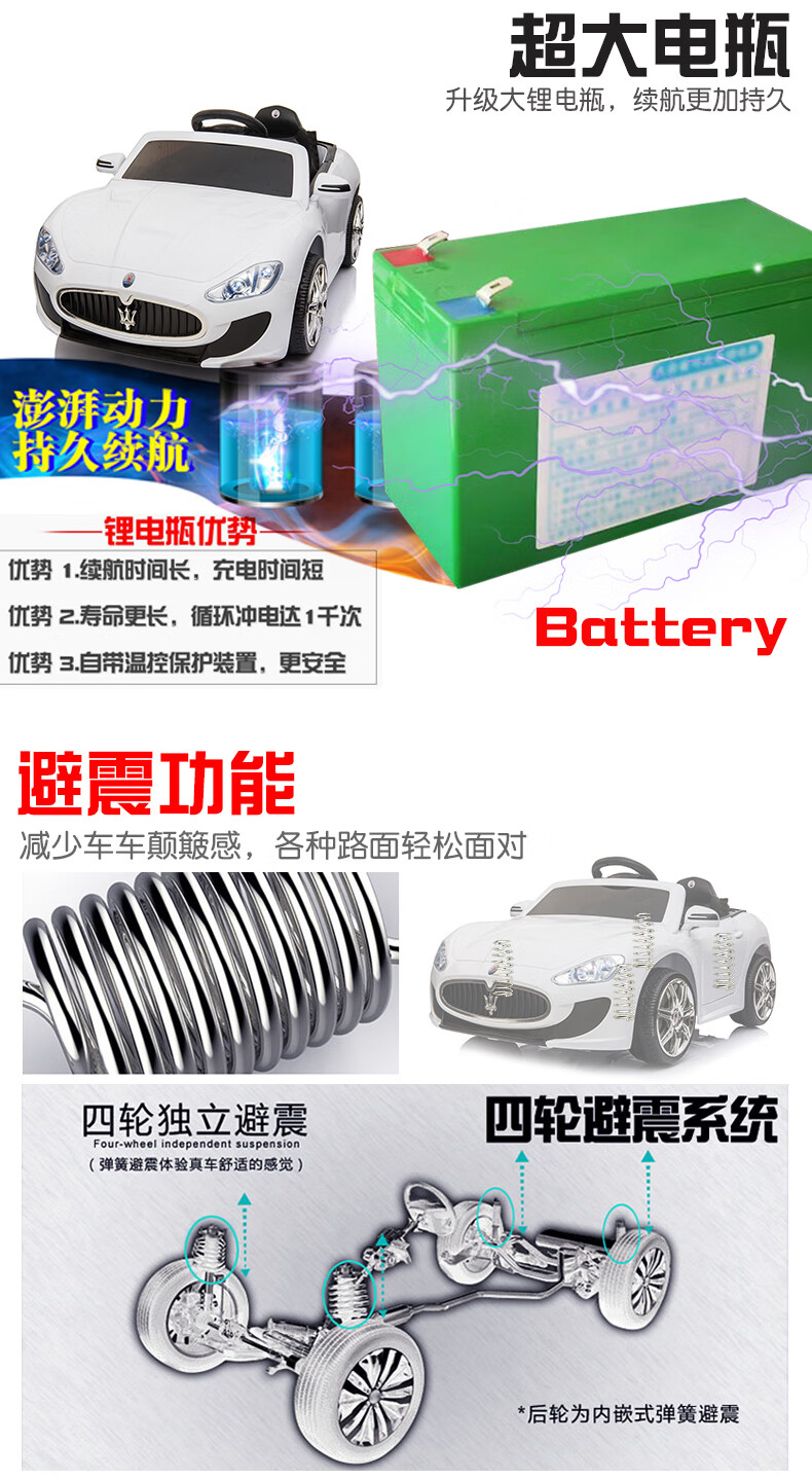 Love child Maserati children's electric car four-wheel with remote control car can sit in a child's stroller baby toy car can sit in a person Maserati four-wheel drive paint powder full function - leather seat + large lithium battery