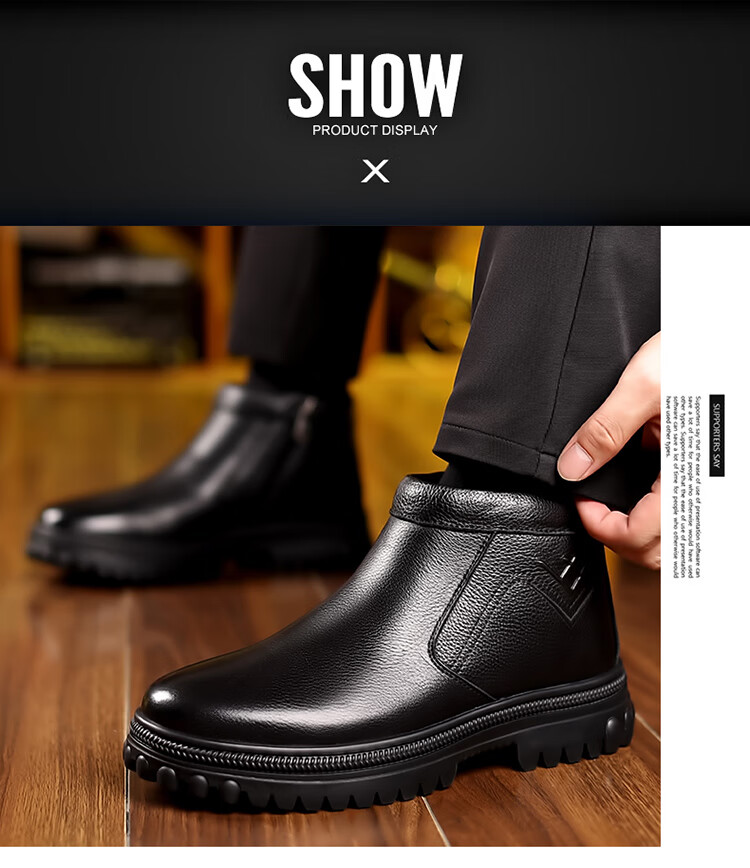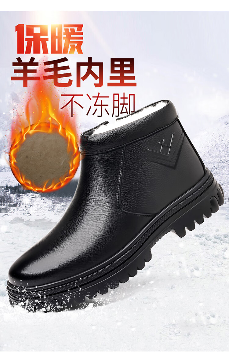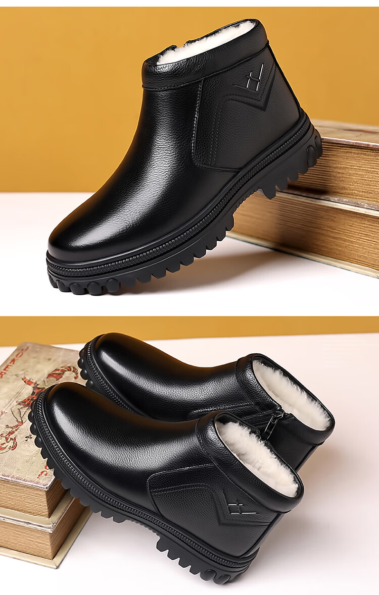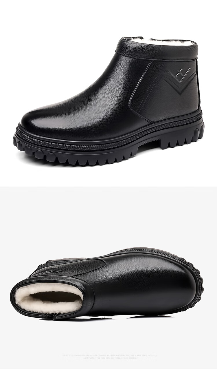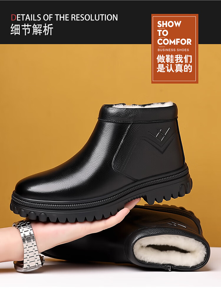 Old men's shoes winter genuine leather wool fur all-in-one warm cotton shoes plus velvet thickened business casual shoes cotton leather shoes LS-77007 black lace-up 40