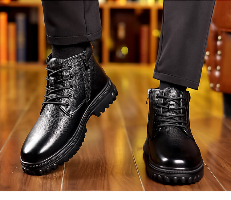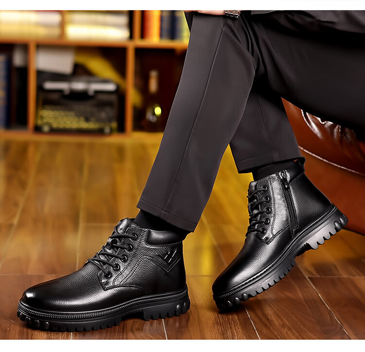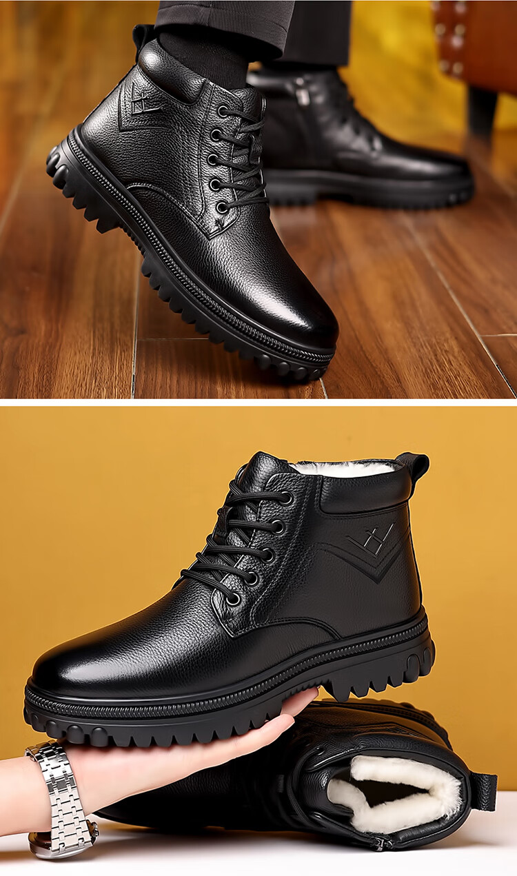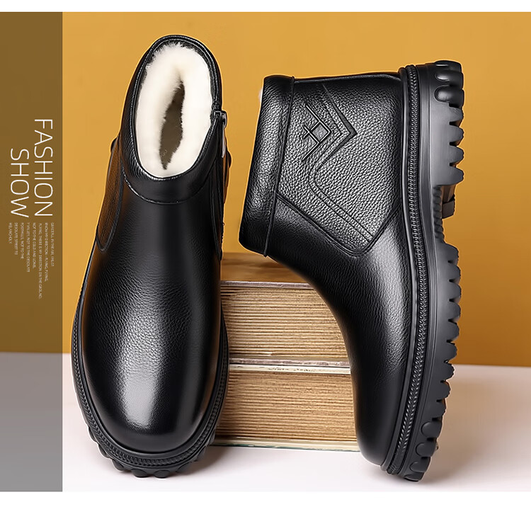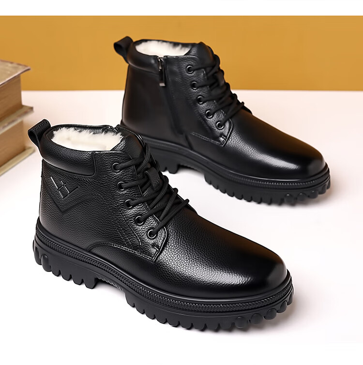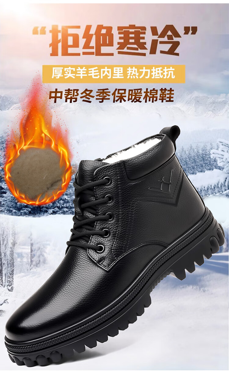 Old men's shoes winter genuine leather wool fur all-in-one warm cotton shoes plus velvet thickened business casual shoes cotton leather shoes LS-77007 black lace-up 40