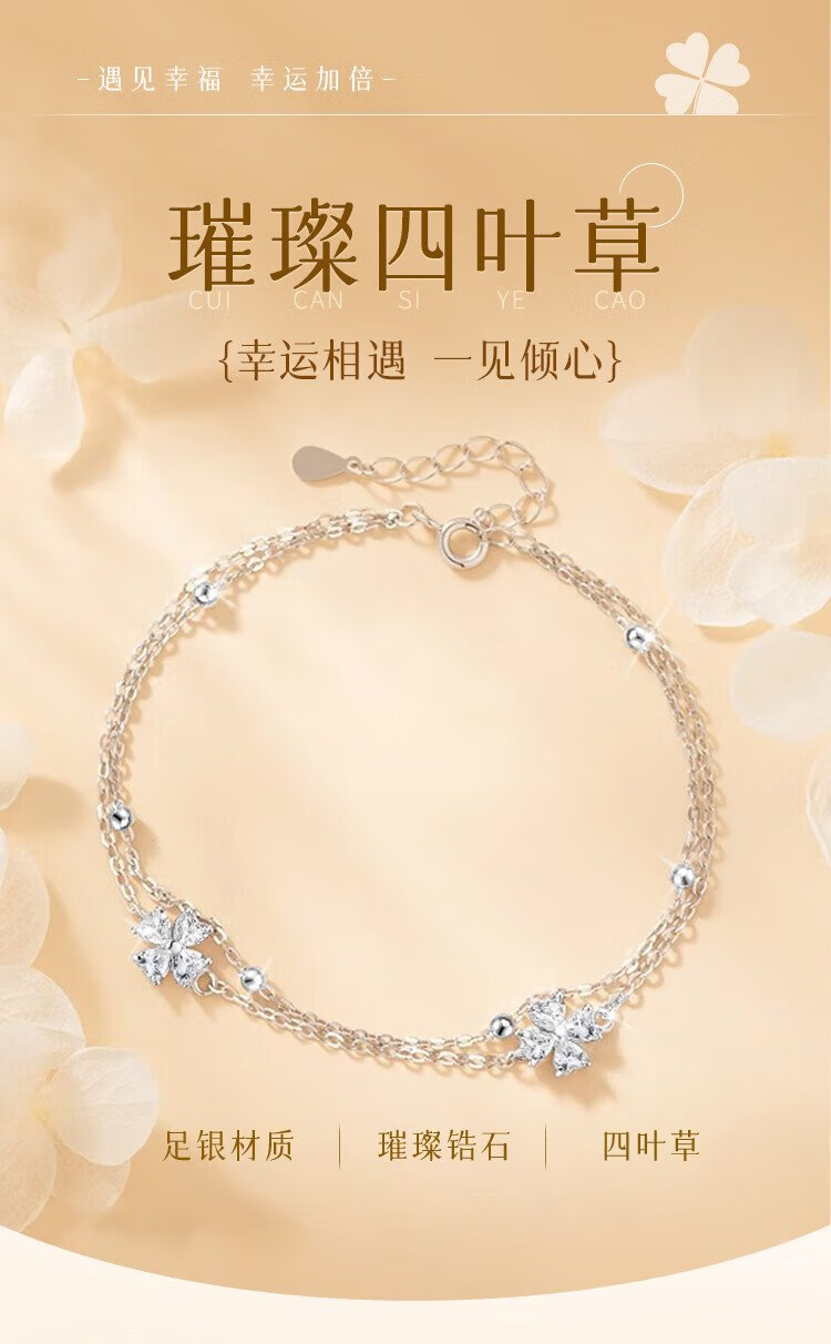 ALLOVE four-leaf clover sterling silver bracelet for women, pure silver jewelry, birthday gift for girlfriend, wife, ladies, light luxury and high-end