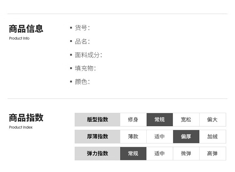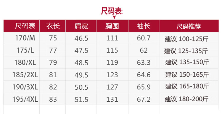 China (cm) 165 / 88-90 170 / 96-98 175 / 108-110 180 / 118-122 185 / 126-130
