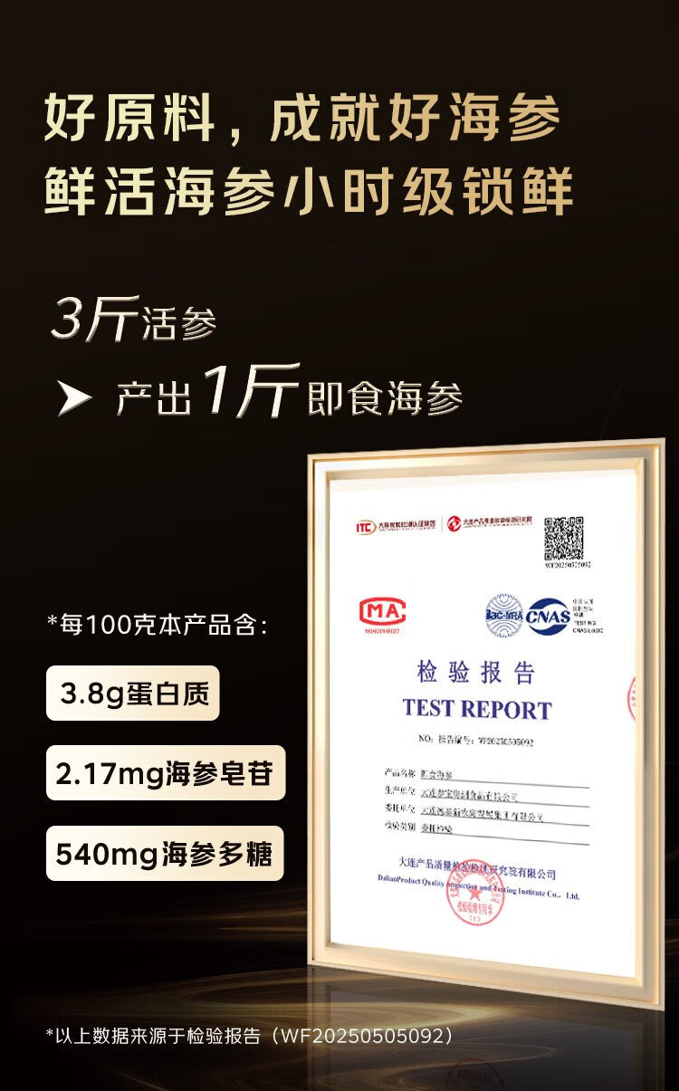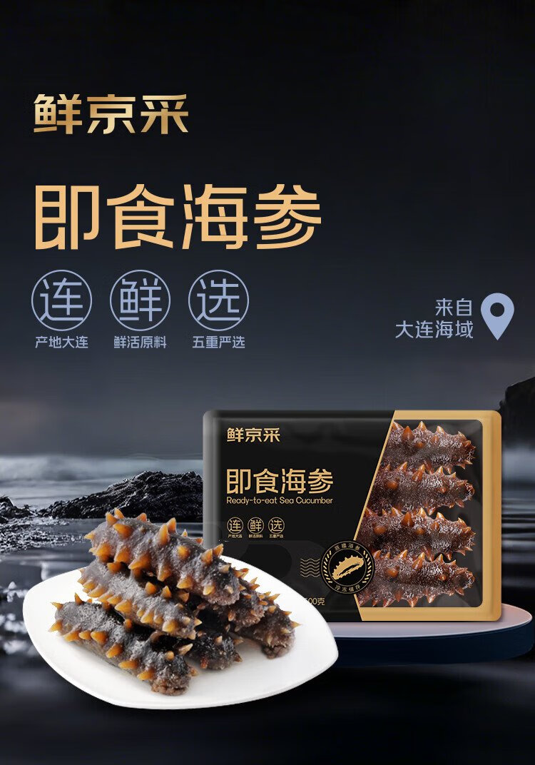 Fresh Jingcai Jingdong fresh food private brand Black Gold Dalian ready-to-eat sea cucumber 1Jin Jin equals 0.5kg 9-12 pieces solid content exceeds 85%