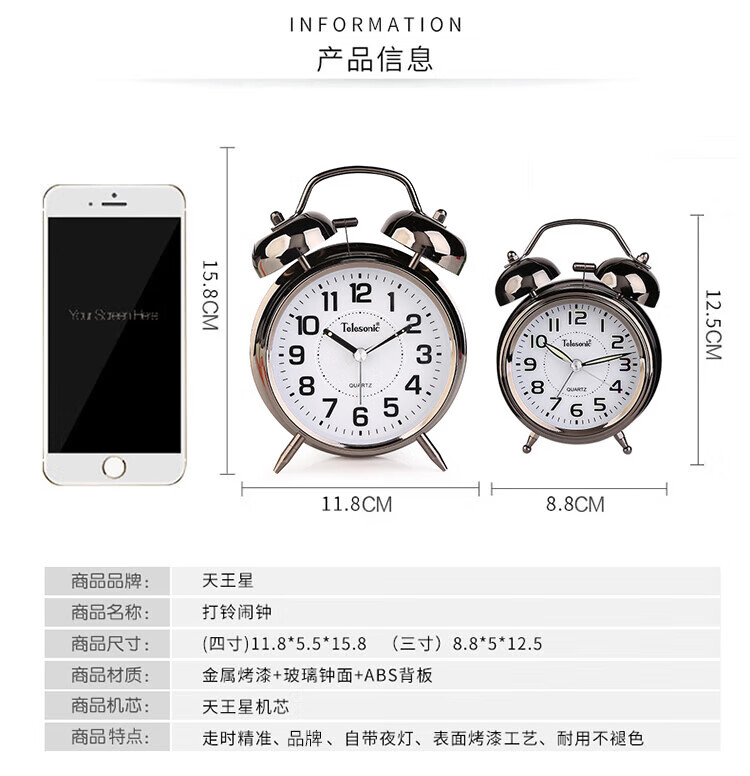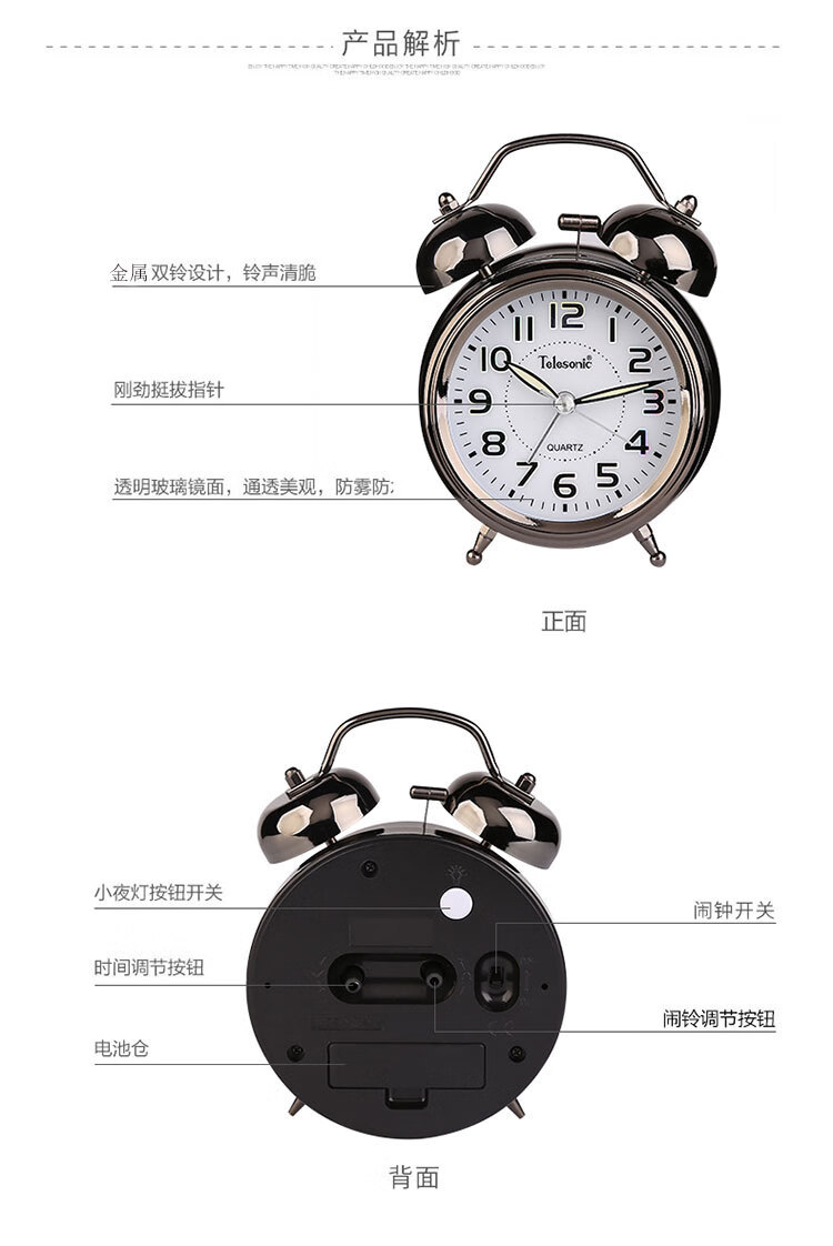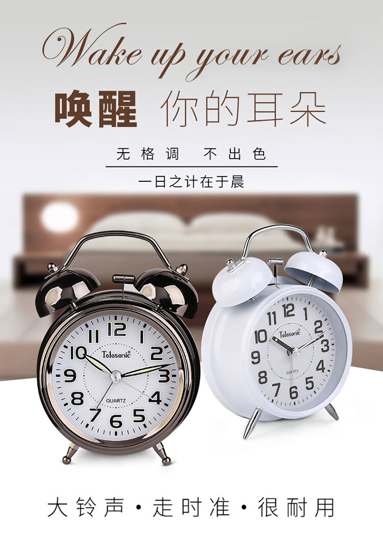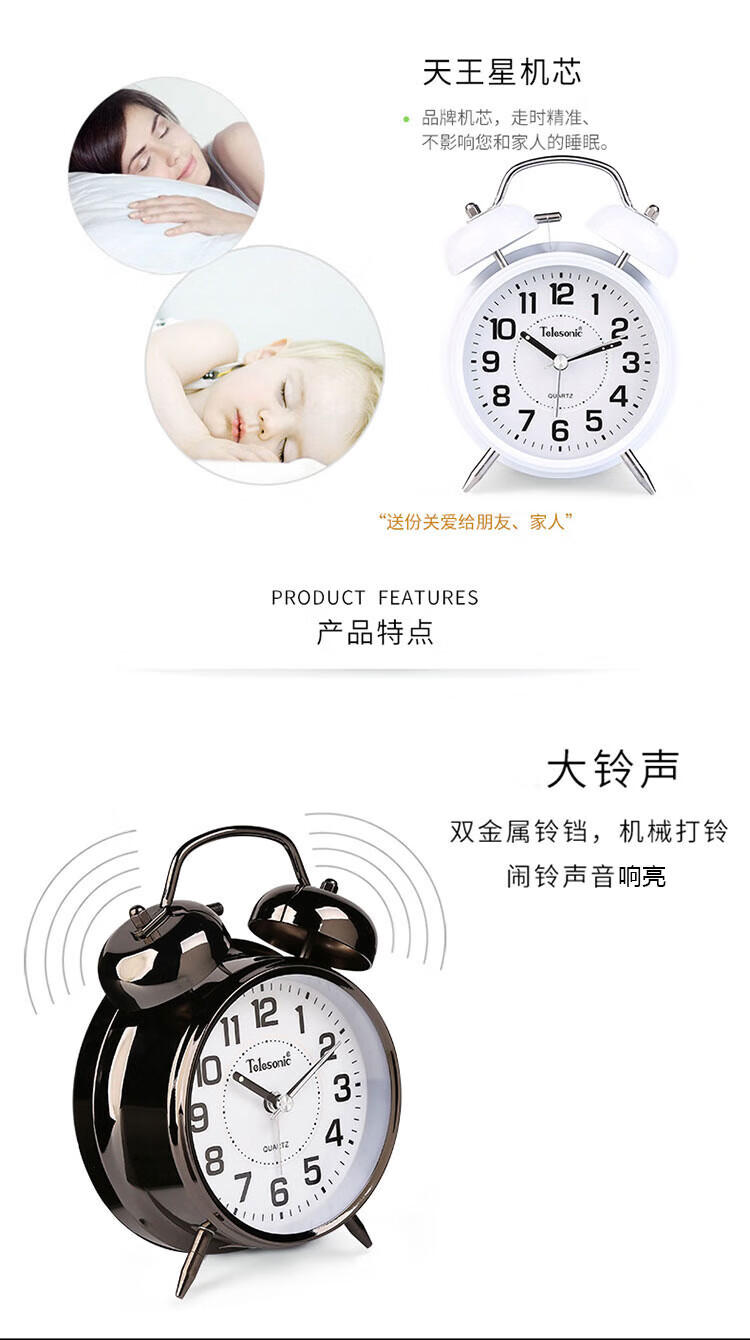 Uranus (Telesonic) alarm clock creative student children's big ringtone alarm clock bedroom bedside simple luminous sweep seconds movement traditional clock school season gift New Year gift