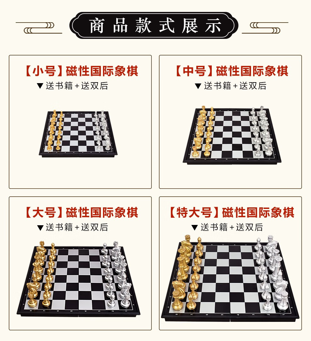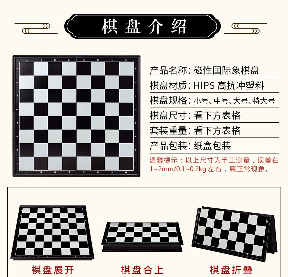 Yusheng chess folding magnetic mini large chess set for beginners, students and children's gift (extra large size) magnetic chess + with double queen