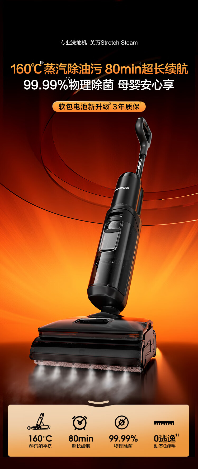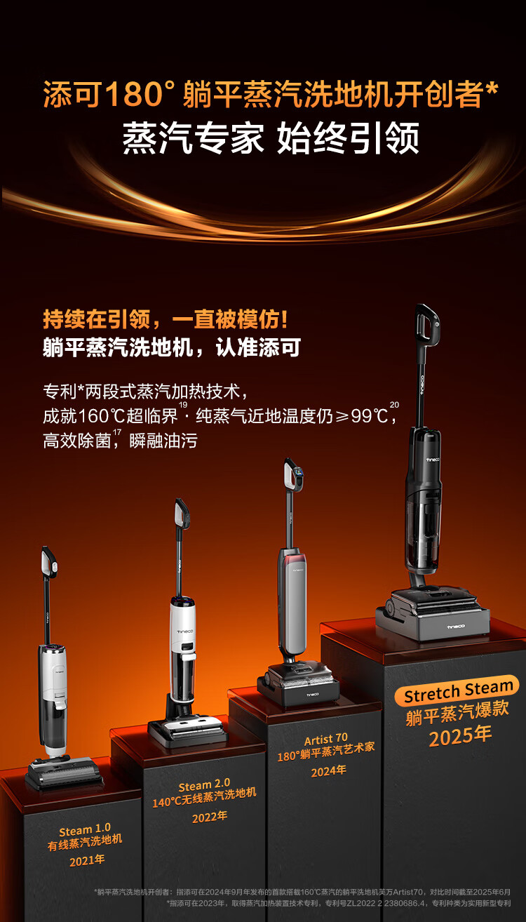 Tenkovan's StretchSteam series sells 1.7 million+ units. Steam flat floor scrubber with zero tangle, suction and mopping, automatic cleaning and mopping robot.
