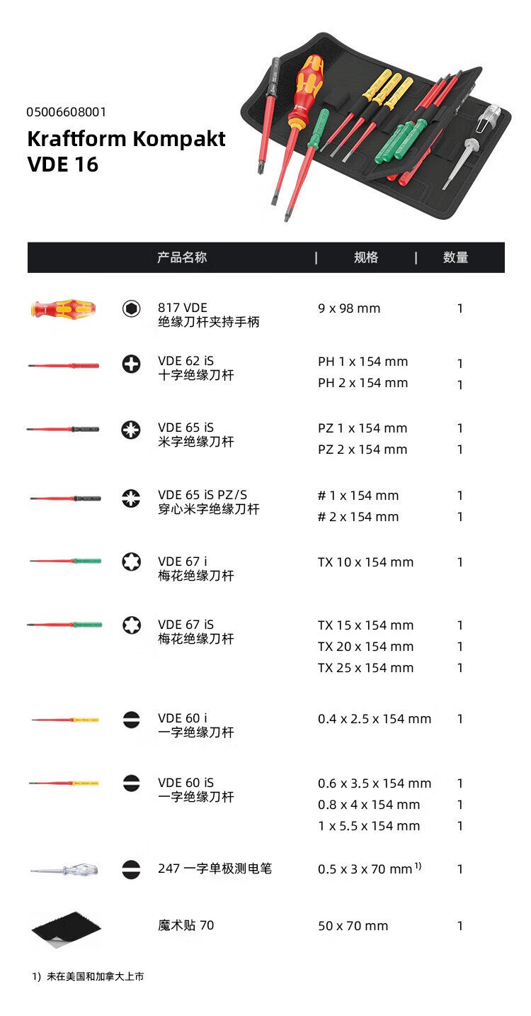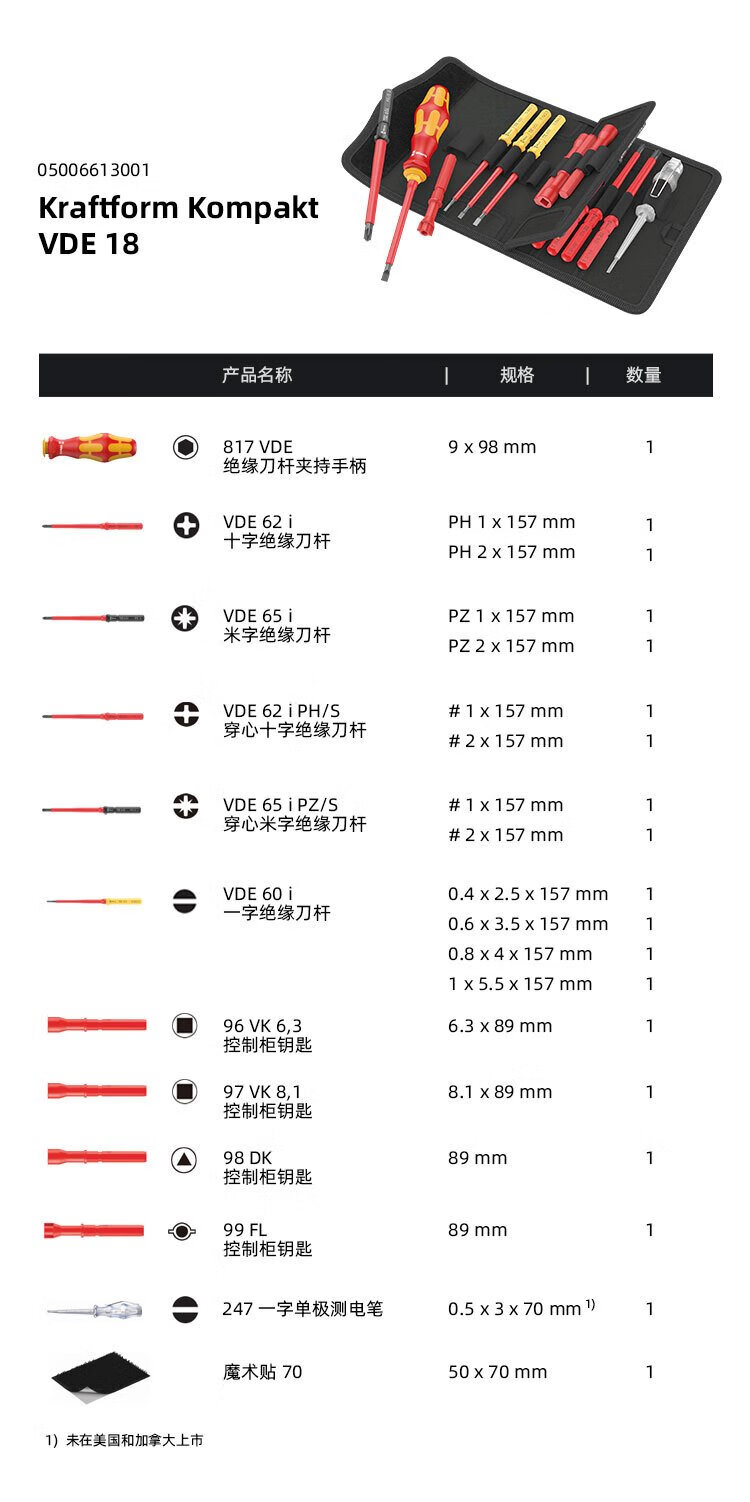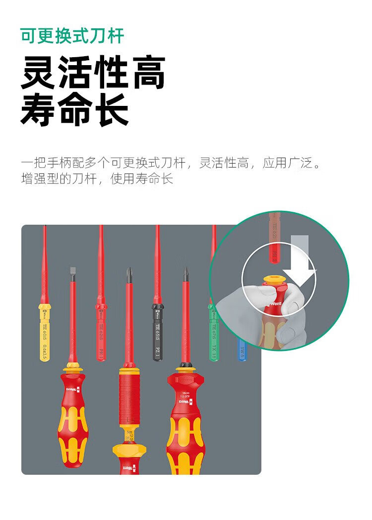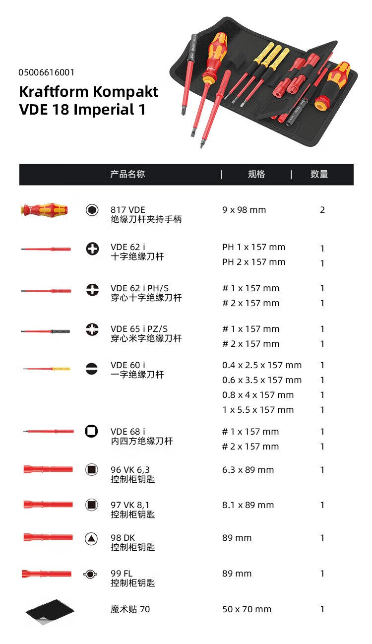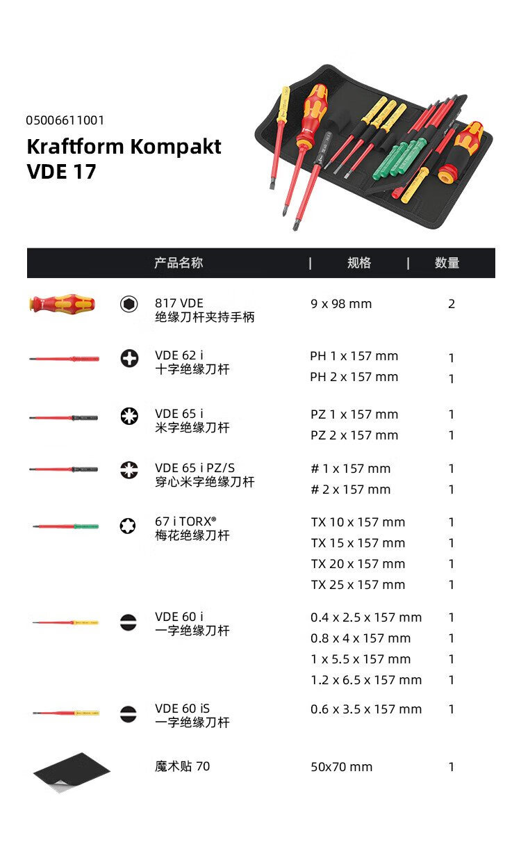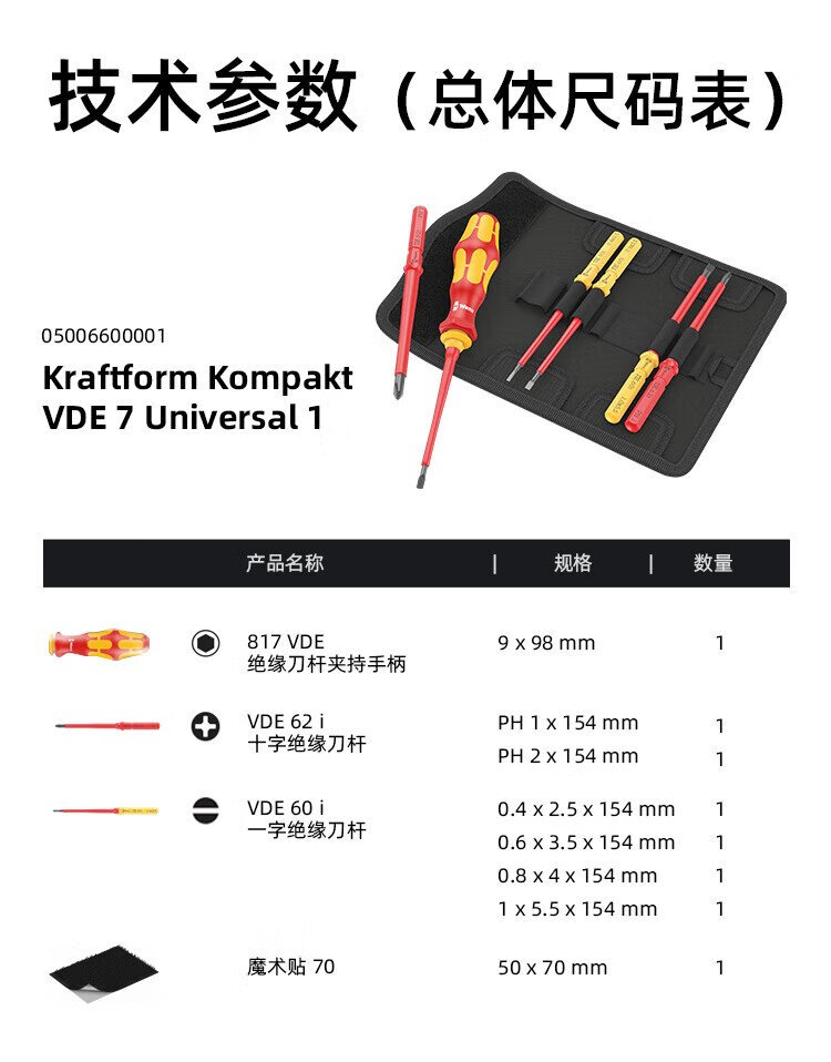 WERA imported insulated screwdriver set electric test pen VDE combination quick-change tool bar batch German professional electrician repair universal type 7-piece set 006600