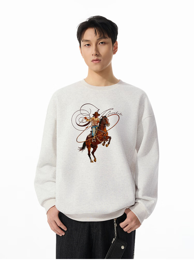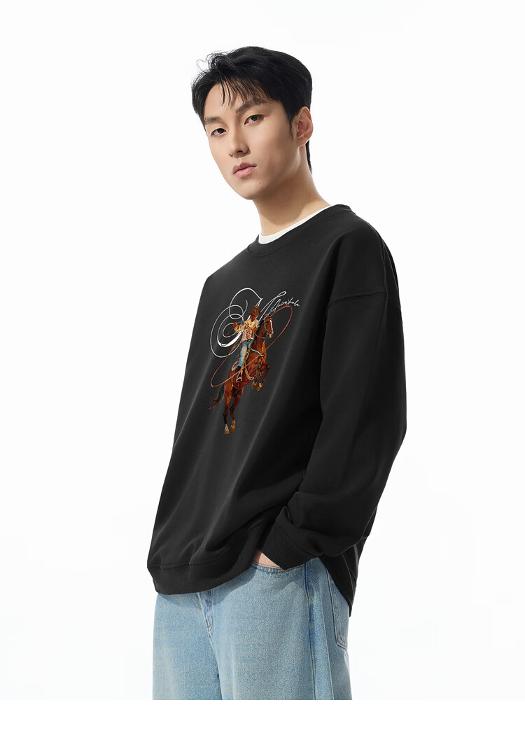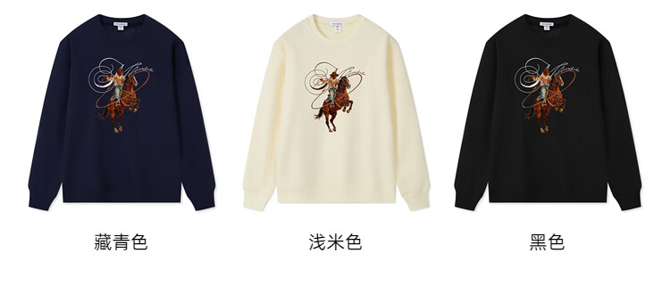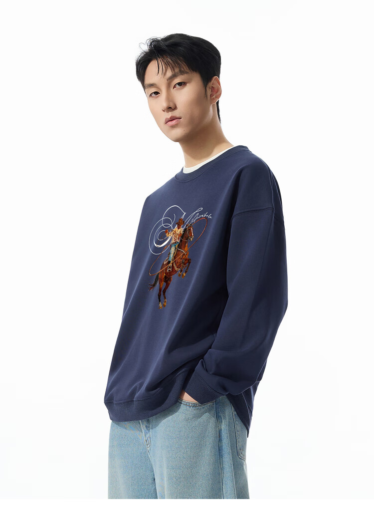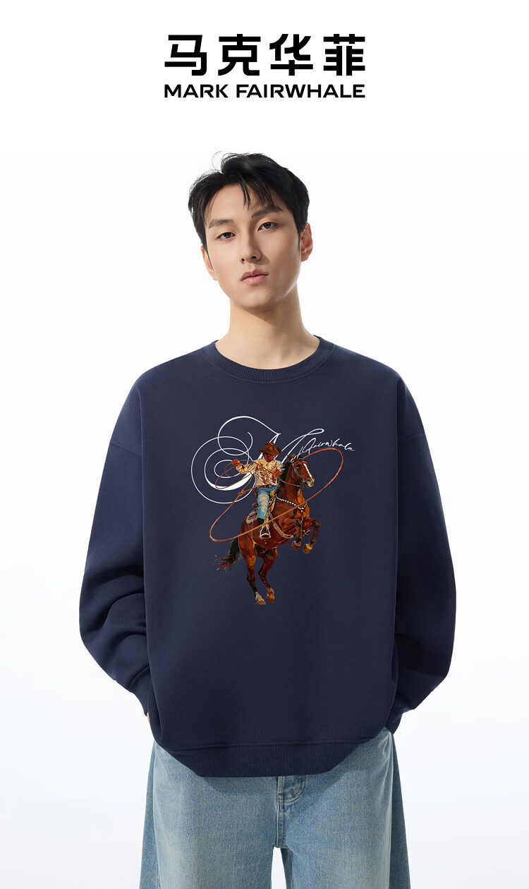 Mark Huafei Year of the Horse Series Men's Sweater Round Neck Velvet War Horse Sweater Men's Underwear Navy Blue M