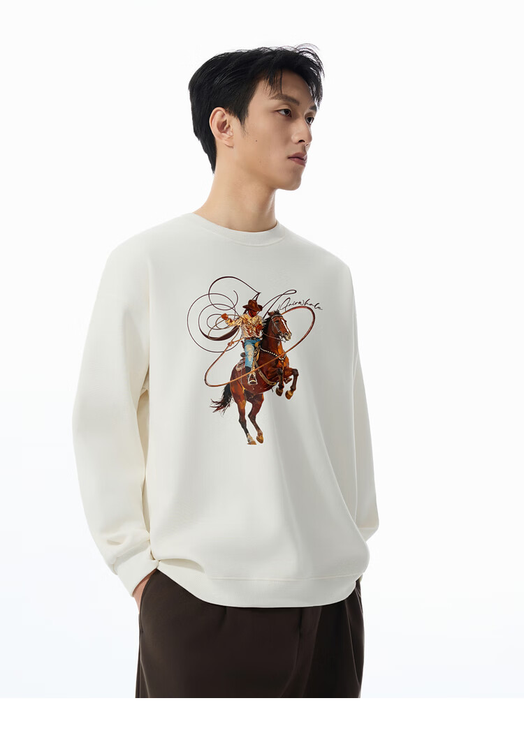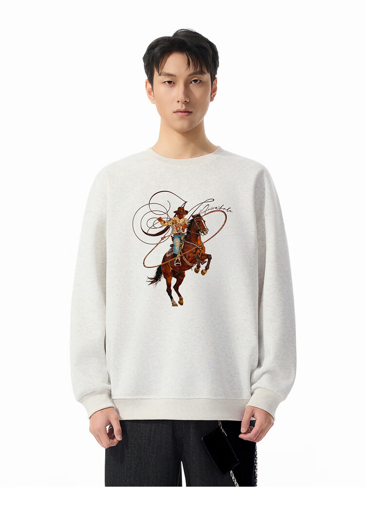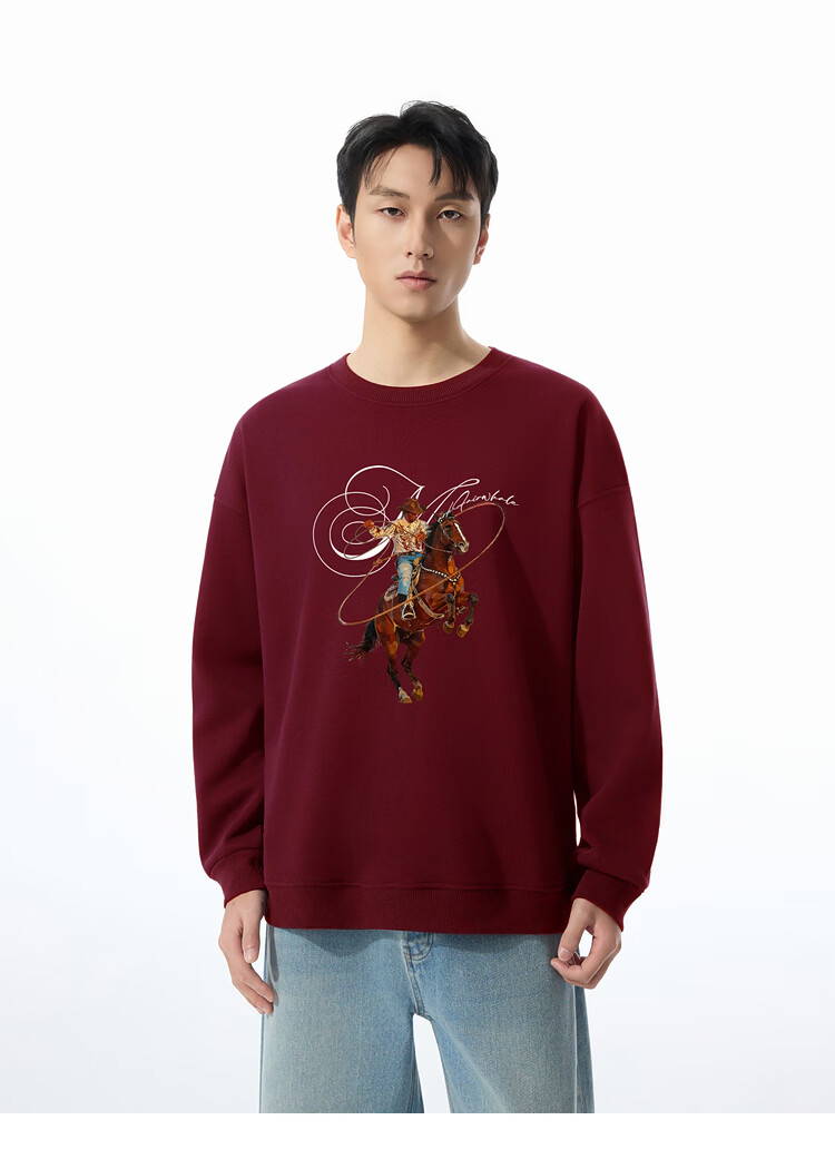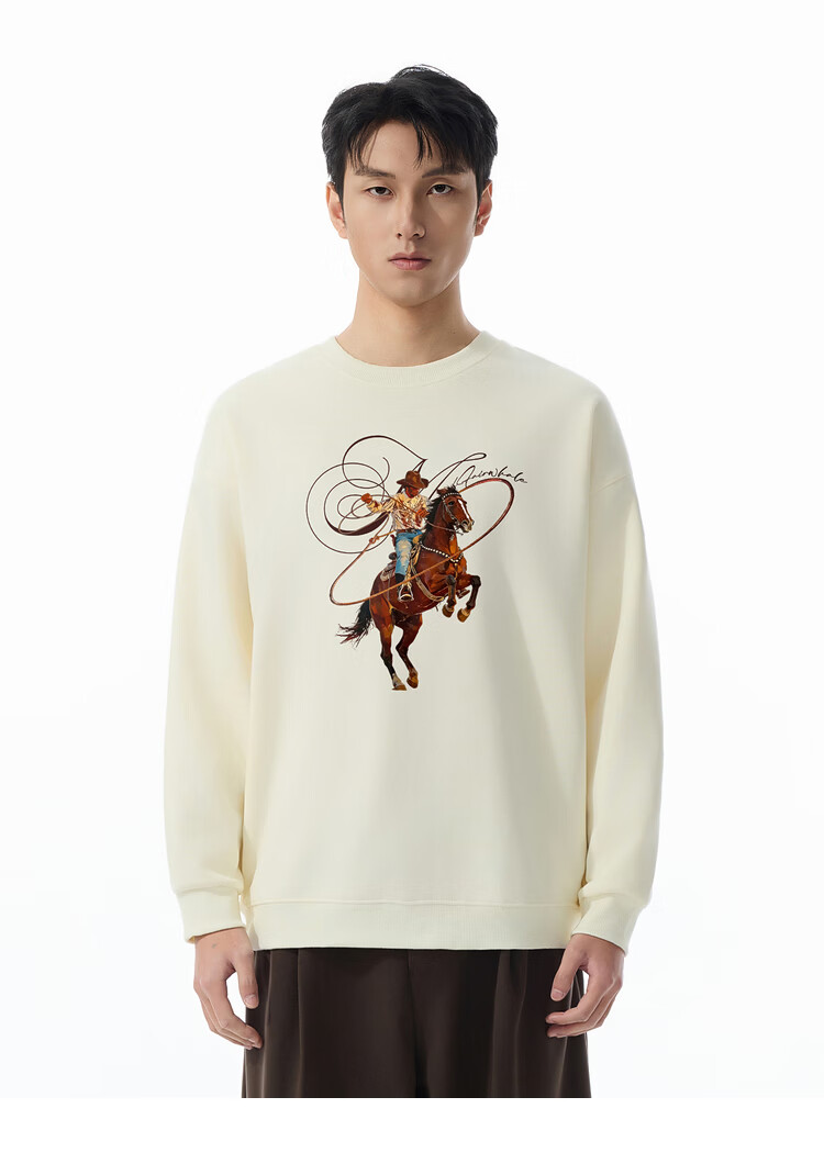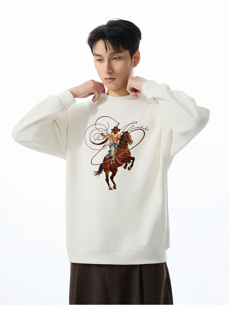 Mark Huafei Year of the Horse Series Men's Sweater Round Neck Velvet War Horse Sweater Men's Underwear Navy Blue M
