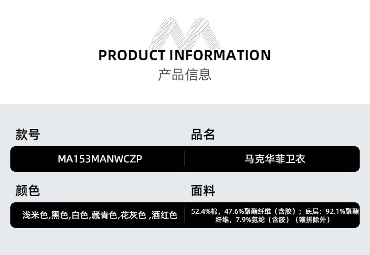 China (cm) 165 / 88-90 170 / 96-98 175 / 108-110 180 / 118-122 185 / 126-130