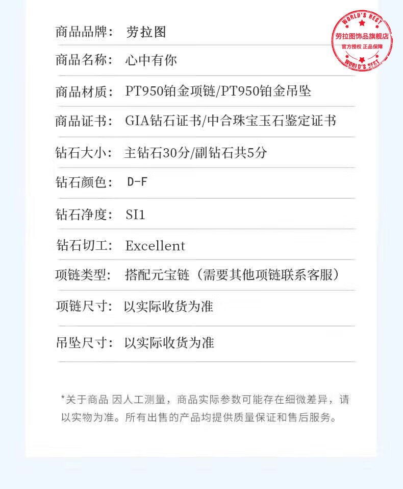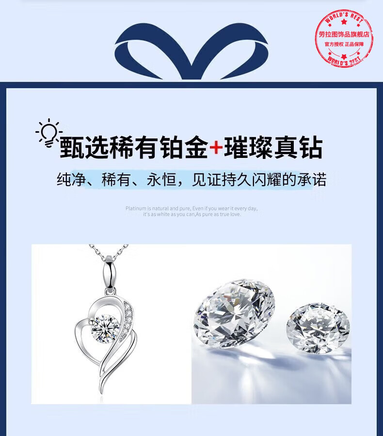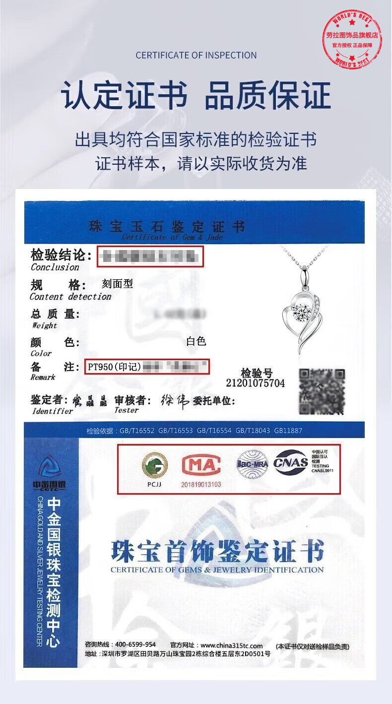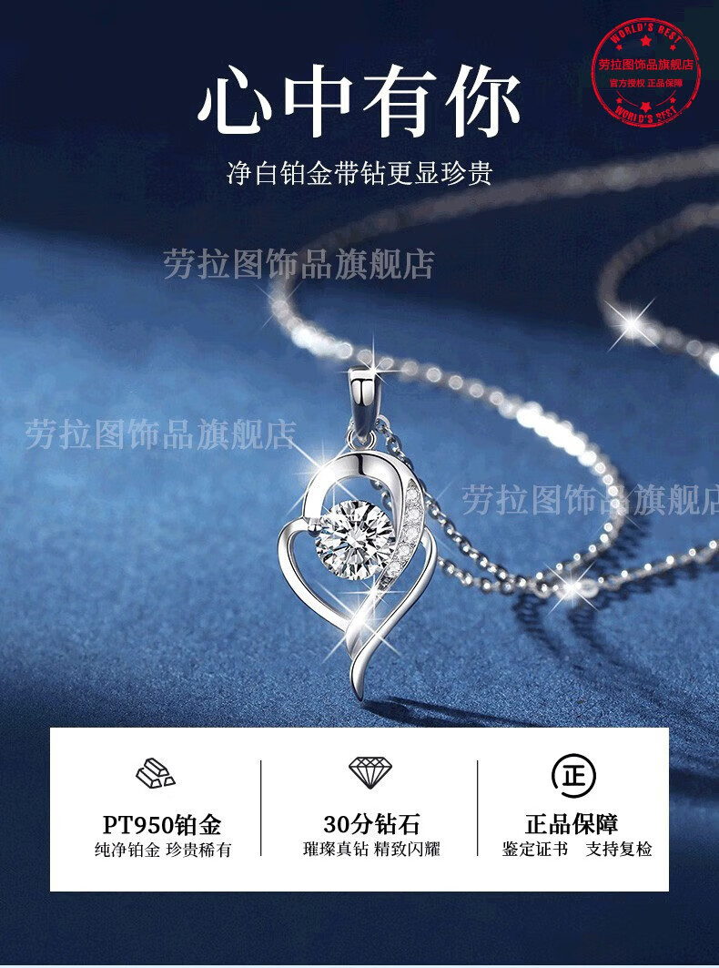 LAOLATU diamond platinum necklace for women PT950 platinum real diamond 2025 new light luxury Chinese Valentine's Day gift for girlfriend and wife, whole body platinum, main diamond 30 points, secondary diamonds total 5 points