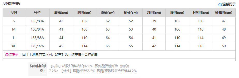 China (cm) 160-165/84-86 165-170 / 88-90 167-172 / 92-96 168-173 / 98-102 170-176 / 106-110