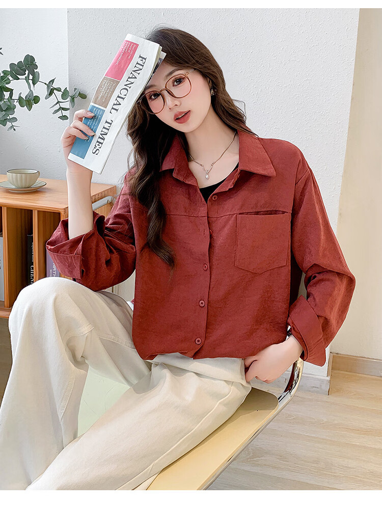 Ives (ITISF4) Paris Institute fake two-piece festive temperament shirt for women to wear in spring, unique and beautiful top red L
