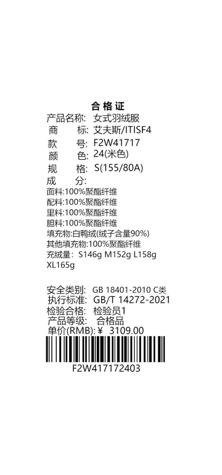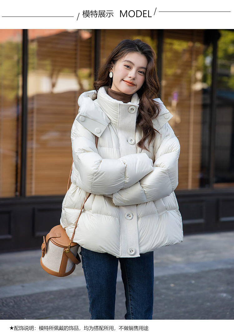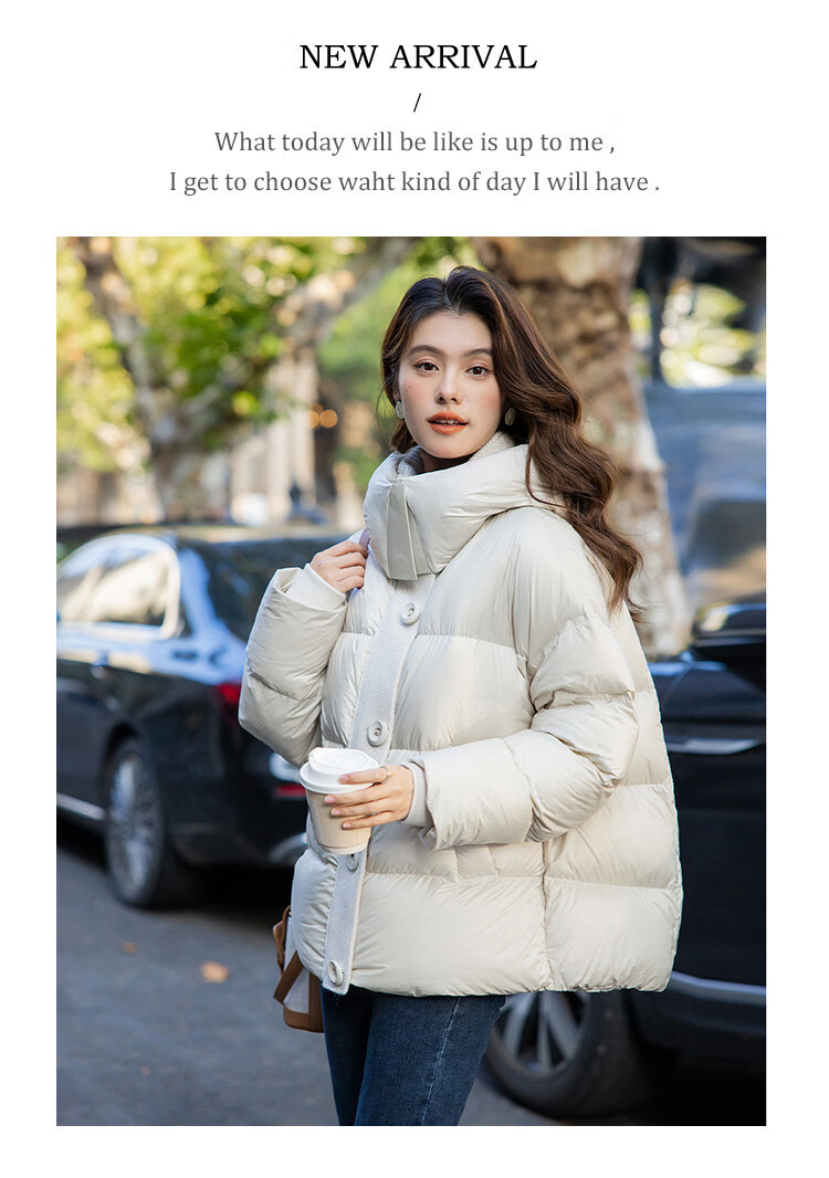 Ives (ITISF4) warm short down jacket winter high-end fashion warm thickened 90 white duck down jacket black L