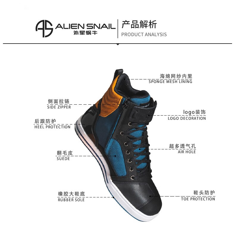 Alien Snail Motorcycle Riding Shoes for Men All Seasons Non-Slip Breathable Commuting Motorcyclist Boots Motorcycle Casual High Top Shoes for Women Black Brown 42