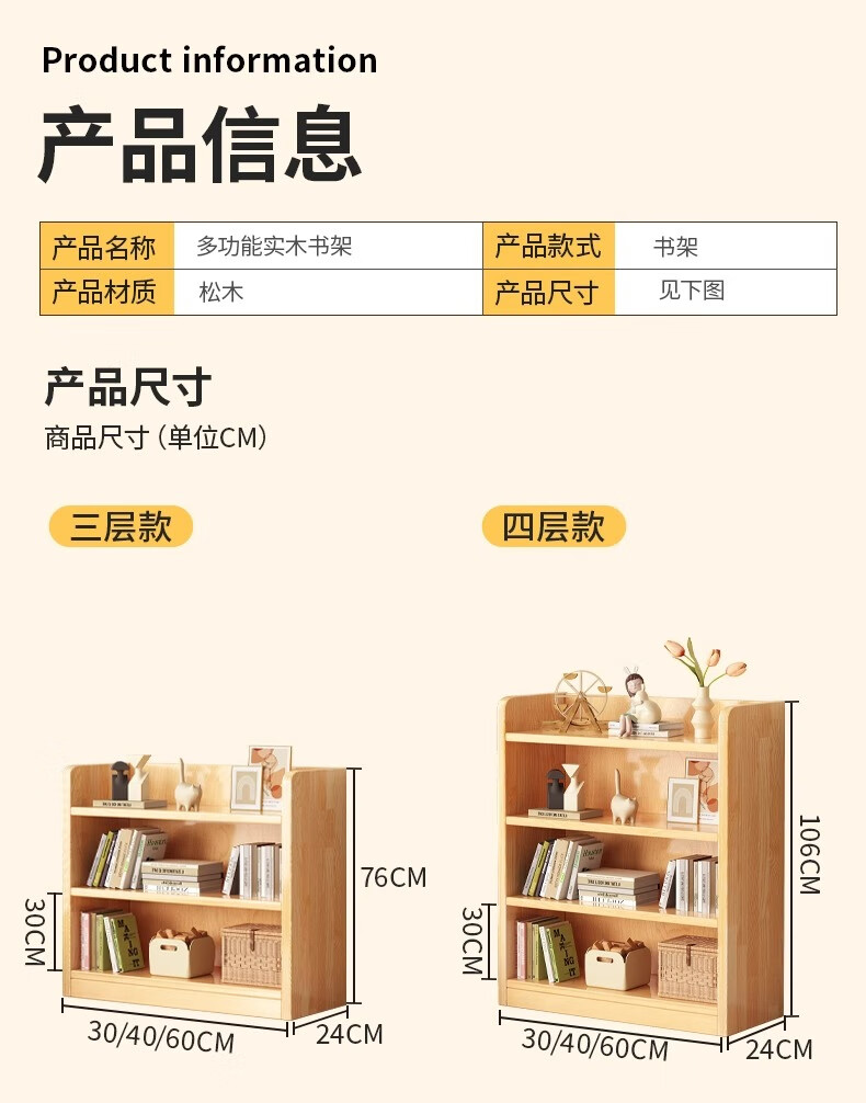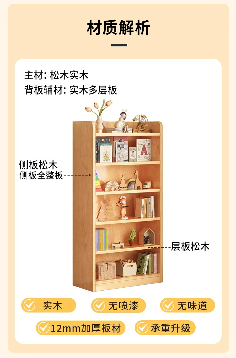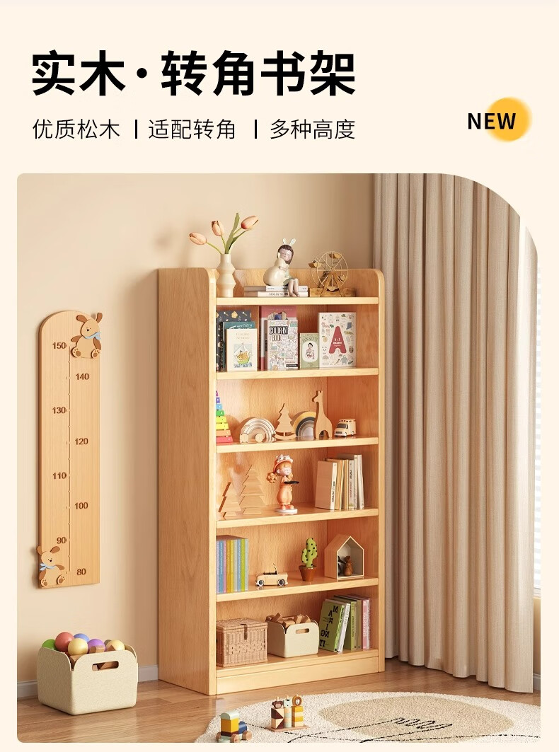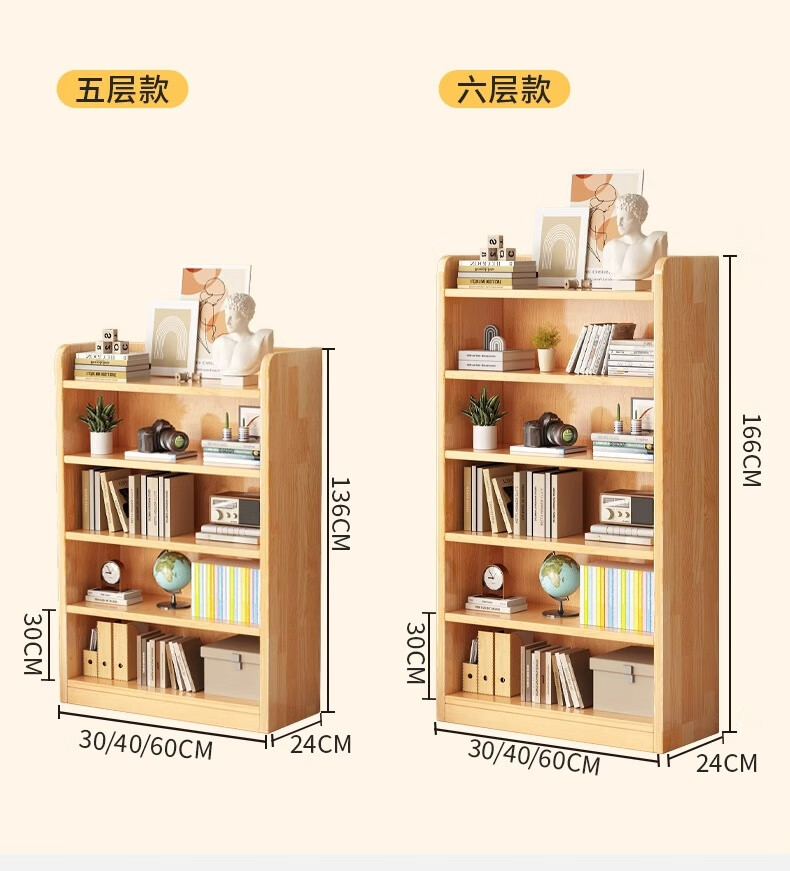 Millennium Washington solid wood bookshelf floor-standing vertical bookcase floor-to-ceiling integrated wall storage rack living room bay window bookcase storage cabinet six layers