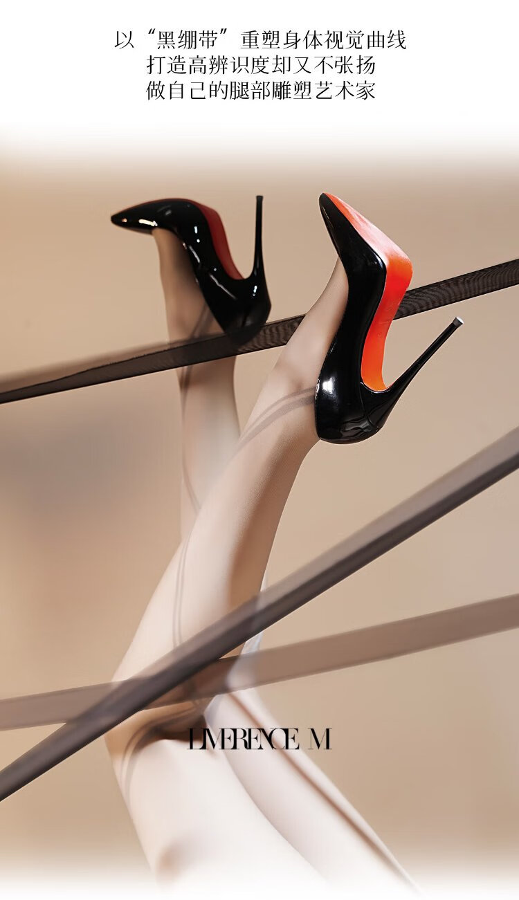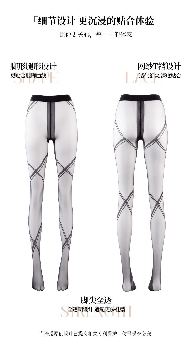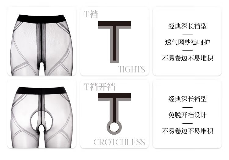Lai Mi Runsi black bandage ultra-thin T-crotch stockings sexy black silky women's stockings light black 1 pair L-T crotch open crotch