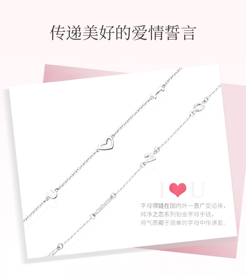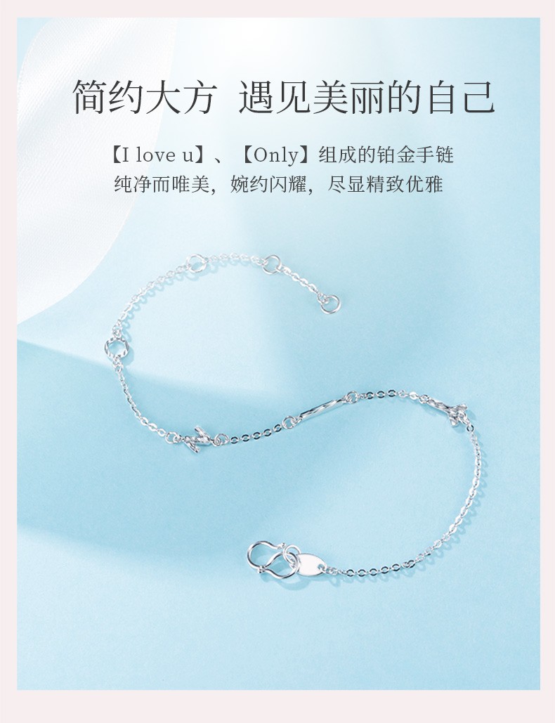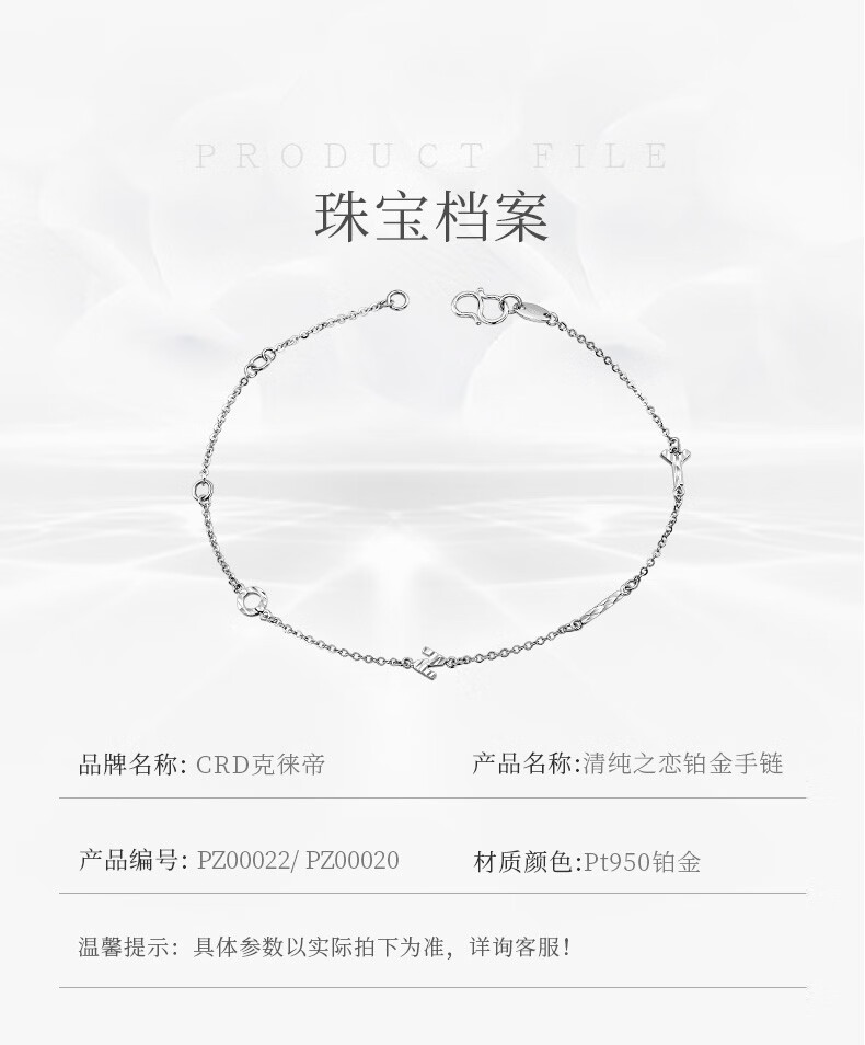 CRD Ke Laidi Spot Sparkling Platinum Bracelet Women's PT950 Platinum Holiday Birthday Gift for Girlfriend 2.25g-PN00020