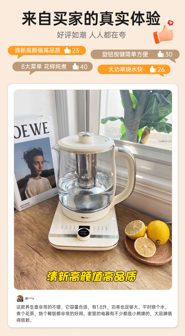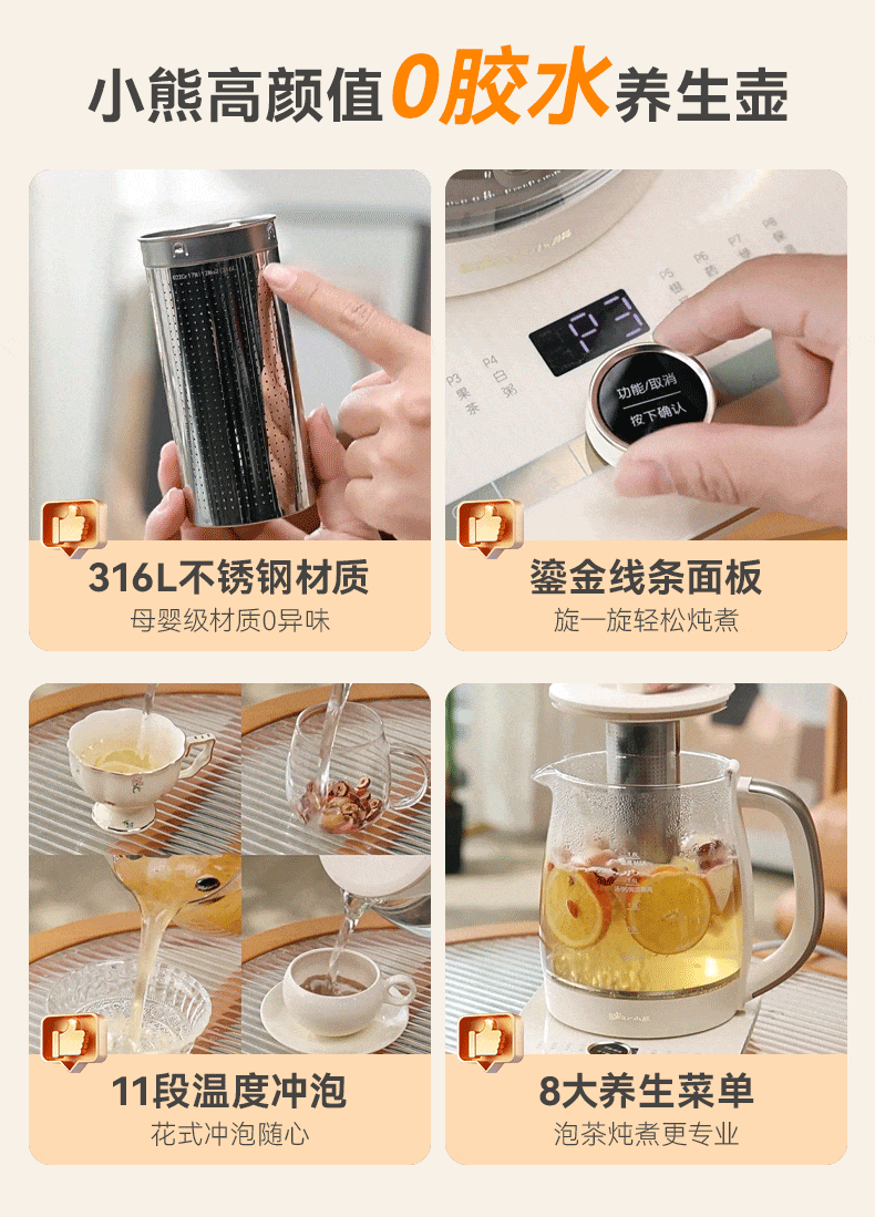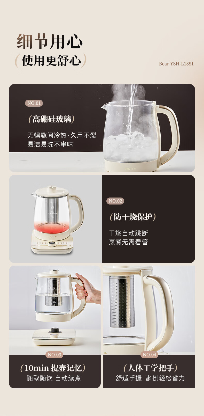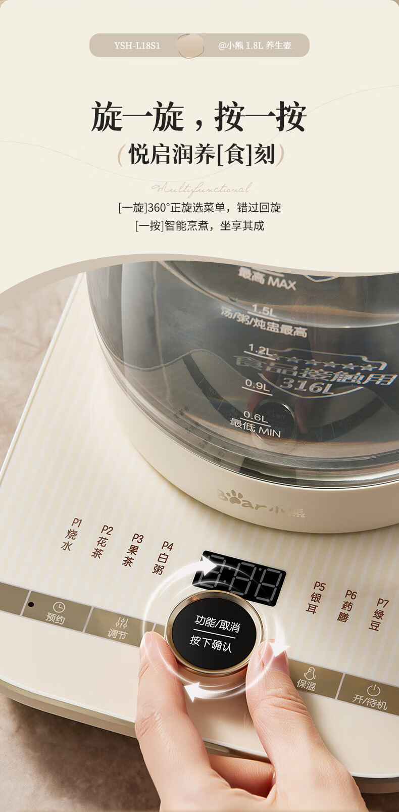 Bear Health Pot Tea Maker Stew All-in-One Tea Pot Kettle 1.8L Large Capacity Constant Temperature Kettle Flower Teapot Office Home 316L Hot Water Kettle YSH-L18S1
