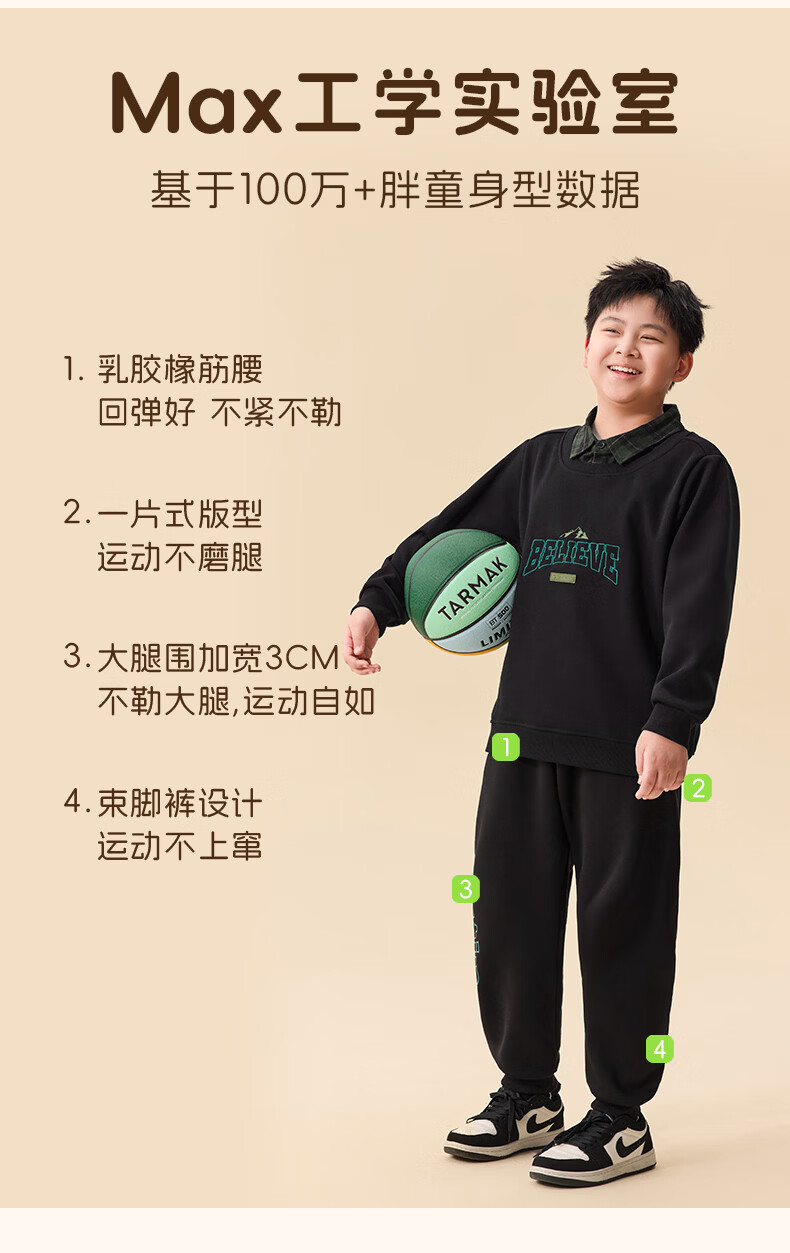 Yi Times Zero Sensitive Sun Fleece Pants Yi Times Fat Boys' Velvet Pants Big Children's Polar Fleece Sports Pants Thickened Sweatpants
