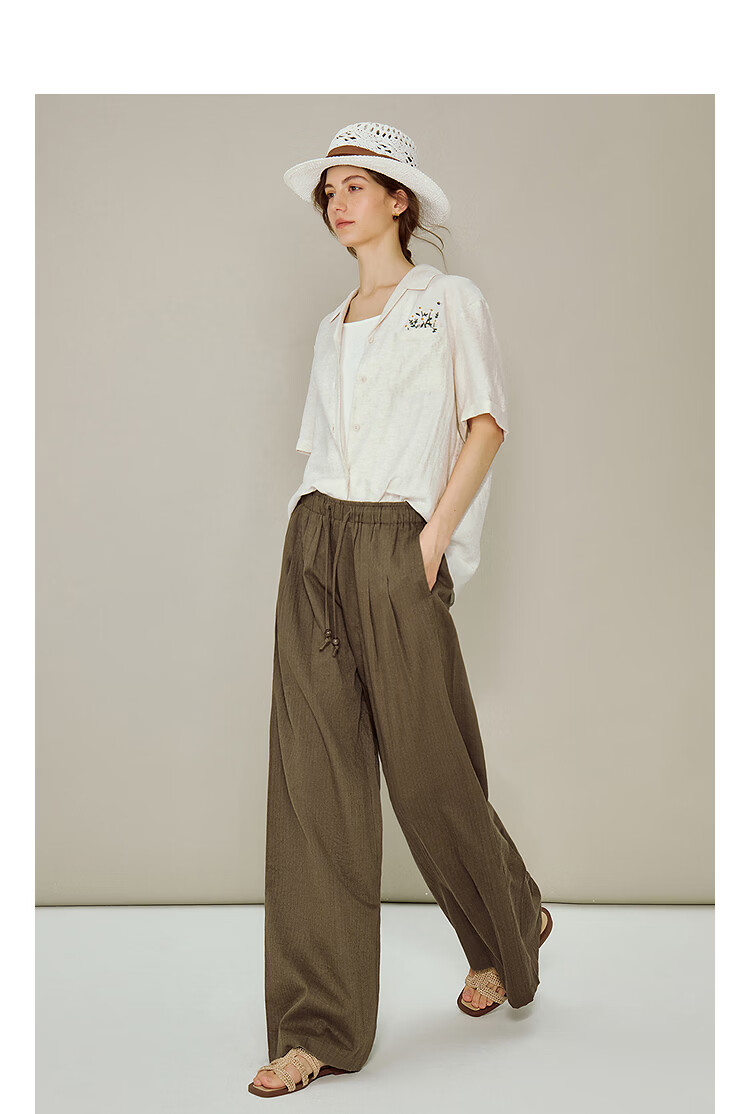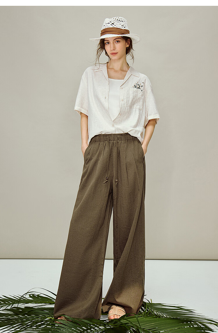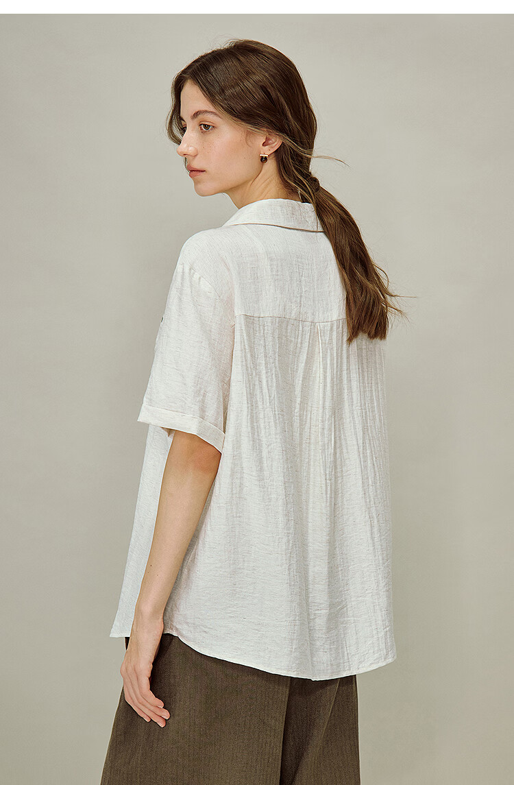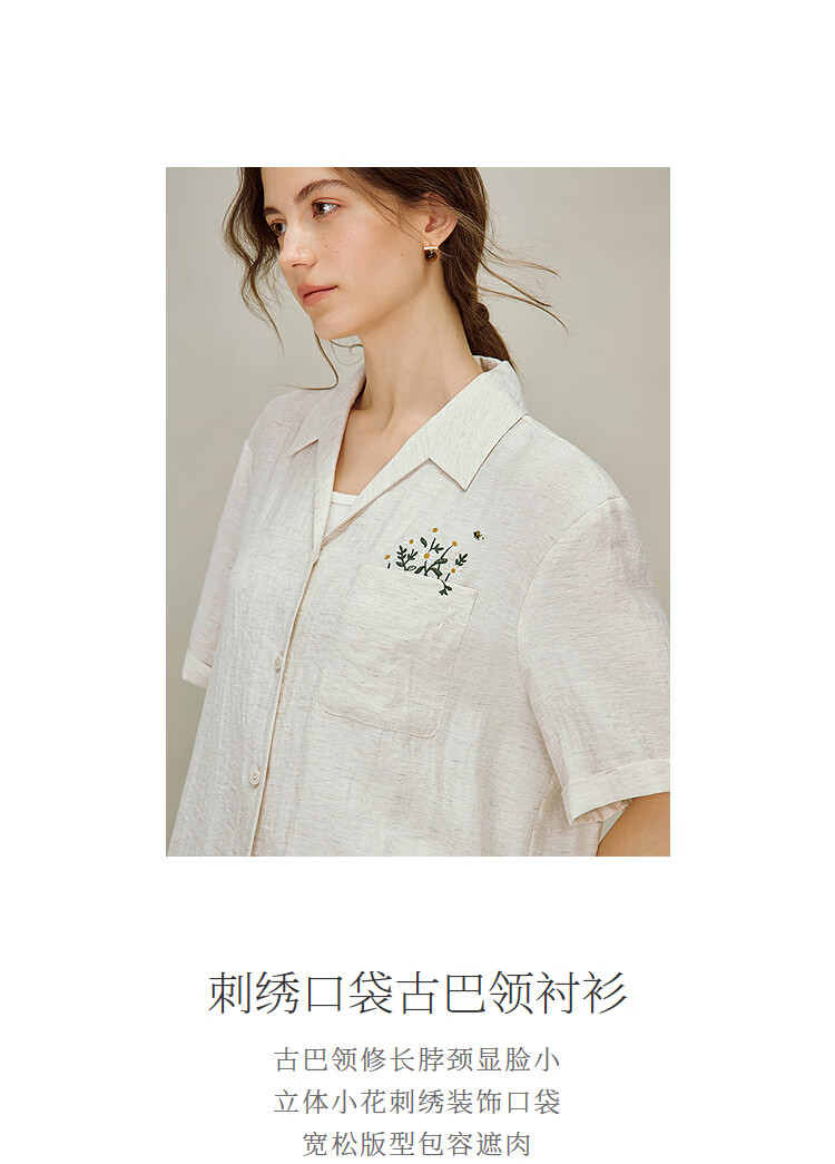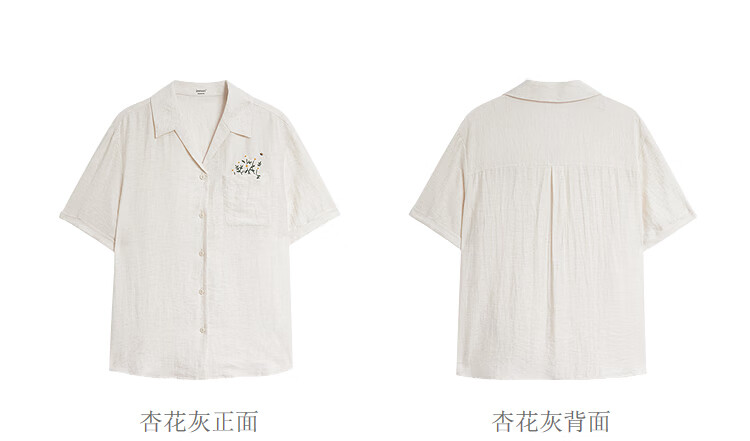 INMAN Linen Embroidered Cuban Collar Shirt 2026 Spring Women's New Loose Short-Sleeved Top Apricot Gray M