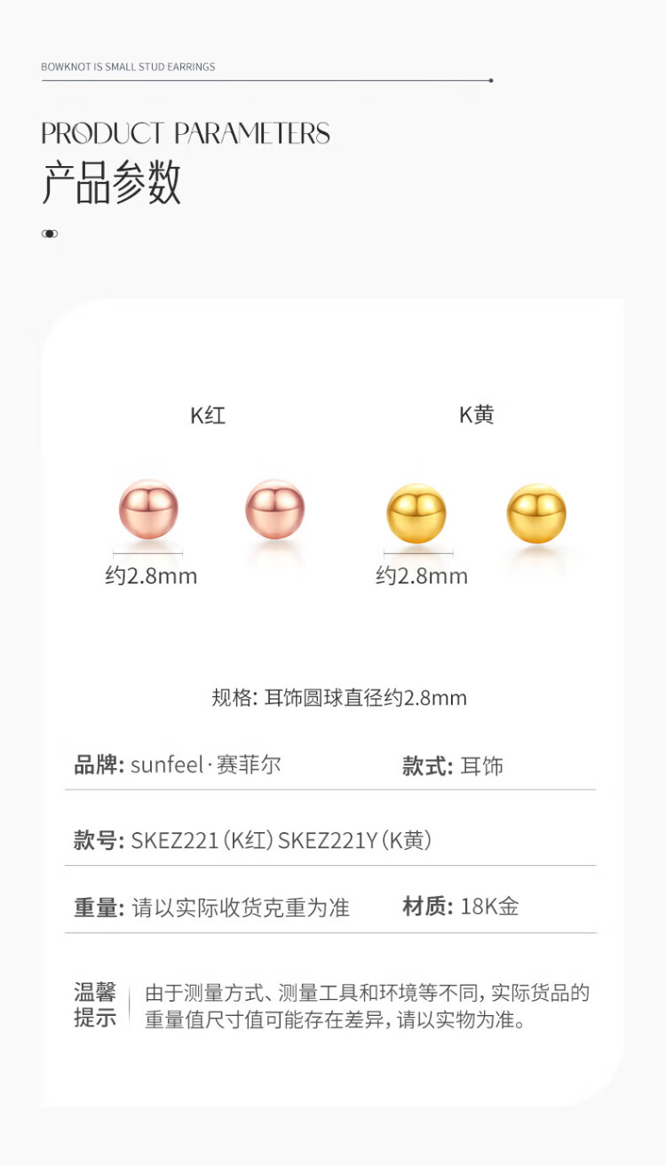 Safir 18K gold earrings for women, small planet gold, simple and fashionable round bead earrings as gifts, a pair of k yellow