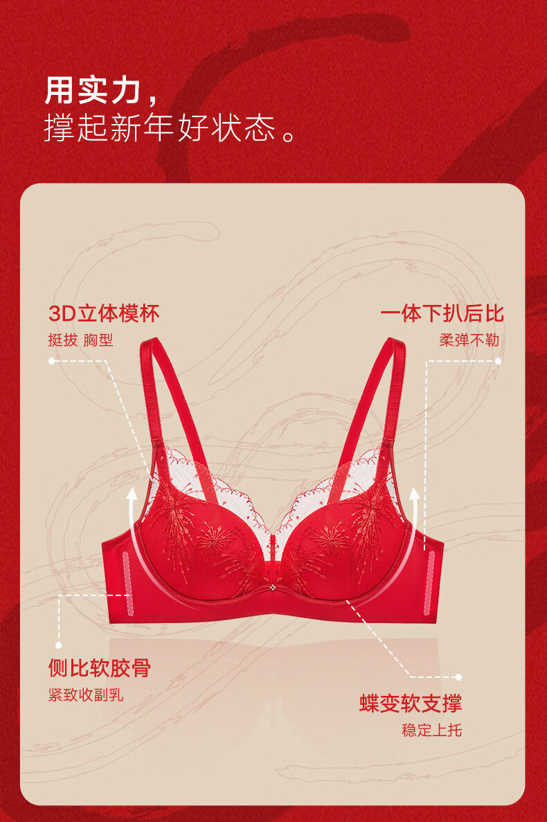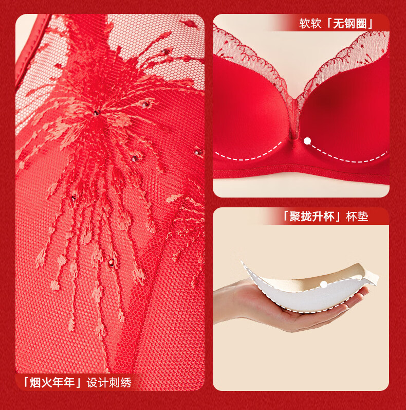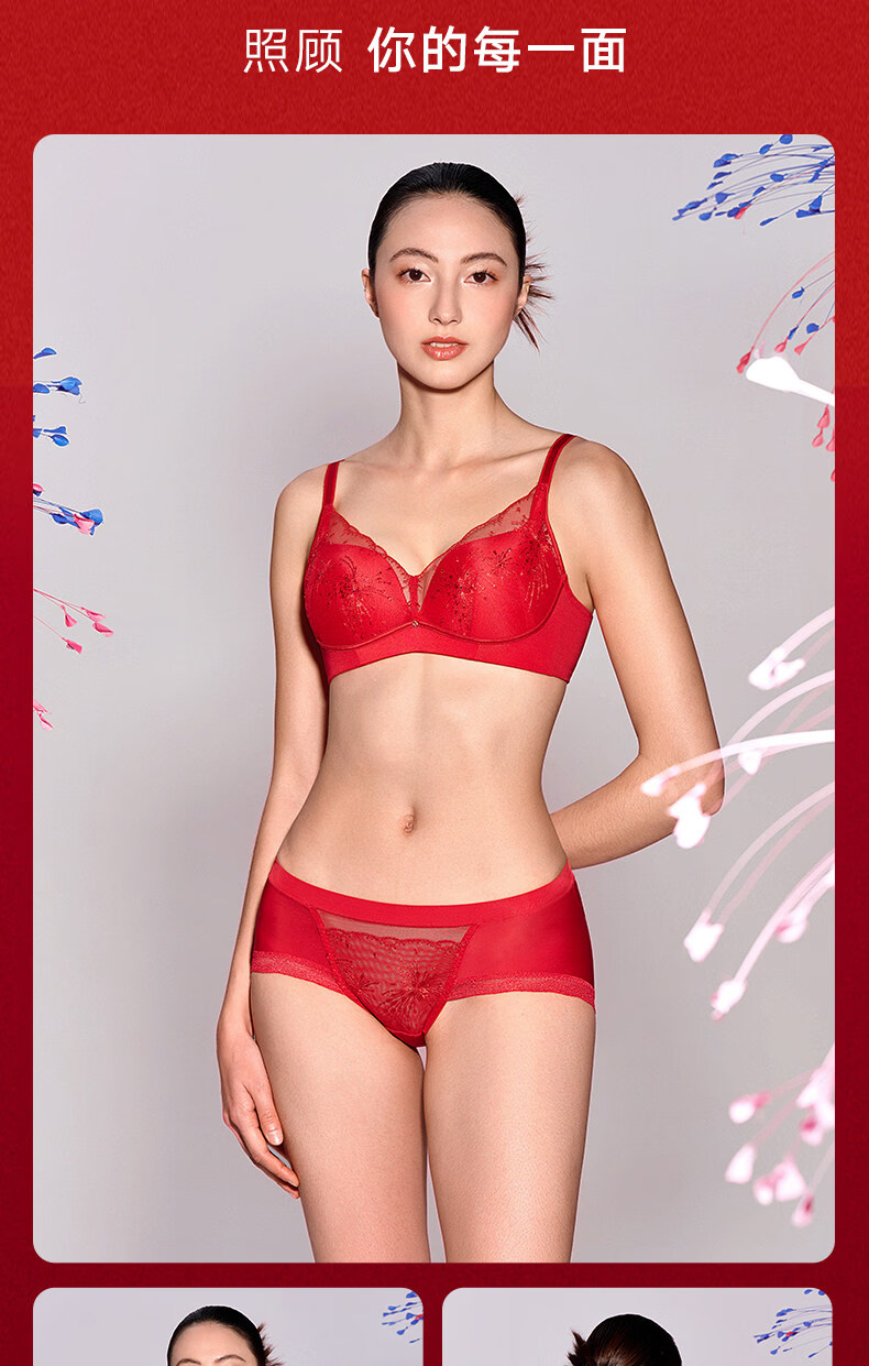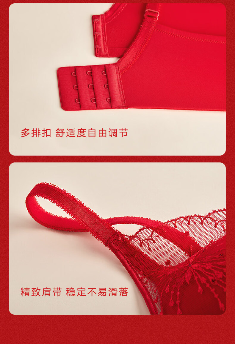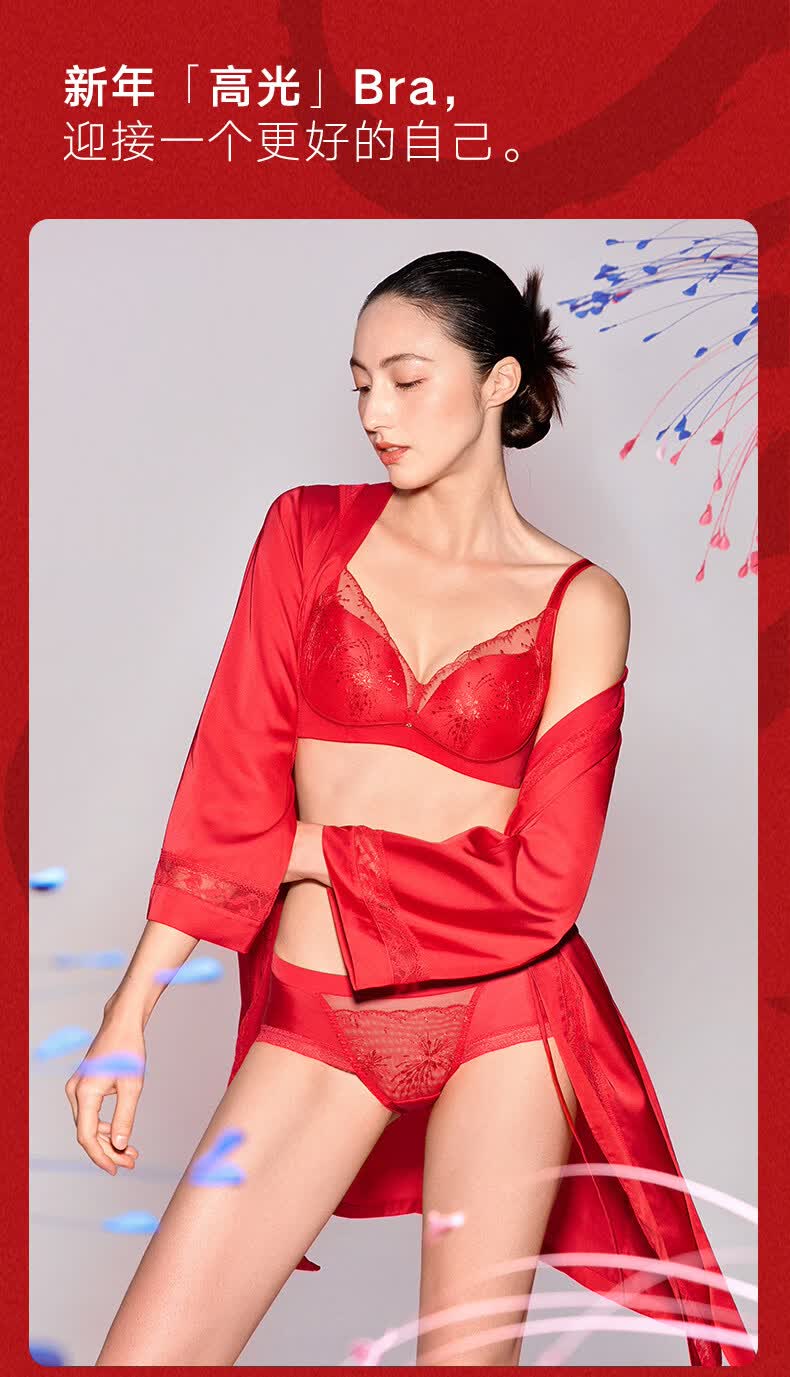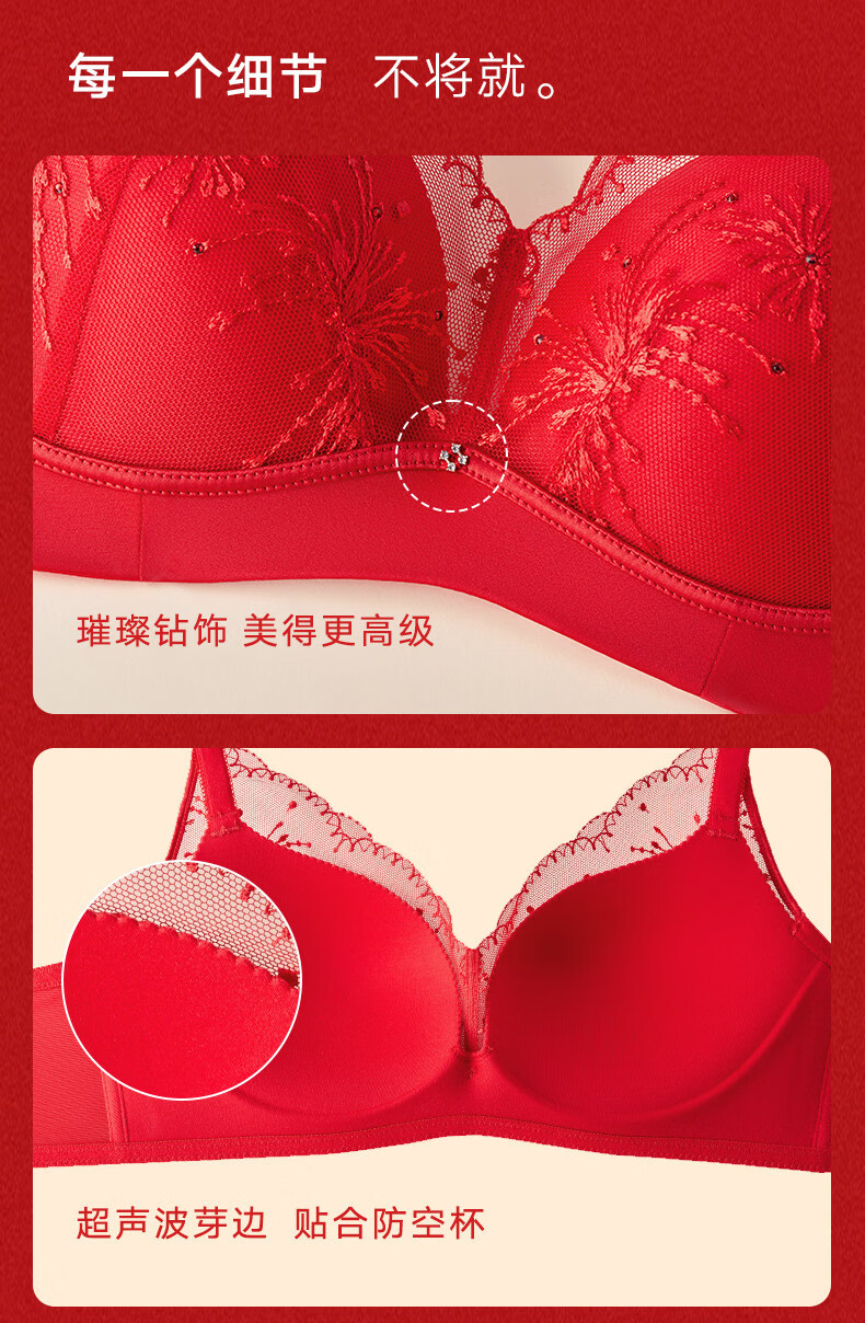 Manifen sexy lace bra New Year red comfortable wire-free push-up underwear women's wedding zodiac year bra
