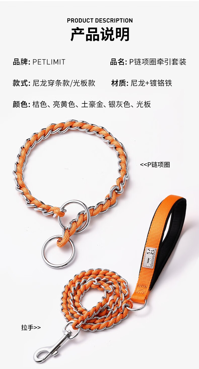 Petlimit dog collar collar snake chain set P chain P-shaped rope medium pet dog training dog walking leash dog walking stainless steel orange suit L-large (recommended 20Jin Jin equal to 0.5 kg or more)