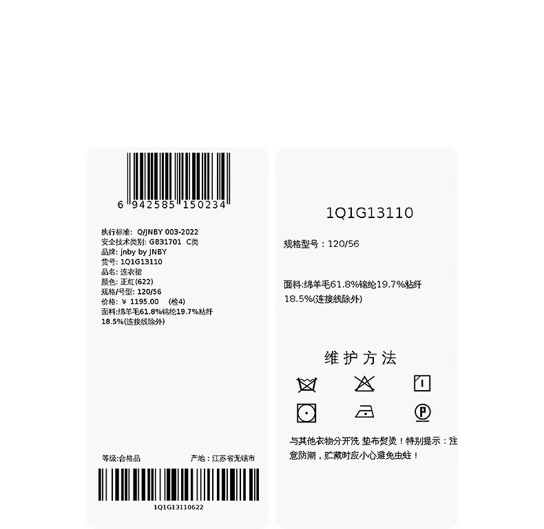 Jnby by JNBY New Jiangnan Buyi Children's Dress 26 Spring Girls 1Q1G13110 071/Grey 150cm