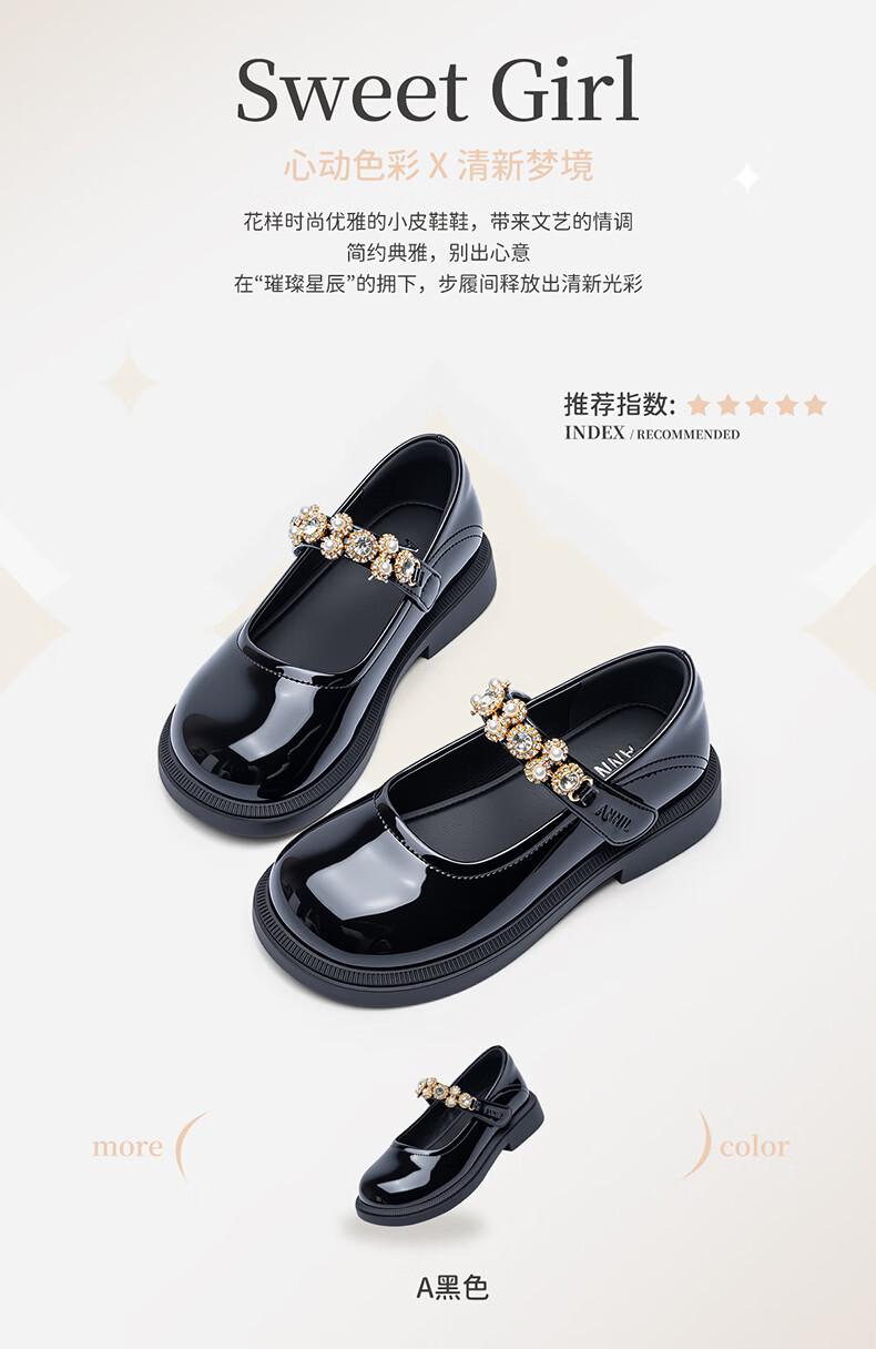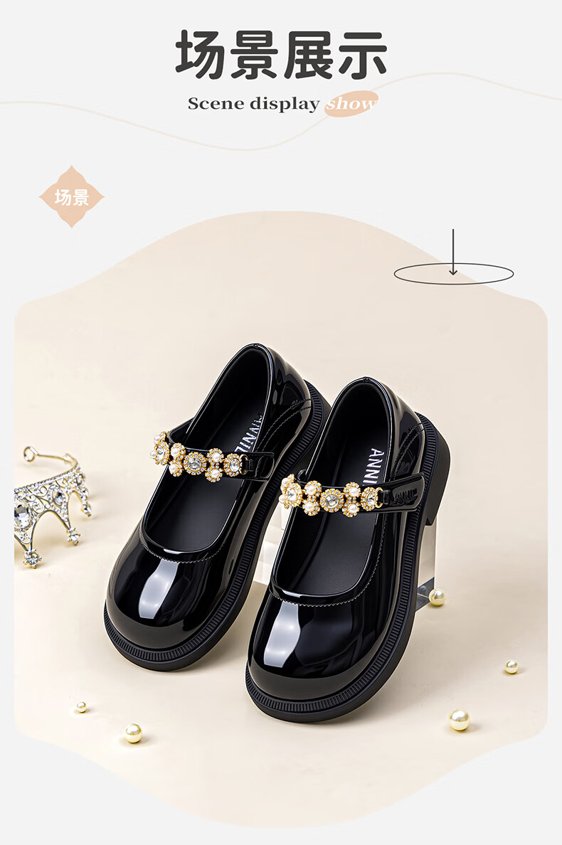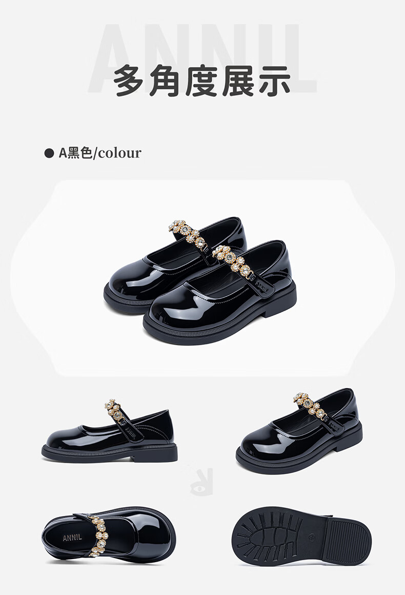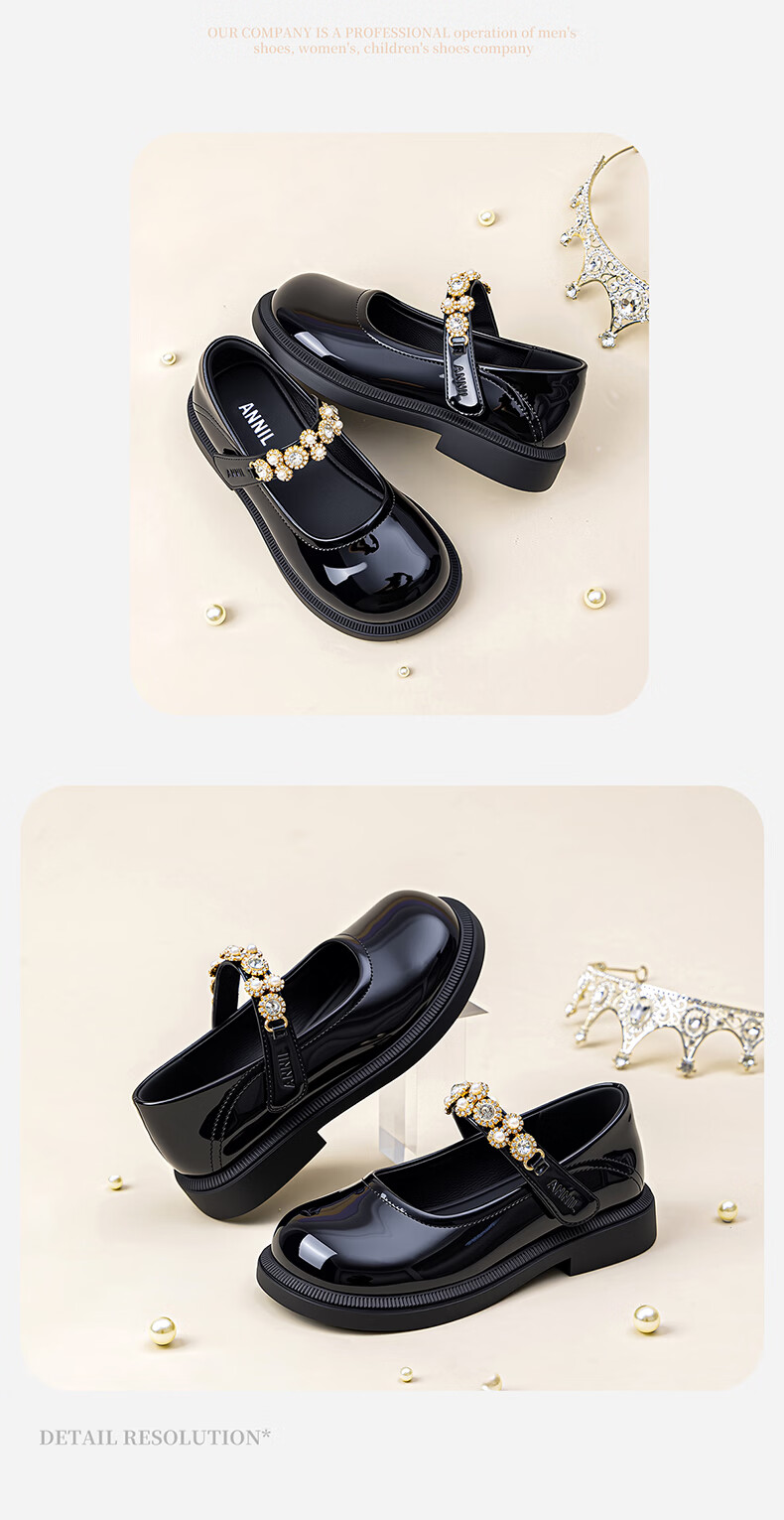 ANNIL Girls Princess Shoes Black Small Leather Shoes 2026 New Spring Children's Shoes Lightweight Mary Jane Shoes Black 29