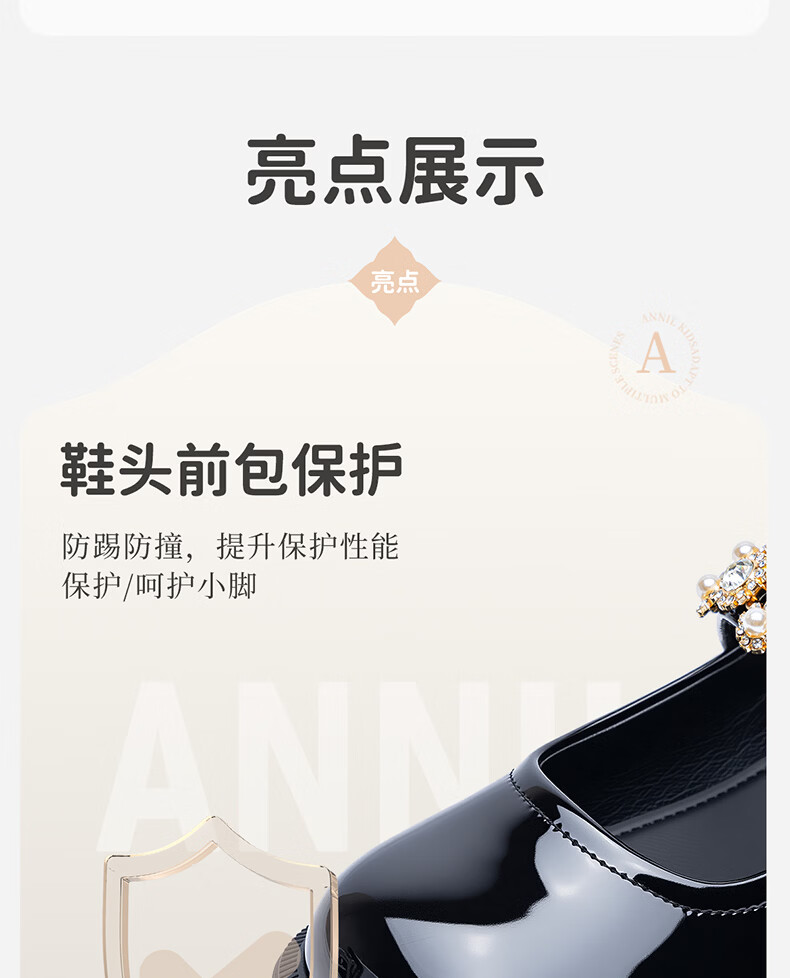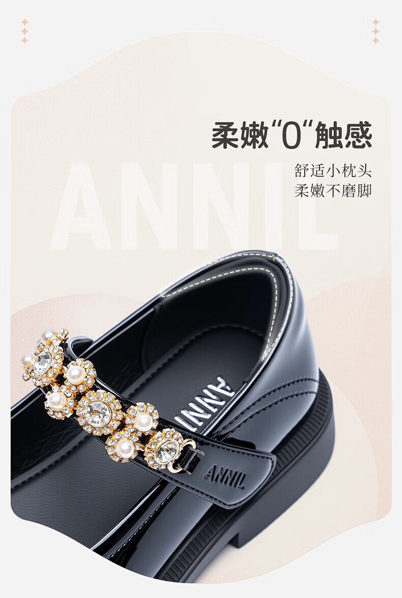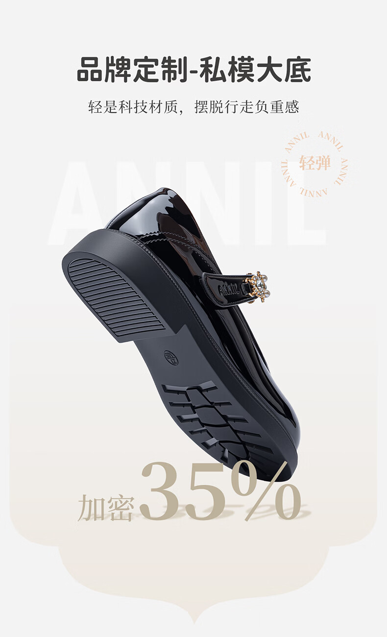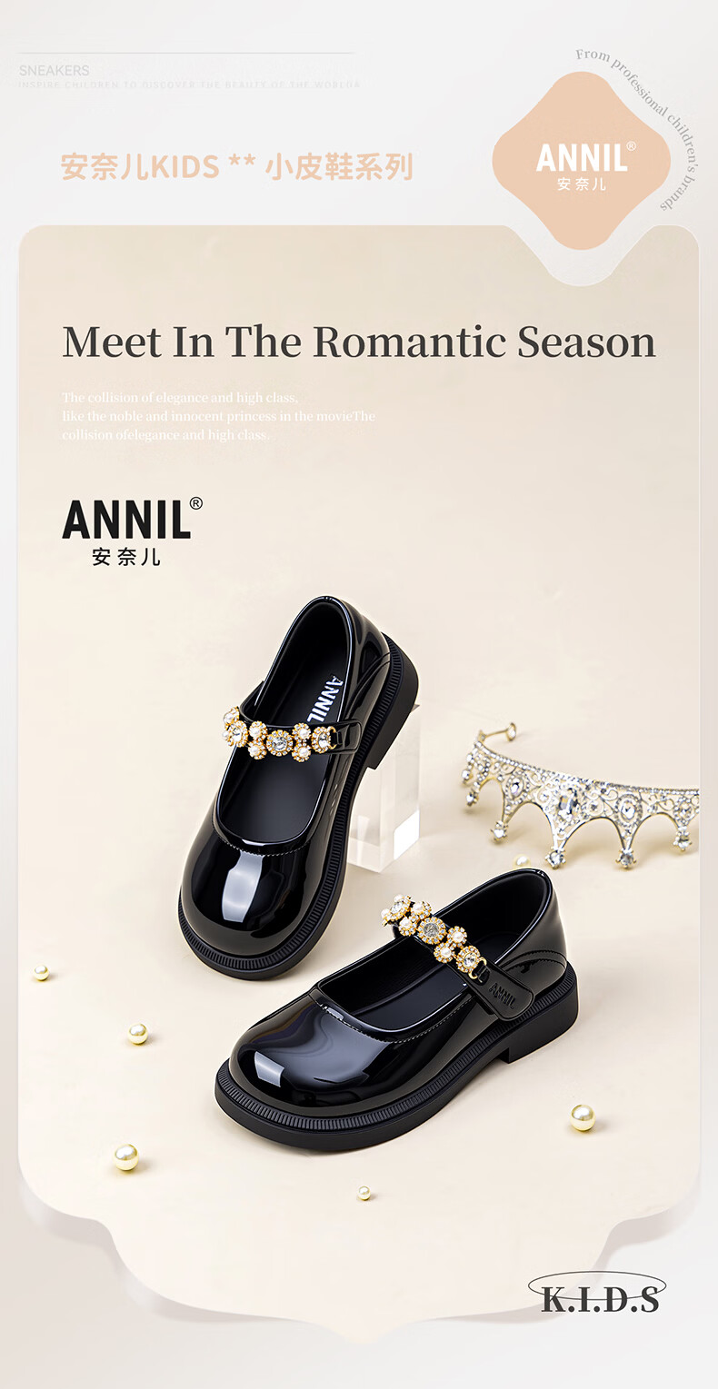 ANNIL Girls Princess Shoes Black Small Leather Shoes 2026 New Spring Children's Shoes Lightweight Mary Jane Shoes Black 29