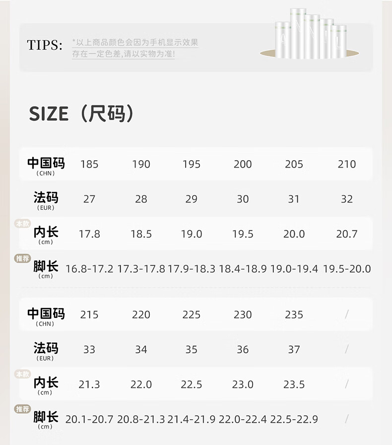 China (cm) 36 - 37 38 - 39 40 - 42 43 - 44 45 - 47